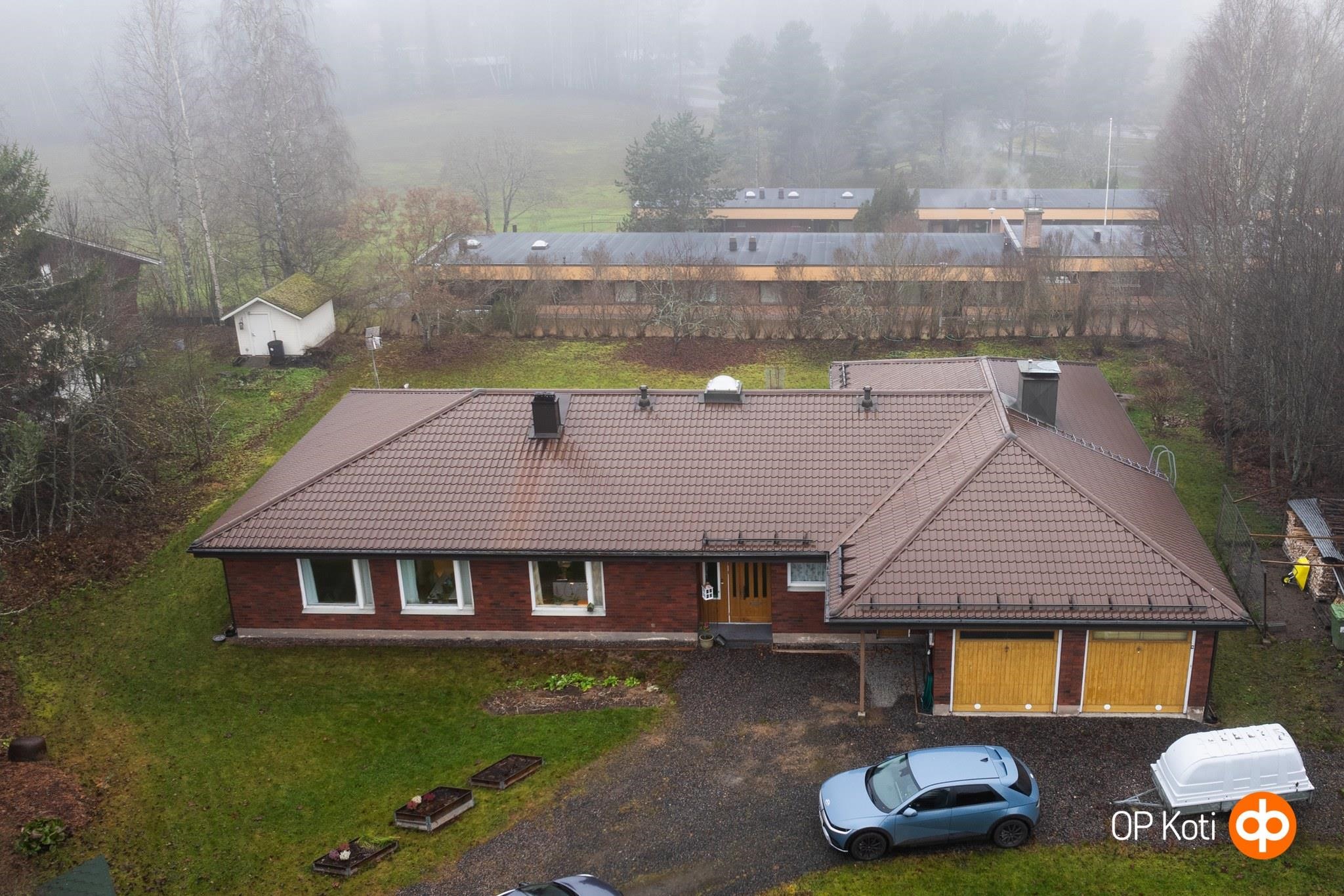 - 243 m2Asuintilat yhteensä n. 243 m², joihin on luettu 4 makuuhuonetta, olohuone, keittiö, hallit, harrastetilat, wc:t, sauna ja kylpyhuone. Muut tilat yhteensä 50 m², joihin on luettu autotalli, varasto, tekninen tila. Edellä mainittu pinta-ala saattaa tämän ikäisessä kohteessa poiketa olennaisestikin asuinrakennusten nykyisten mittaustapojen ja standardien mukaan laskettavasta asuintilojen pinta-alasta. Asuinrakennuksen todellinen asuinpinta-ala voi siis olla esitteessä mainittua pienempi tai suurempi.”