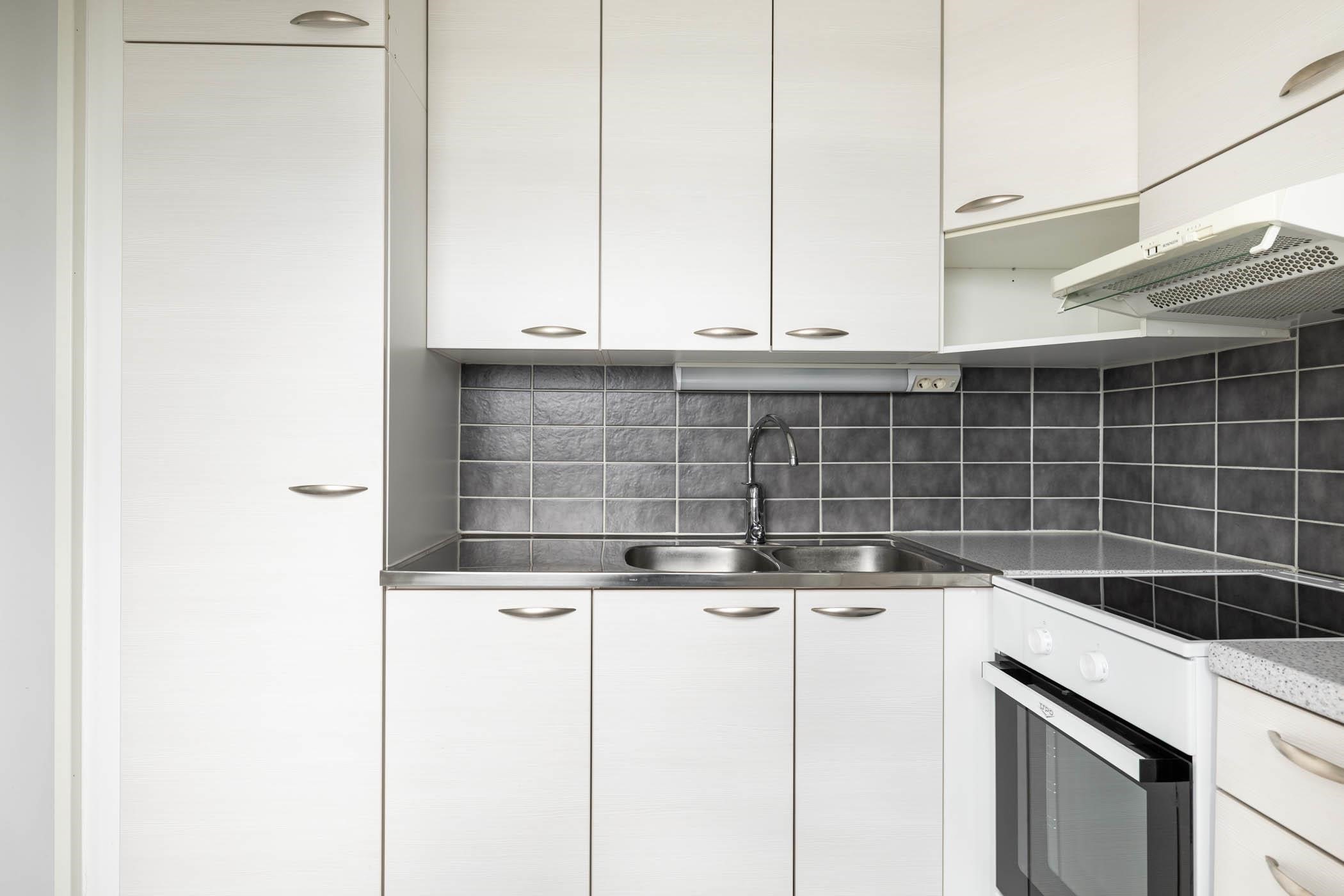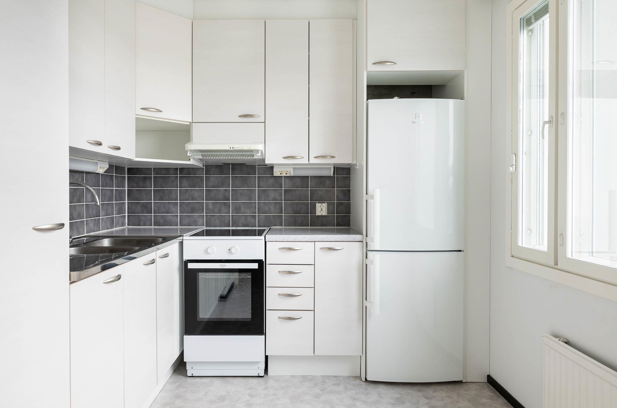 Keittiössä on jääkaappipakastin, hyvin kaappitilaa sekä tänä vuonna uusittu induktioliesi. Keittiöön mahtuu kivasti myös ruokailuryhmä. Kylpyhuoneessa on laatoitetut pinnat, suihku ja pesukoneliitäntä. Säilytystilaa löytyy kivasti eteisen kaapistoista ja huoneistokohtaisesta häkkivarastosta. Taloyhtiö tarjoaa lisämukavuutta saunan, pesutuvan ja pyörävaraston muodossa.