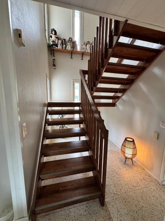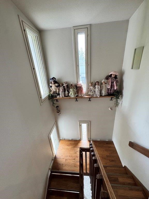 Hyvin pidetty omakotitalo päättyvän tien varrella. Asuintilat ovat kahdessa kerroksessa. Yläkerrassa on keittiön ja olohuoneen muodostama valoisa kokonaisuus, kaksi makuuhuonetta, wc ja kodinhoitohuone, josta kulku yläpihalle. Alakerrassa on yksi makuuhuone, aulatilaa, wc, varasto, kylpyhuone, sauna ja huonetilakäyttöön otettu autotalli.