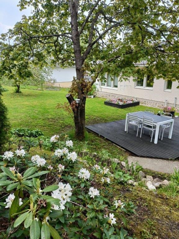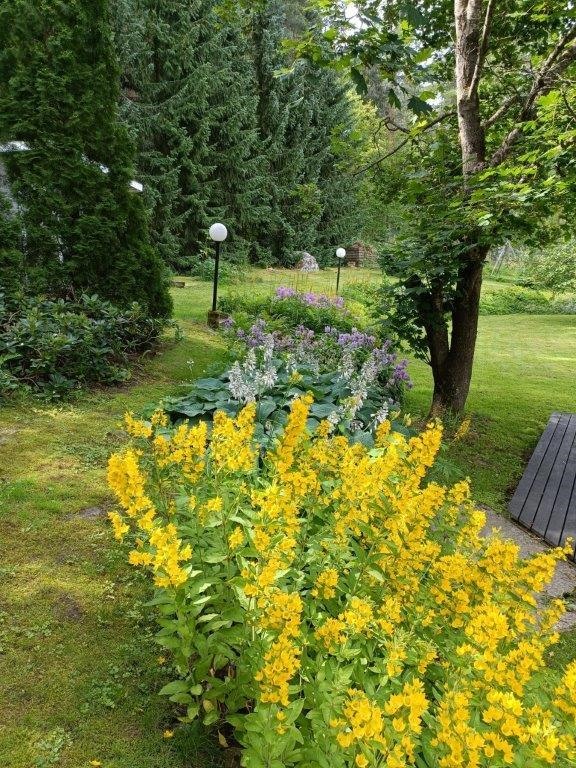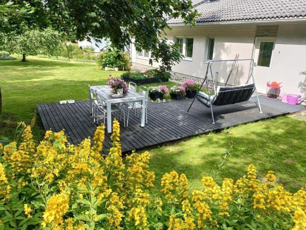 Yläpihalla on ulkovarasto, erilaisia marjapensaita ja omenapuu. Talolta on vain 100 metrin matka lähimpään leikkipuistoon ja Pasolanharjun ulkoilupoluille, jonka varrella voi kuntoilla kuntoportailla ja evästää Pasolanlaavulla. Puolentoista kilometrin päässä sijaitsee myös Kuotaanrannan uimaranta, ja venesatama.