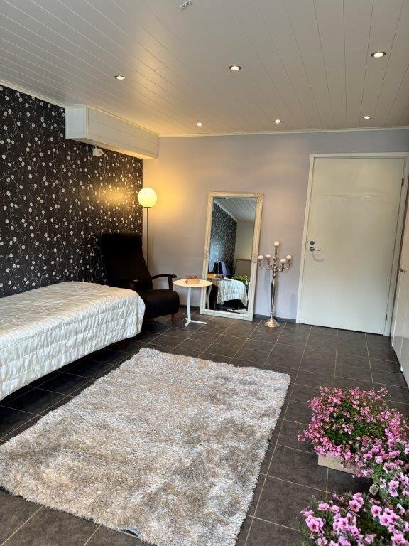 - 74 m2Varasto, huonetilakäyttöön otettu autotalli (kuntoiluhuone), tekninentila