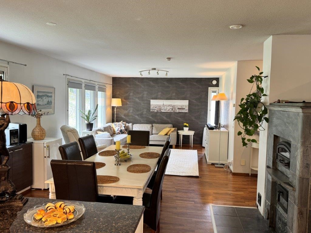 - Sähkö. Varaava takka alakerrassa, leivinuuni yläkerrassa.