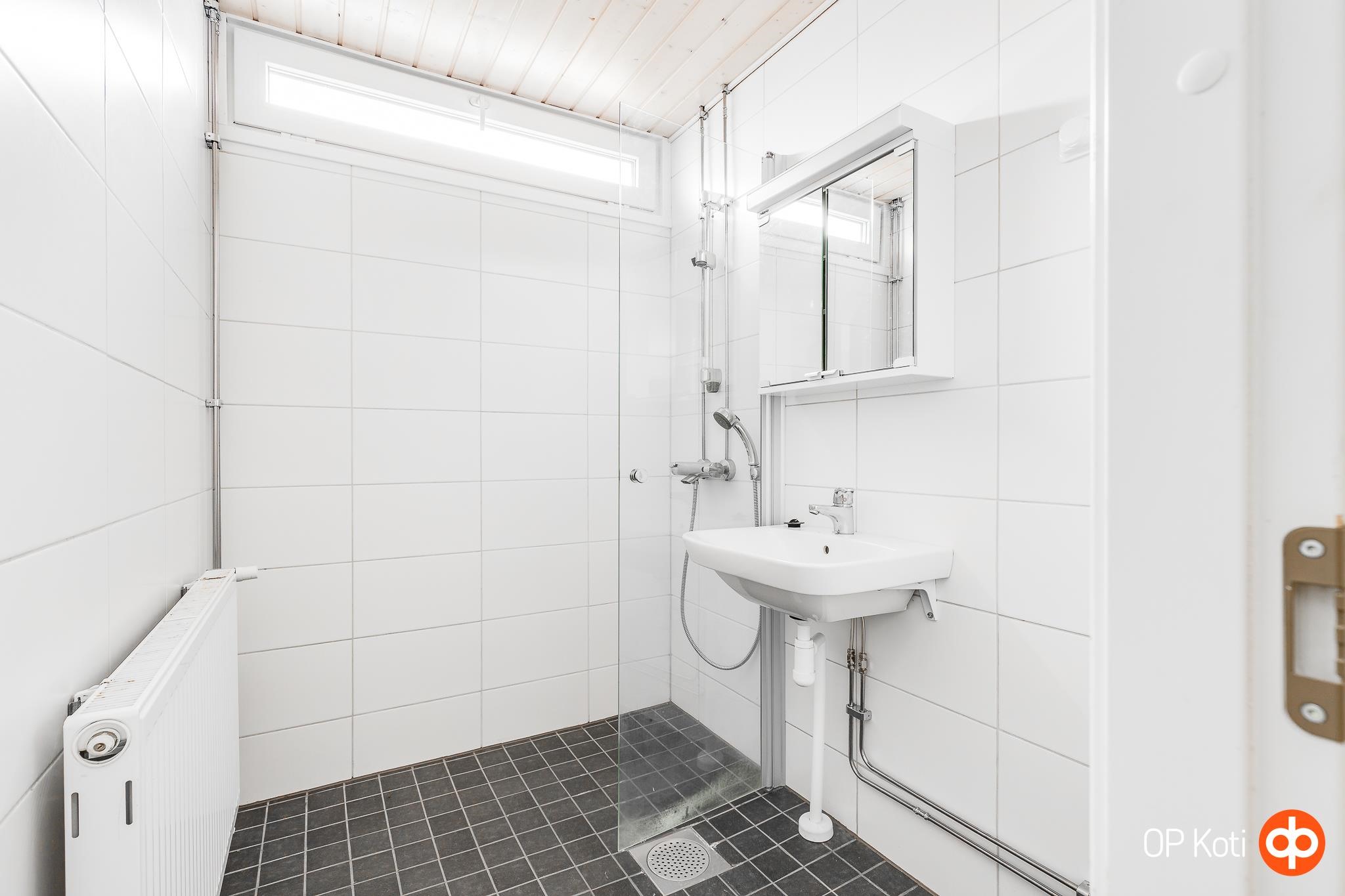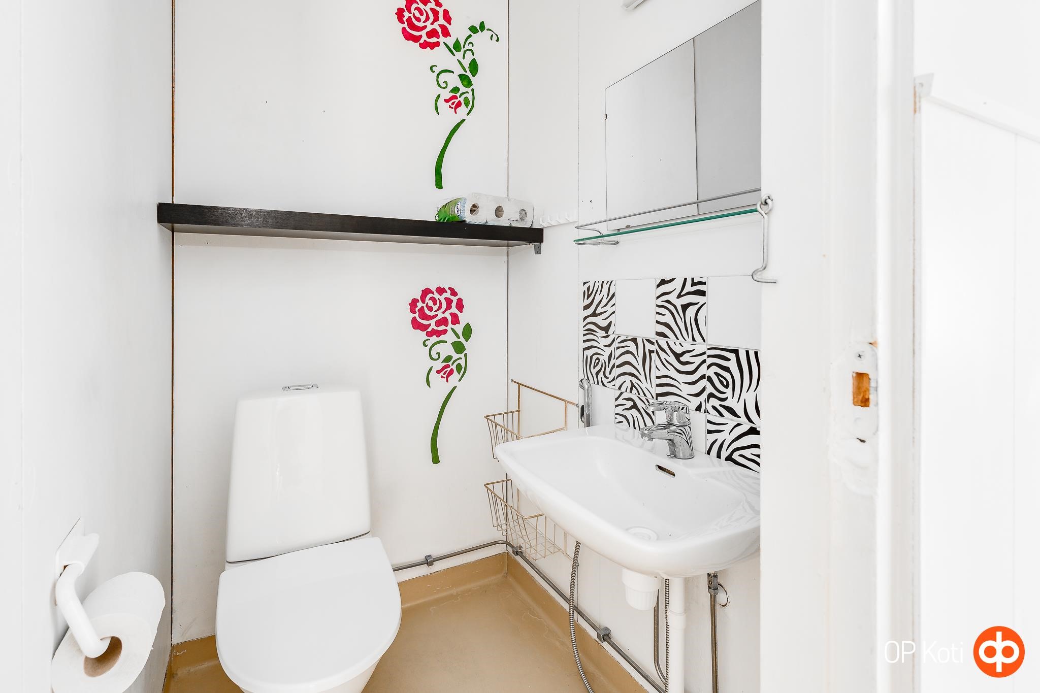 - Erillinen wc, suihku, peilit, peilikaappi wc:ssä, allaskaappi kylpyhuoneessa, pesukoneliitäntä.