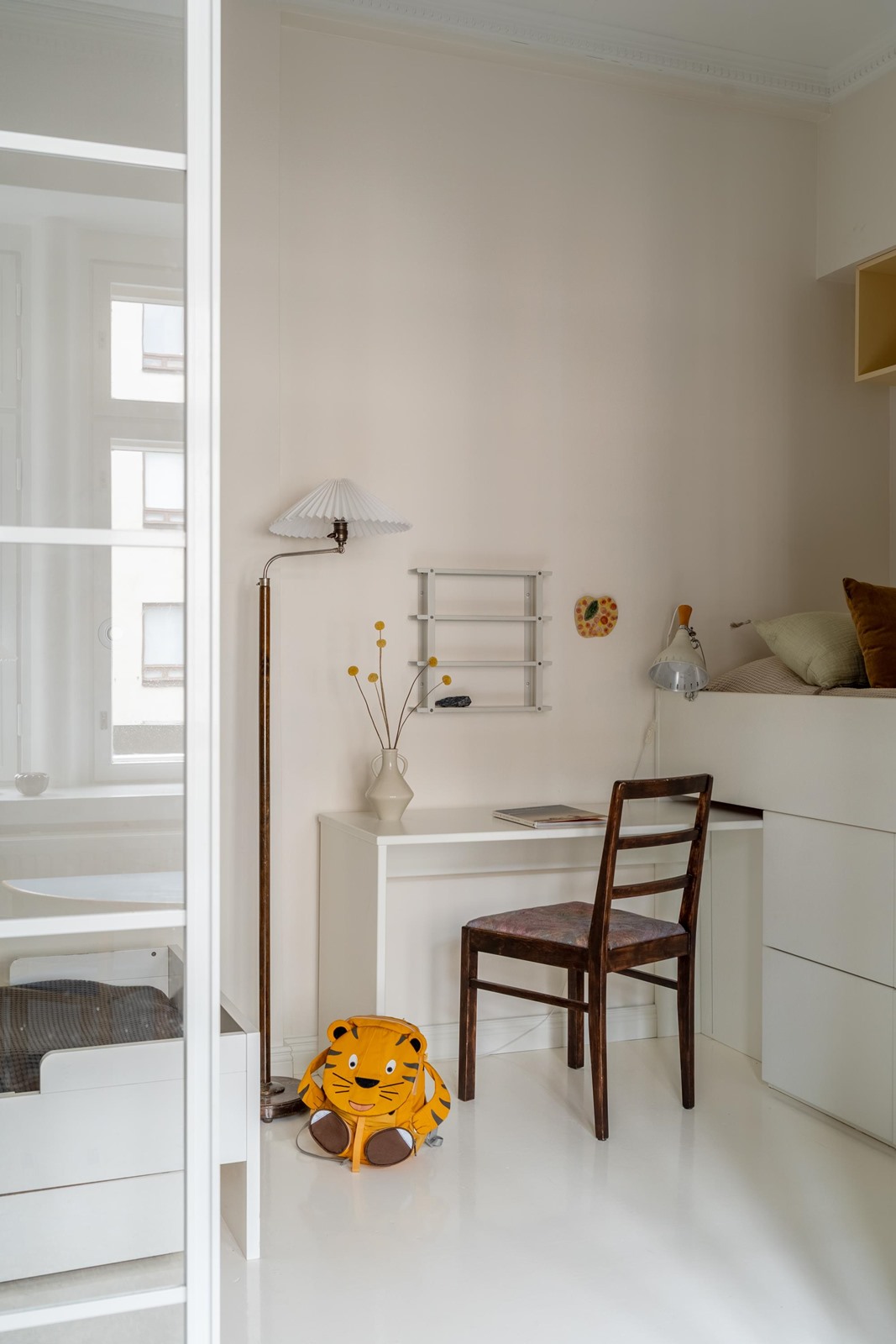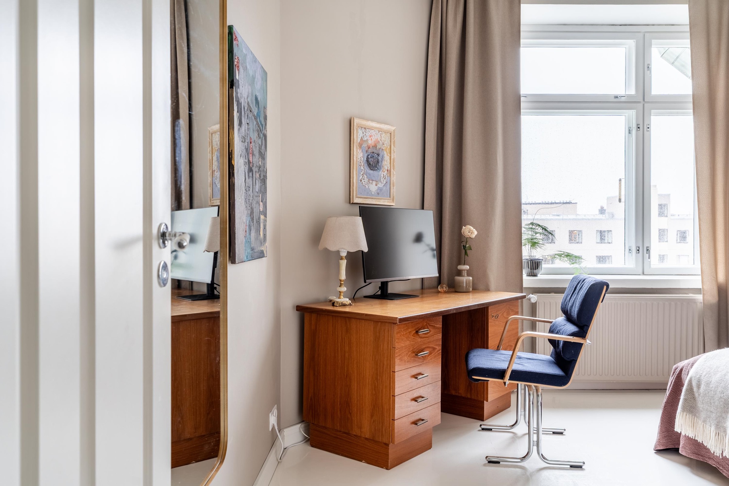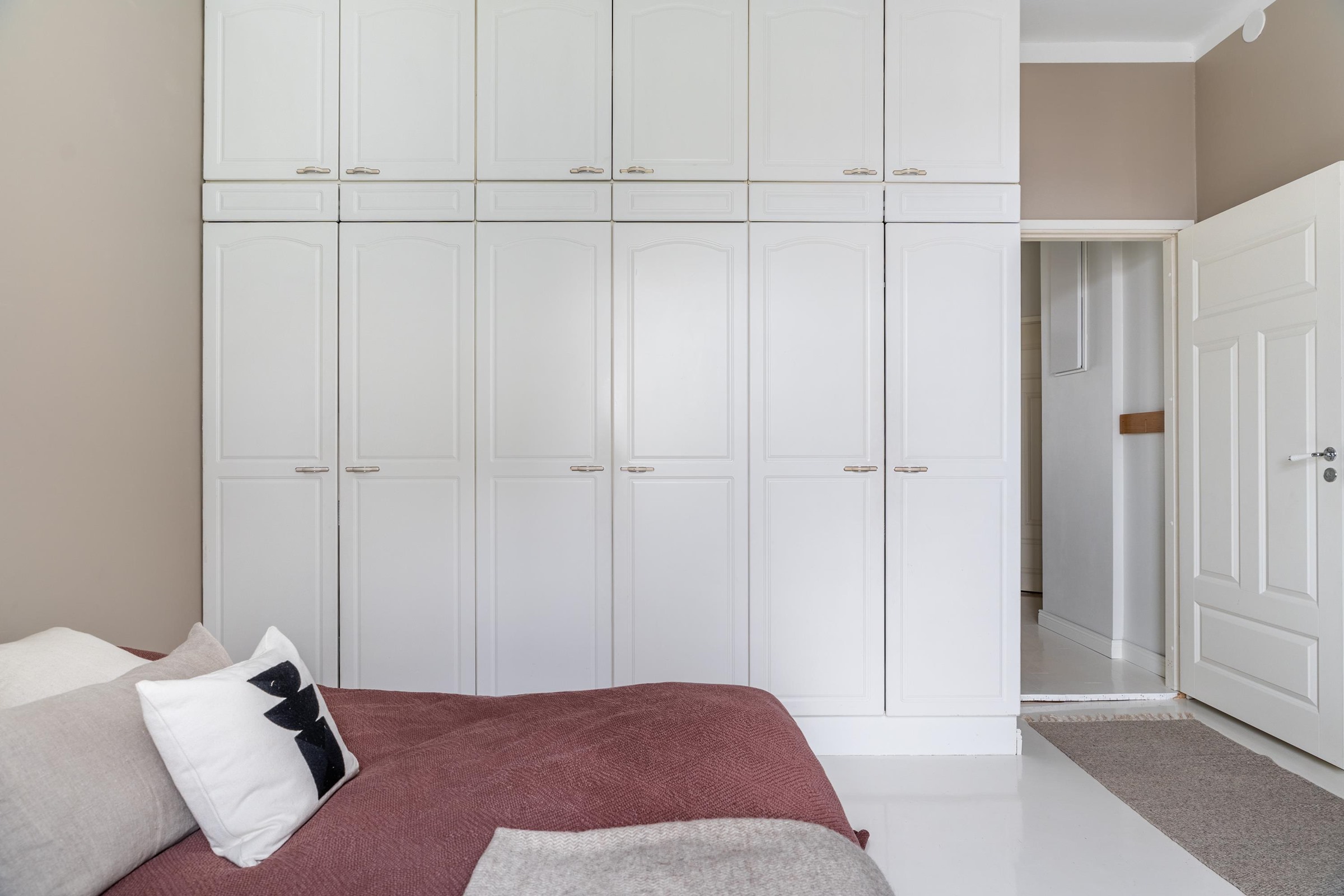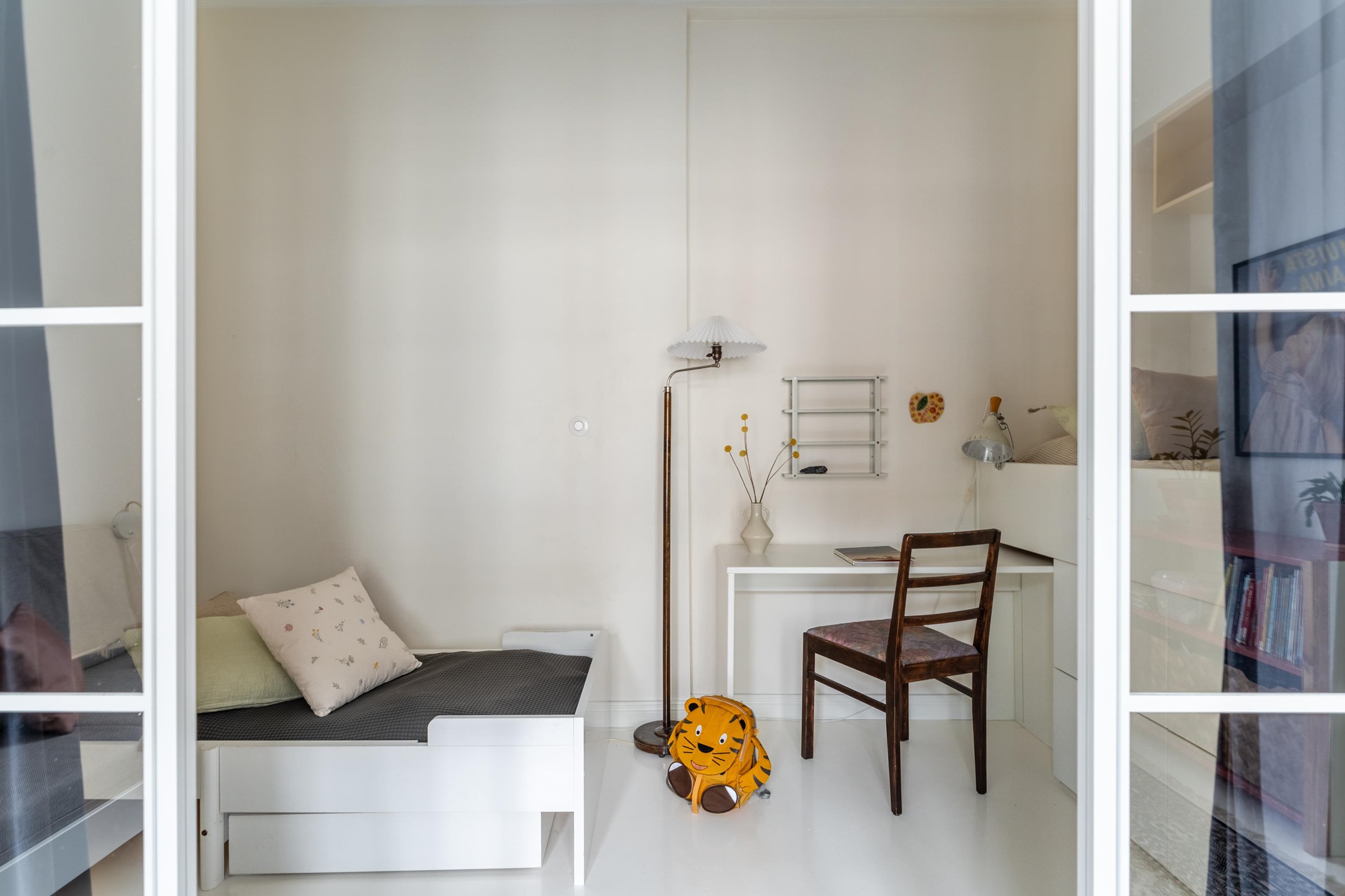 Asunnon huoneet ovat monikäyttöisiä ja kauniisti viimeisteltyjä. Lasiliukuovilla rajautuva huone avaa mahdollisuuksia moneen ja toimii yhtä hyvin lastenhuoneena, työtilana tai vierashuoneena. Toisessa makuuhuoneessa suuret kaapistot tekevät tilasta erityisen käytännöllisen, ja kokonaisuus säilyttää rauhallisen, levollisen tunnelmansa.