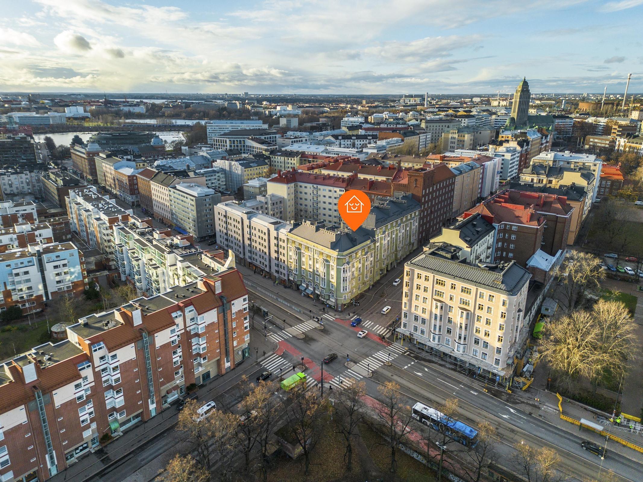 Sijainti Kallion sydämessä ei voisi olla parempi. Ympärillä avautuu kaupungin omaleimainen syke ja kaikki, mitä arjessa ja vapaa-ajassa voi toivoa: Kallion kirjasto, Hakaniemen halli ja torialue, viihtyisät puistot ja vehreät kulkureitit, kulttuuritarjonta, julkiset saunat, kuntosalit, lukuisat kahvilat ja ravintolat sekä Haapaniemen kenttä aivan kivenheiton päässä. Keskustaan liikut hetkessä kuten myös meren rantaan pääset kävellen. Kulkuyhteydet kaikkialle kaupunkiin ovat erinomaiset ja pyöräilijälle tästä avautuvat mainiot reitit ympäri kaupunkia.