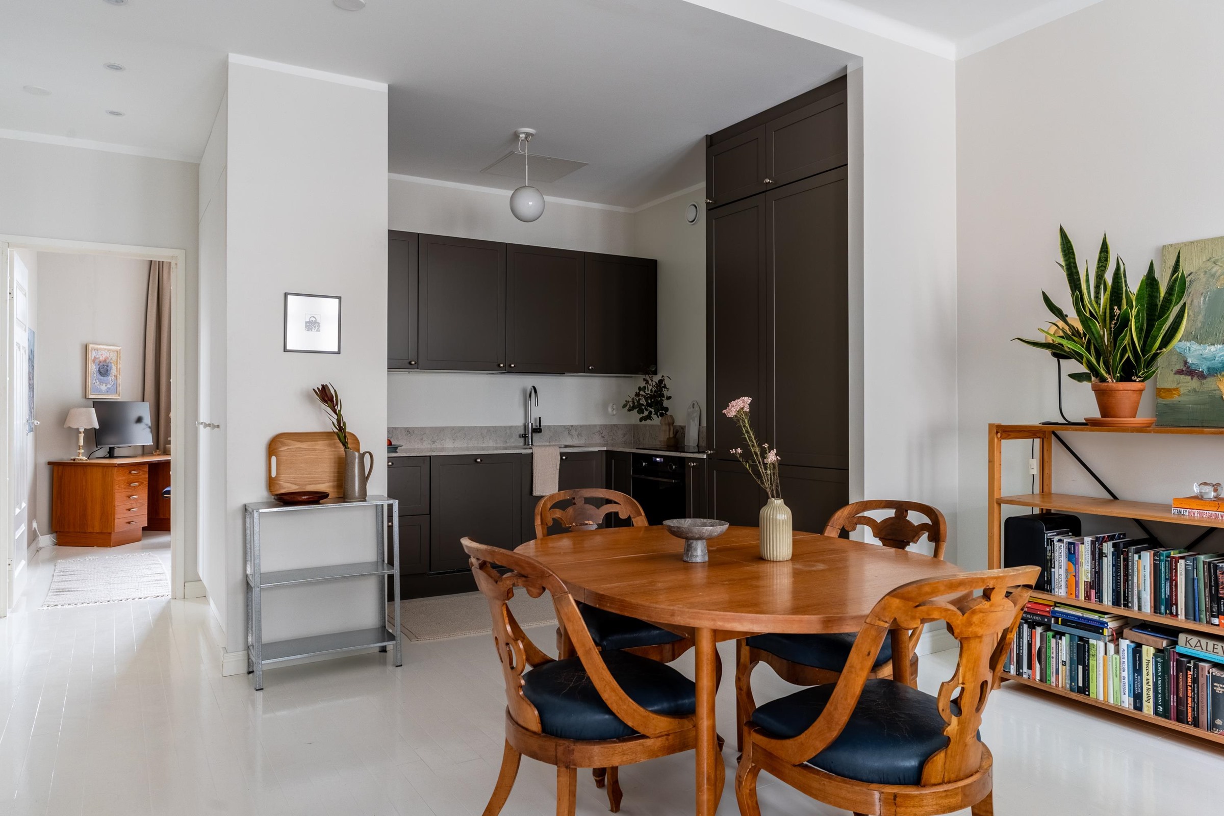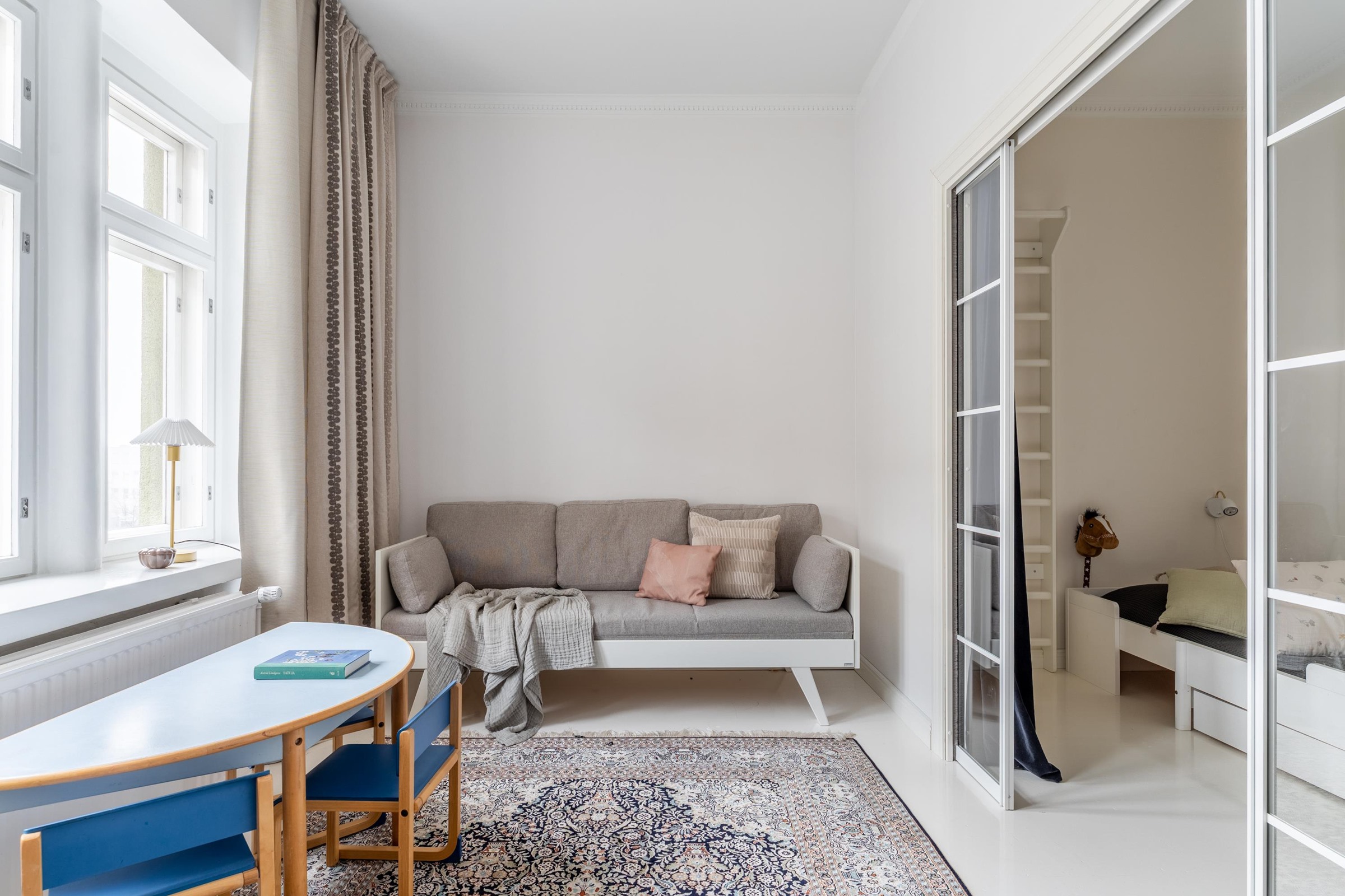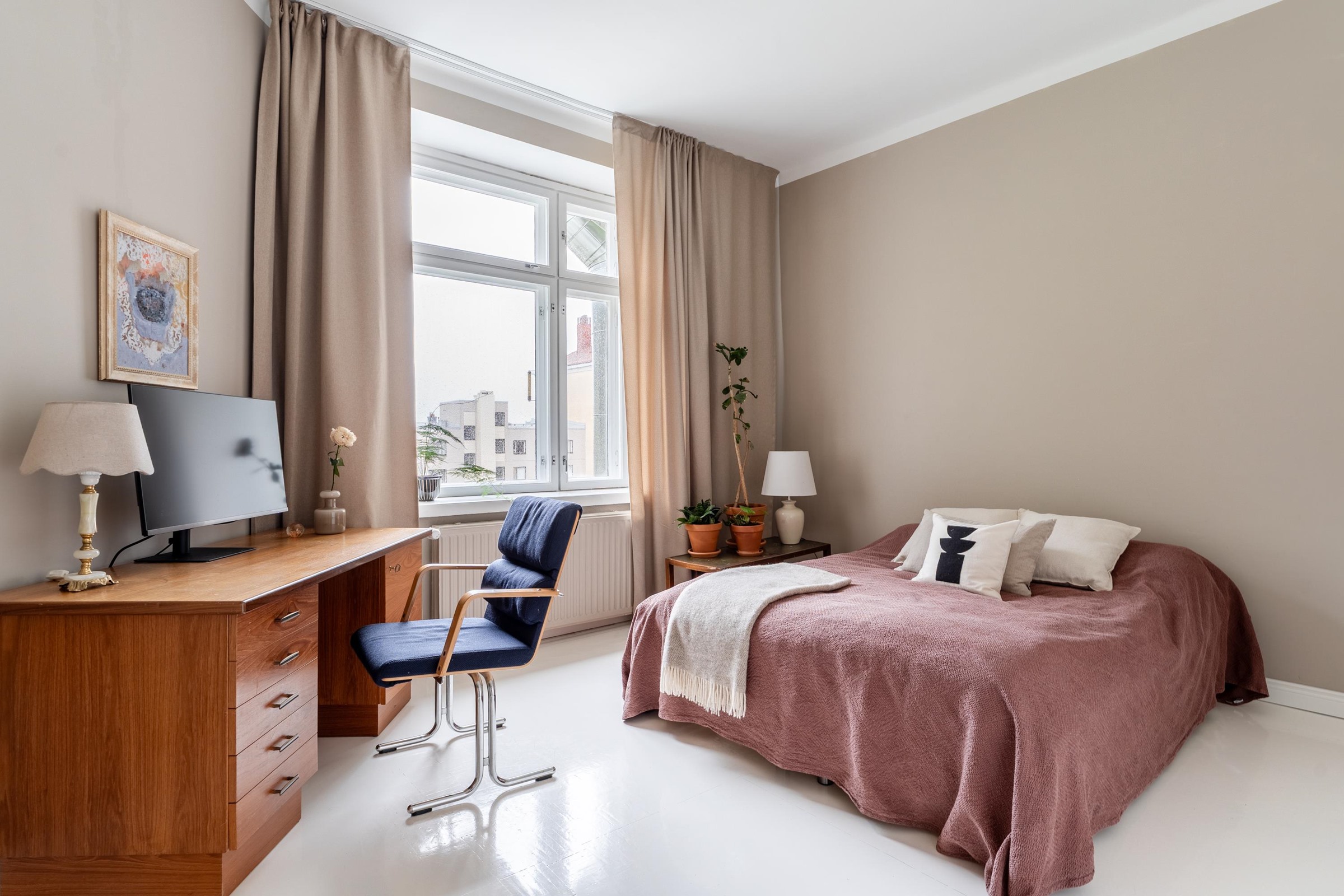 Tämä ylimmän kerroksen poikkeuksellisen kauniisti remontoitu koti Viidennellä linjalla hurmaa rauhallisuudellaan, valollaan ja ajattomalla tunnelmallaan. Asunnossa on harvinaisen tasapainoinen kokonaisuus: vanhan talon arvokas henki yhdistyy moderniin, harkittuun ja tasokkaasti tehtyyn remonttiin, jonka jokainen yksityiskohta tuntuu oikealta.Tämä vuonna 1914 valmistunut rakennus on suojeltu ja taloyhtiö poikkeuksellisen hyvin hoidettu, mikä lisää kodin kokonaisvaltaista laatua ja levollisuutta.
