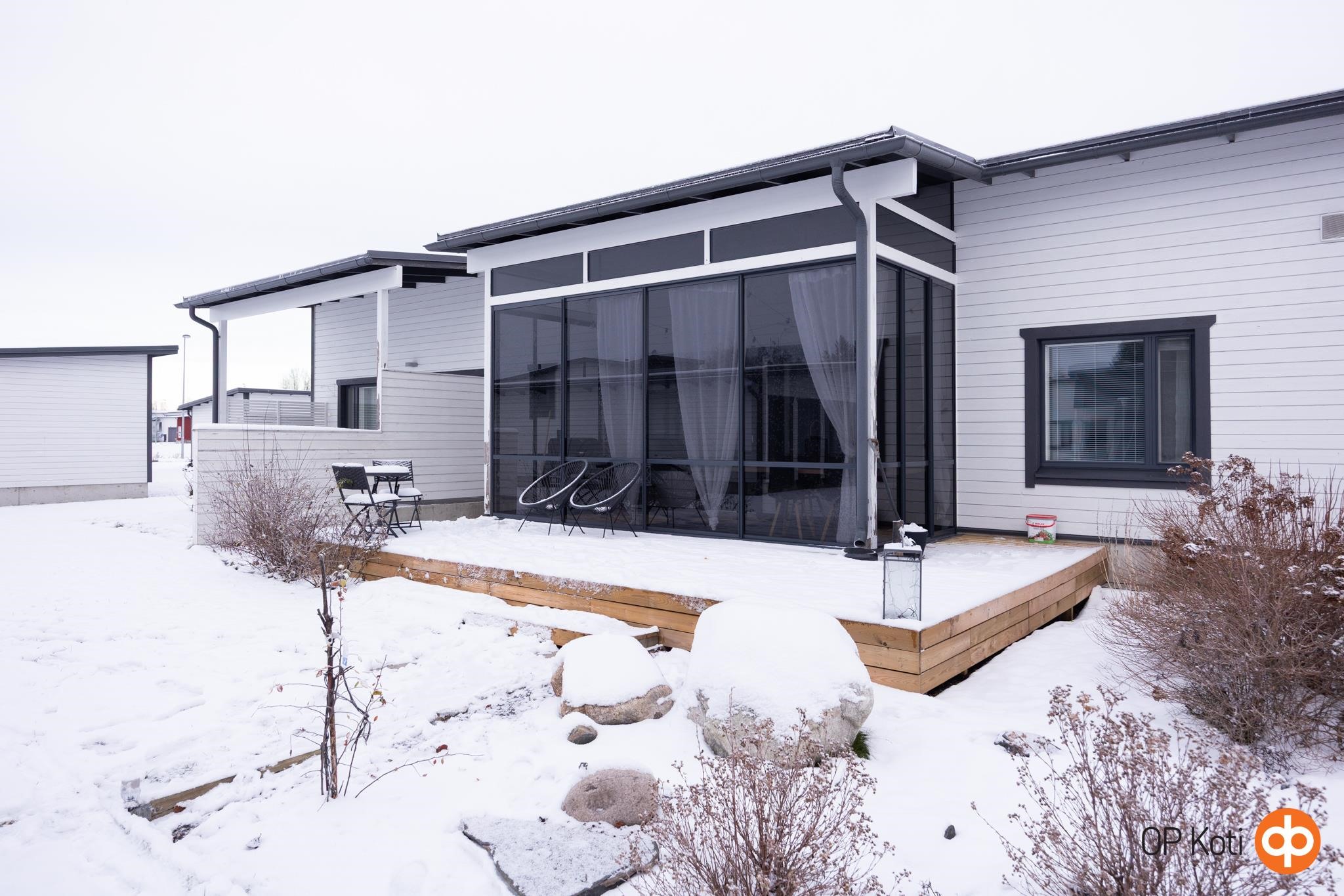 Huoneisto on hyvin suunniteltu 68 m² kokonaisuus, joka käsittää tilavan tupakeittiön, kaksi makuuhuonetta, vessan, saunan ja kylpyhuoneen. Pieni kodinhoitonurkkaus pesuhuoneen yhteydessä helpotta arjen askareita. Ihastuttava iso lasitettu terassi, jossa pääset nauttimaan auringosta pitkään ja samalla se lluo lisätilaa. Keittiö on moderni ja varustettu nykyaikaisilla mukavuuksilla. Huoneistossa on viilentävä ilmalämpöpumppu. Säilytystilaakin löytyy vaatehuoneessa ja ulkovarastossa, joten säilytysratkaisutkaan eivät tuota päänvaivaa.