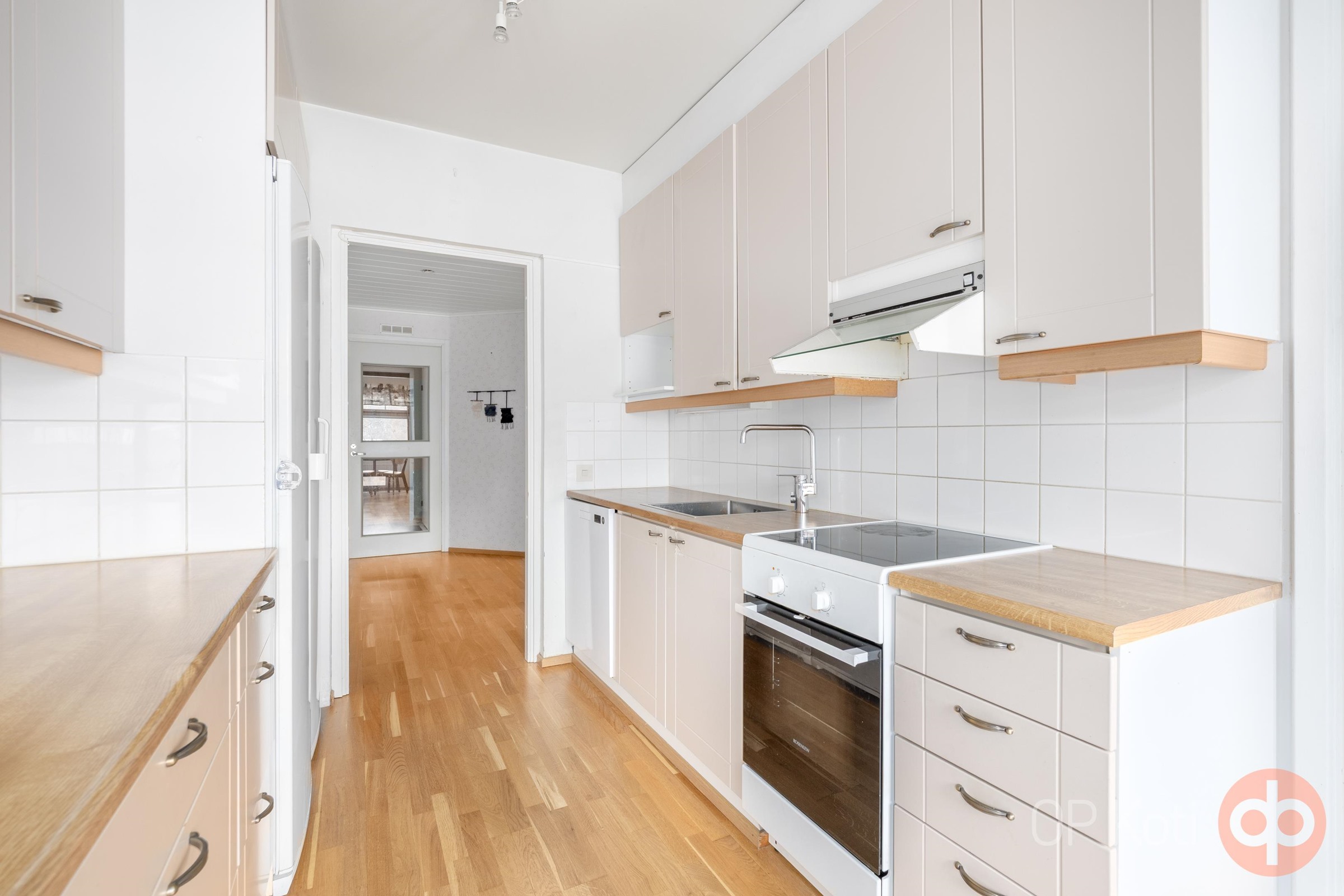 - Jääkaappi, pakastekaappi, induktioliesi v 2022 uusittu, liesituuletin, astianpesukone v 2023 uusittu, kaapistot, kiinteät valaisimet.