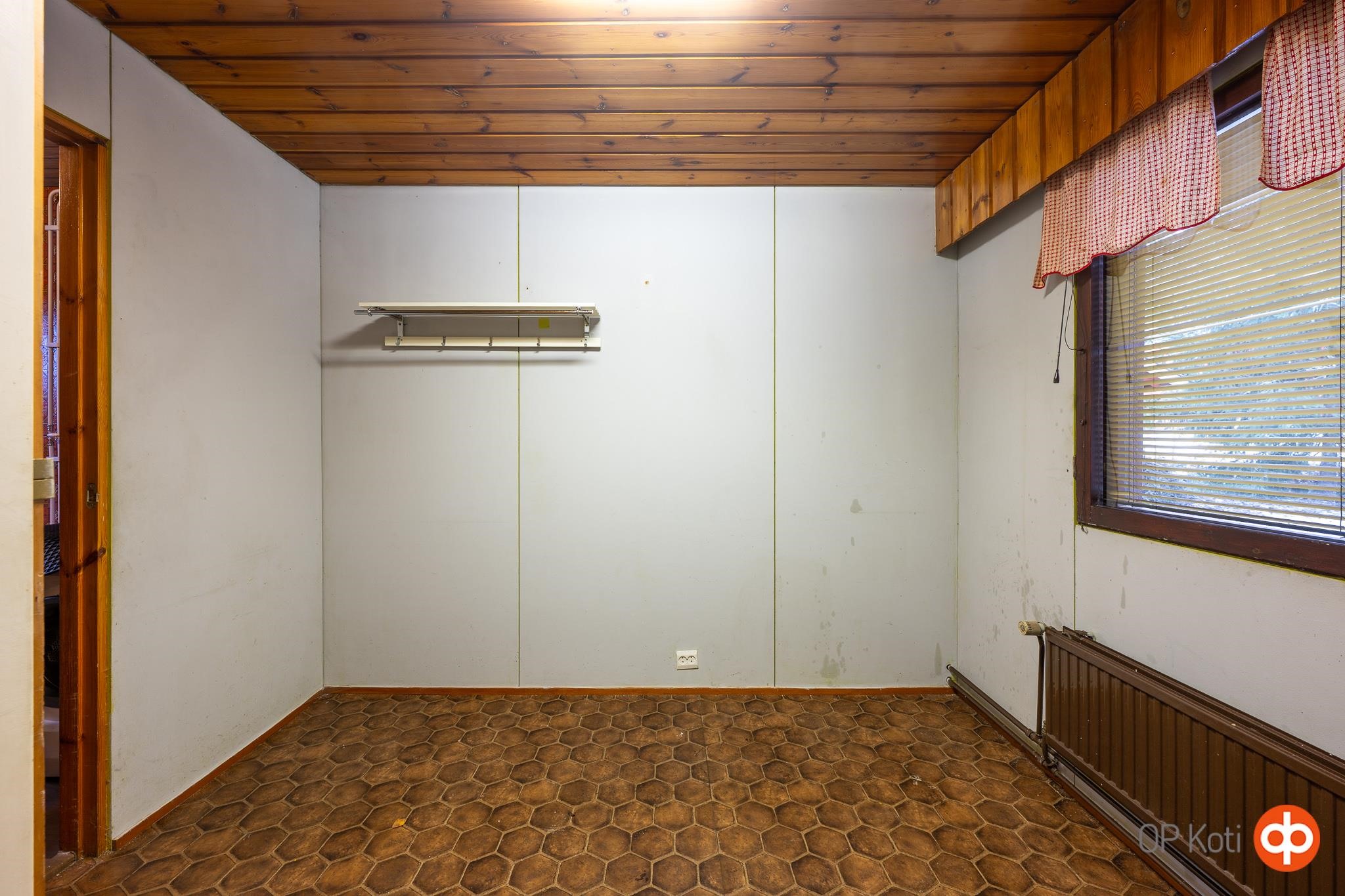 Keittiö: Muovimatto. Maalattu levy. Olohuone: Muovimatto. Maalattu levy. Makuuhuone 1: Muovimatto. Maalattu levy. Makuuhuone 2: Muovimatto. Maalattu levy. Makuuhuone 3: Muovimatto. Maalattu levy. Kodinhoitohuone: /pkh: Muovimatto. Maalattu levy. Sauna: Muovimatto. Panelointi. Kylpyhuone: Muovimatto. Muovipinnoite. Eteinen: Muovimatto. Maalattu levy. Wc: Muovimatto. Muovipinnoite.