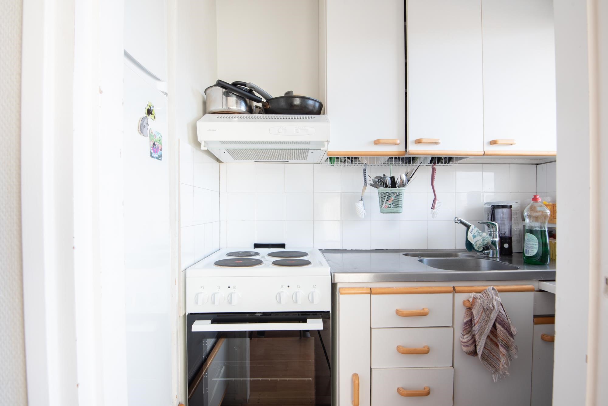 - Jääkaappipakastin, sähköliesi, liesituuletin, kaapistot.