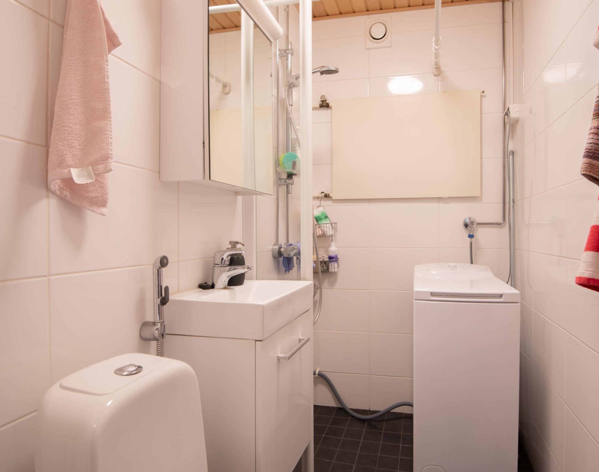 - Kylpyhuone, suihku, peilit, pesukoneliitäntä.