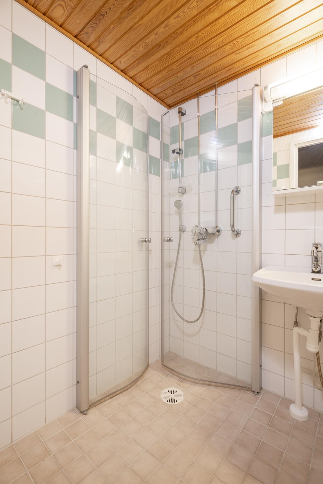 - Kylpyhuoneessa suihkuseinä, peilikaappi, pesukoneliitäntä, kiinteät valaisimet.