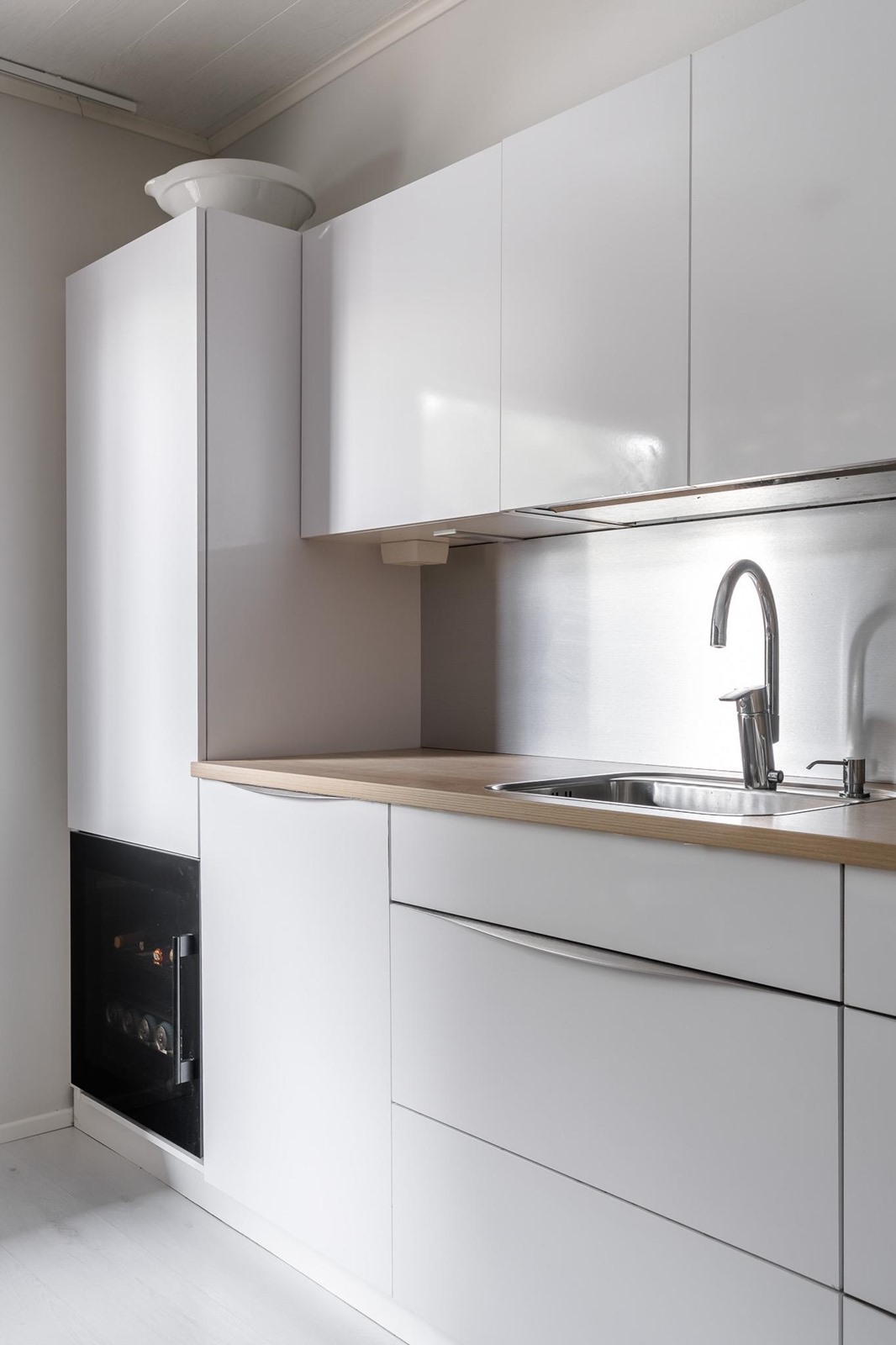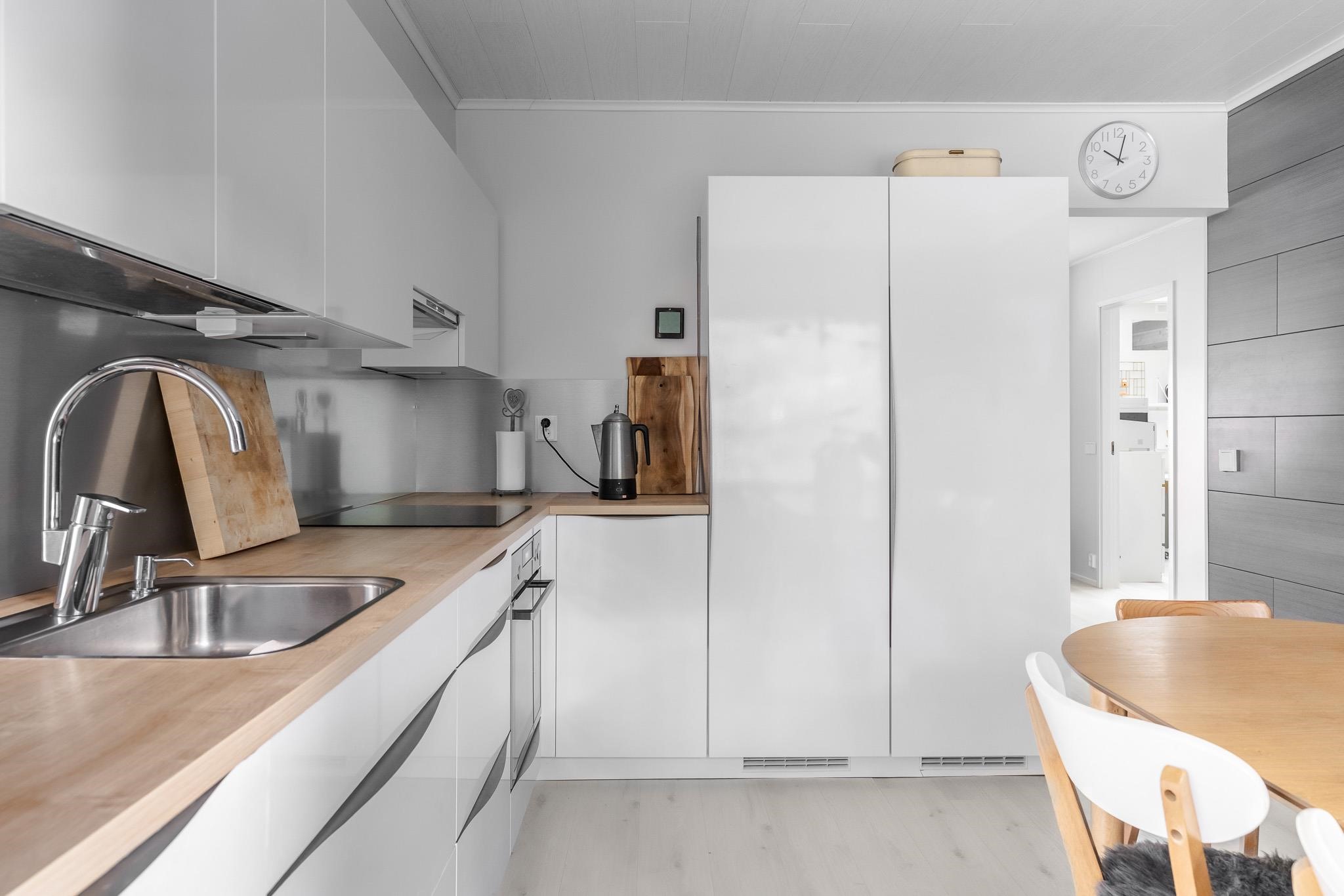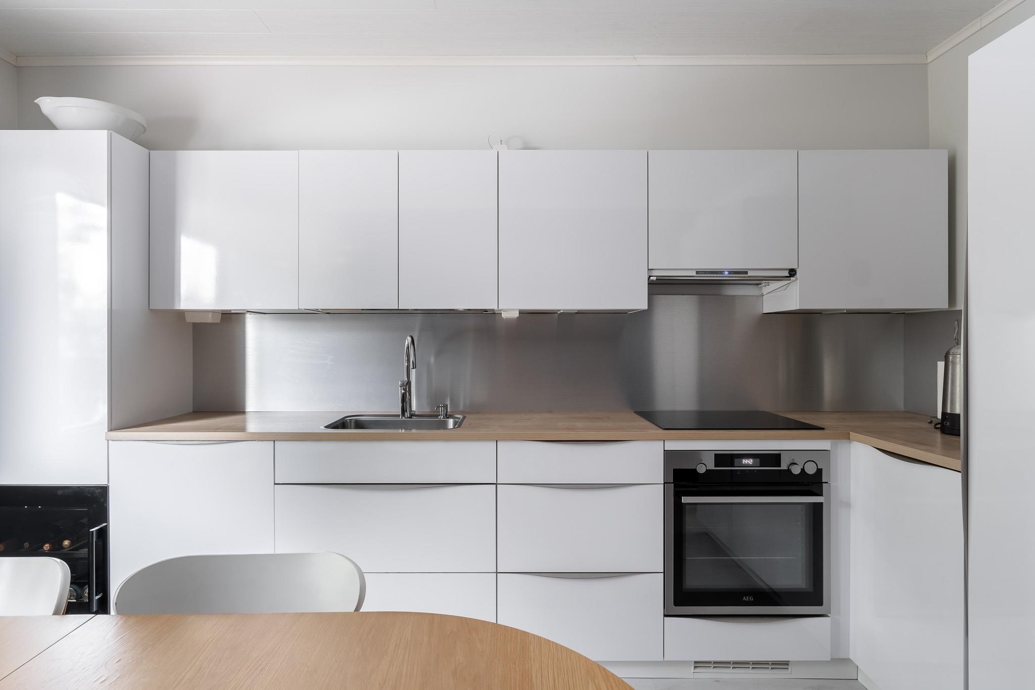 - Jääkaappi, pakastekaappi, erillisuuni höyryuuni, induktioliesi, liesituuletin, astianpesukone, kaapistot, viinikaappi, kiinteät valaisimet. tiskikoneessa automaattinen veden sulku