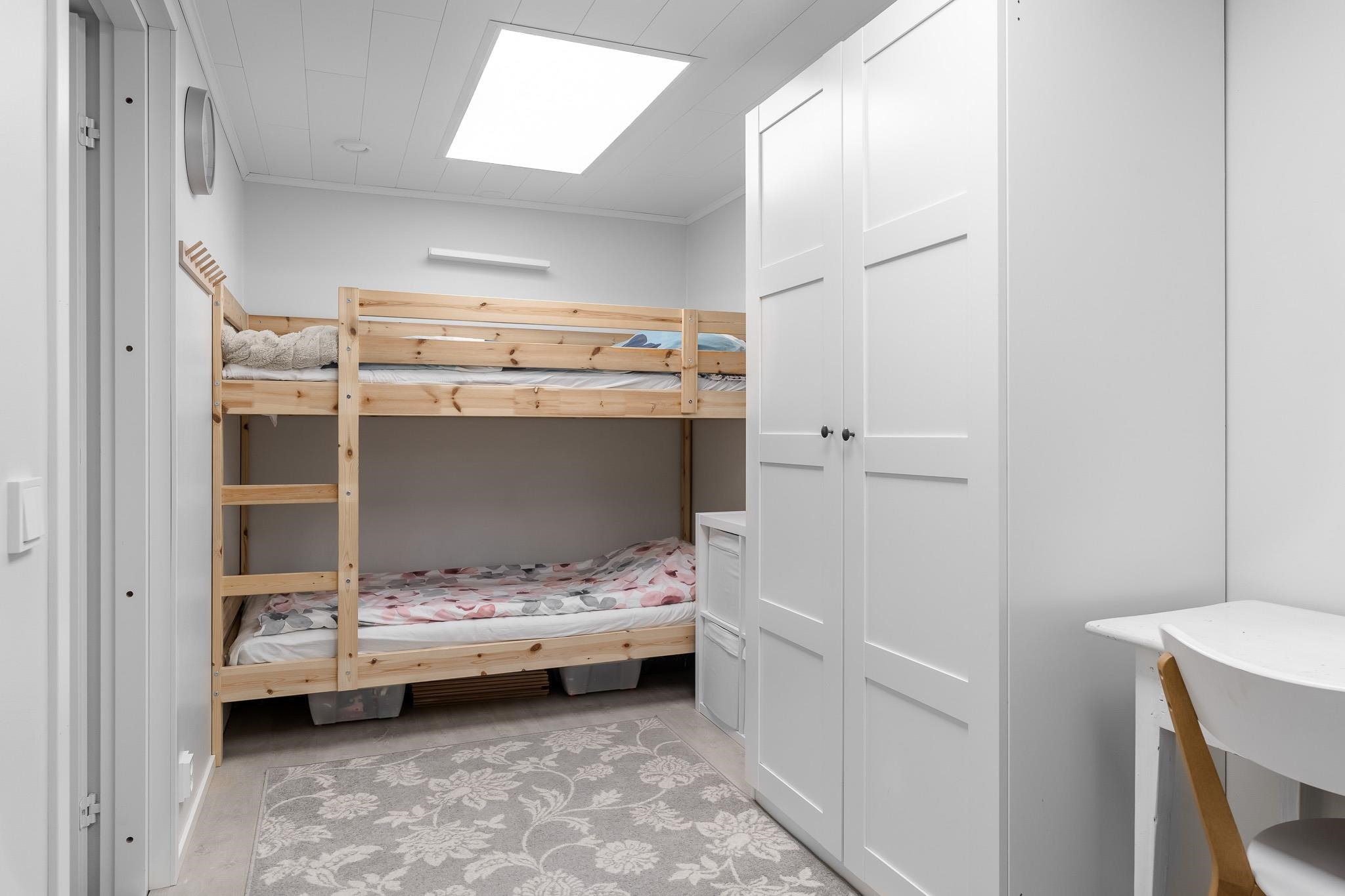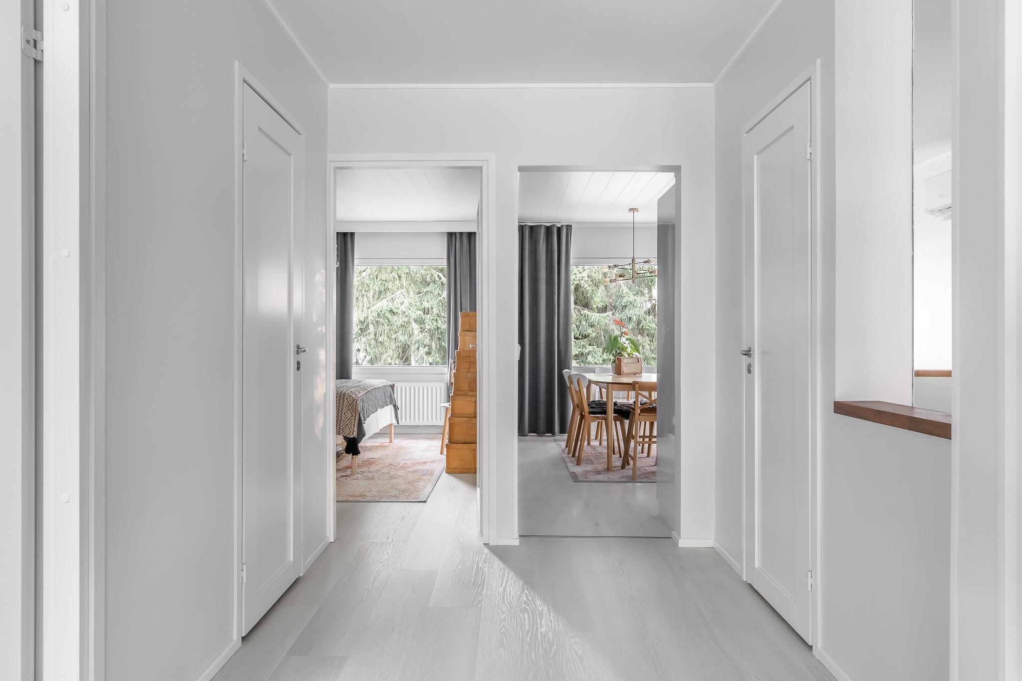 - Keittiö: lattaia laminaatti ja seinät maalattu sekäsisustuspaneeli. Olohuone: Lattia vinyyli ja seinätmaalattu. Makuuhuone 1: lattia vinyyli ja seinät maalattu. Makuuhuone 2: lattia vinyyli ja seinät maalattu. Makuuhuone 3: lattia laminaatti ja seinät maalattu. Kodinhoitohuone: lattia muovimatto ja seinät maalattu. Sauna: lattia laatta ja seinät puupaneeli. Kylpyhuone: lattia laatta ja seinät laatta. Eteinen: lattia laatta/vinyyli ja seinät maalattu. Wc: laatta ja seinät laatta. Pukuhuone: lattia muovimatto ja seinät puupaneeli (lämpöhaapa).