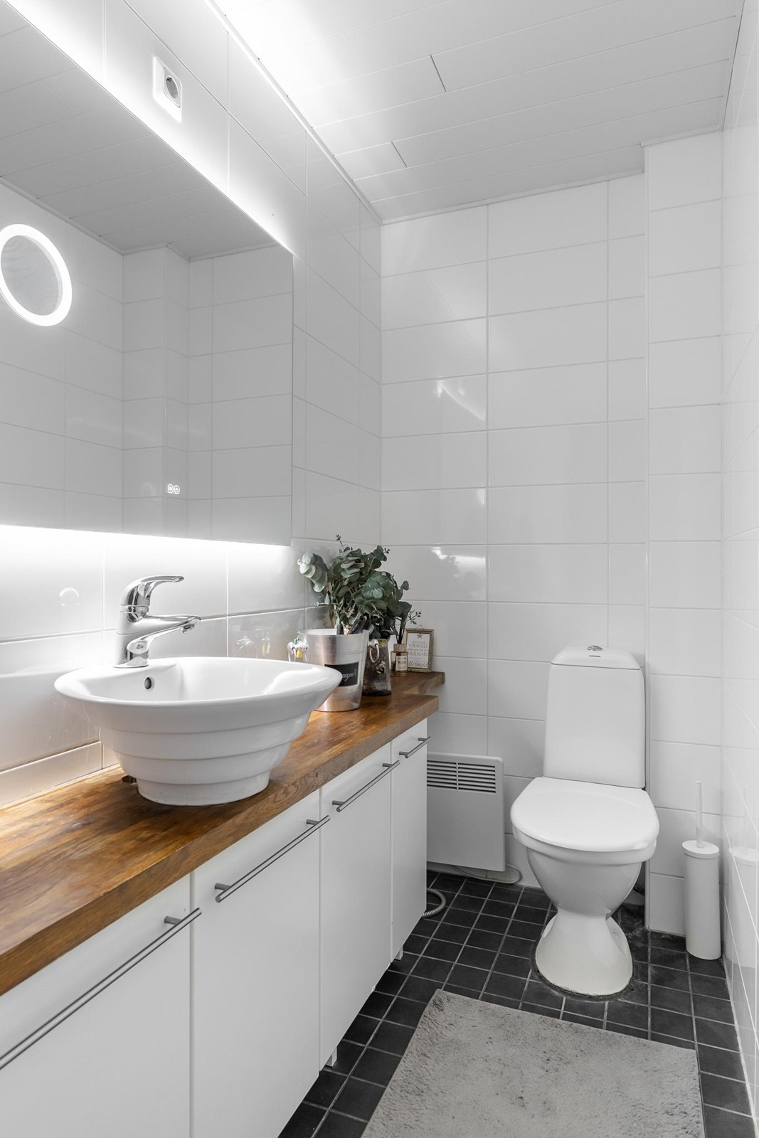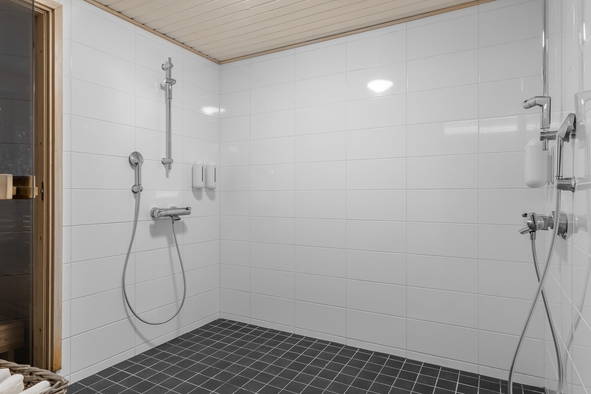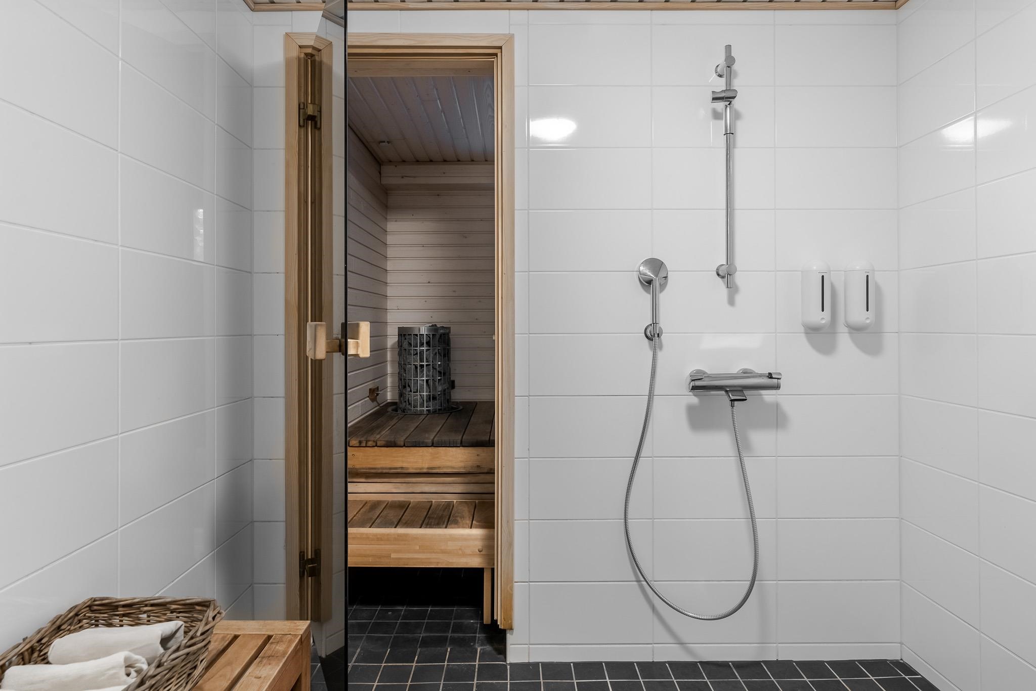 - Sauna, sähkökiuas, kylpyhuone, erillinen wc, suihku 2 suihkua kylpyhuoneessa, peilit, allaskaappi wc sekä kylpyhuone, pesukoneliitäntä, lattialämmitys pesuhuone, kiinteät valaisimet.