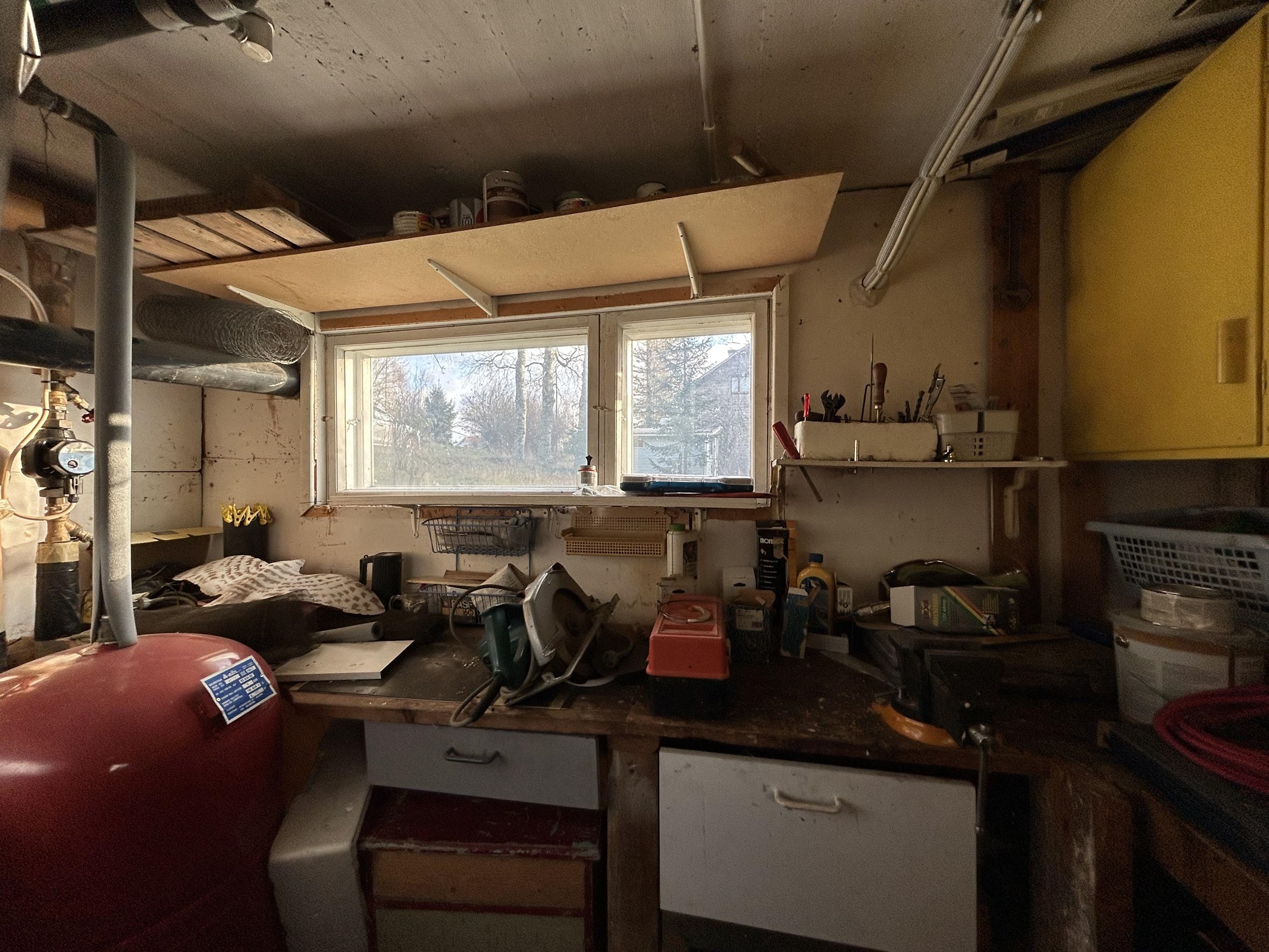 Talon lämmityksestä huolehtii vesi-ilmalämpöpumppu (asennettu 2016), ja kellarissa on edelleen vanha kattila, jossa voi polttaa puuta. Keittiö ja kylpyhuone on päivitetty vuosien varrella.