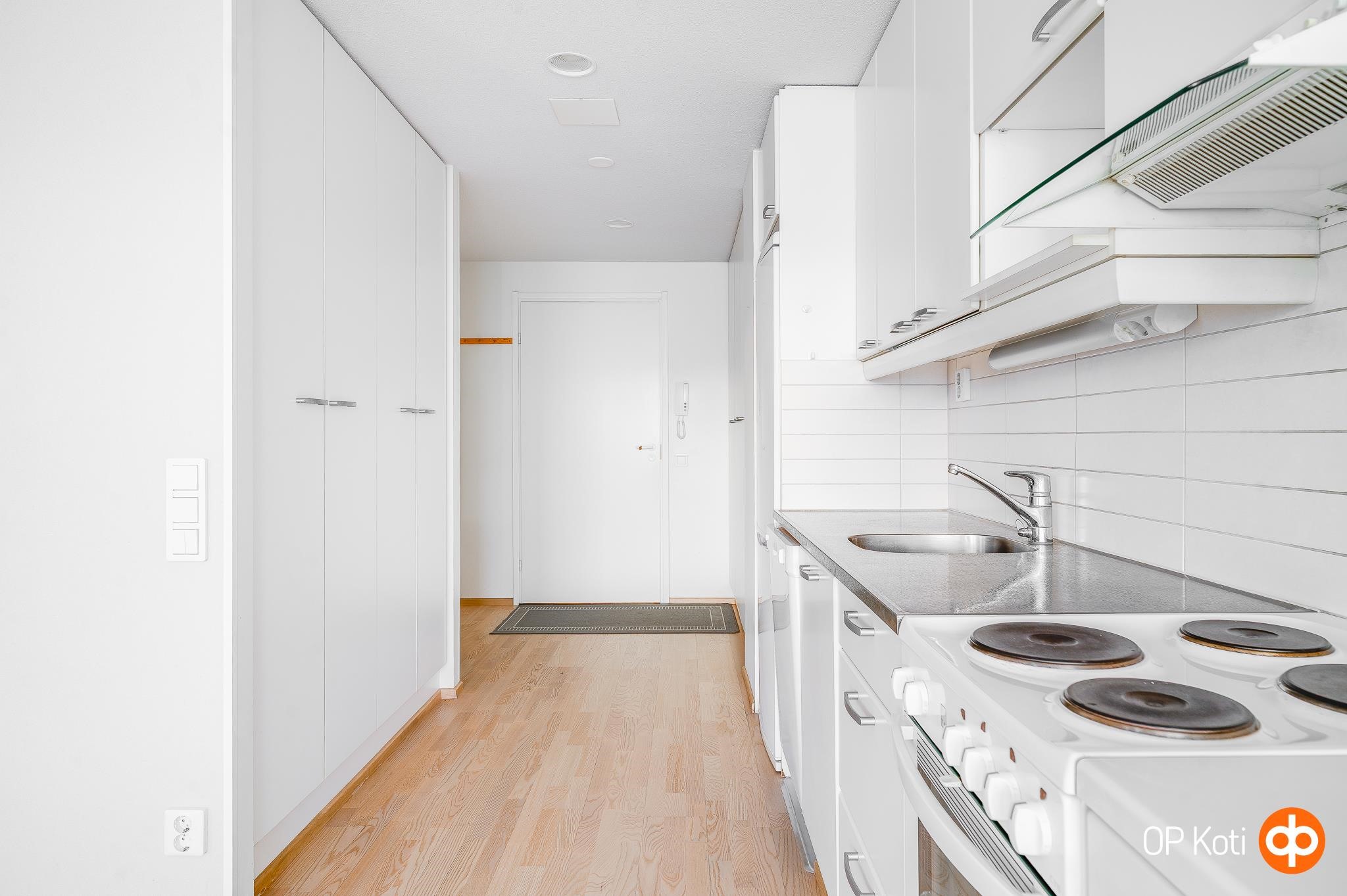 - Jääkaappipakastin, lattialiesi, sähköliesi, liesituuletin, astianpesukone, kaapistot, kiinteät valaisimet.