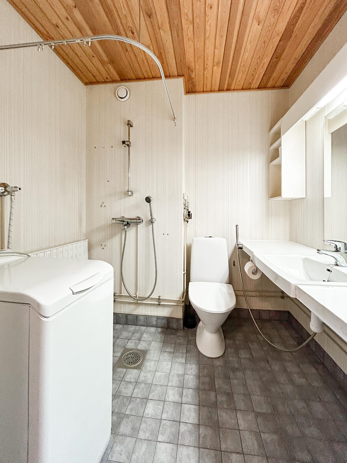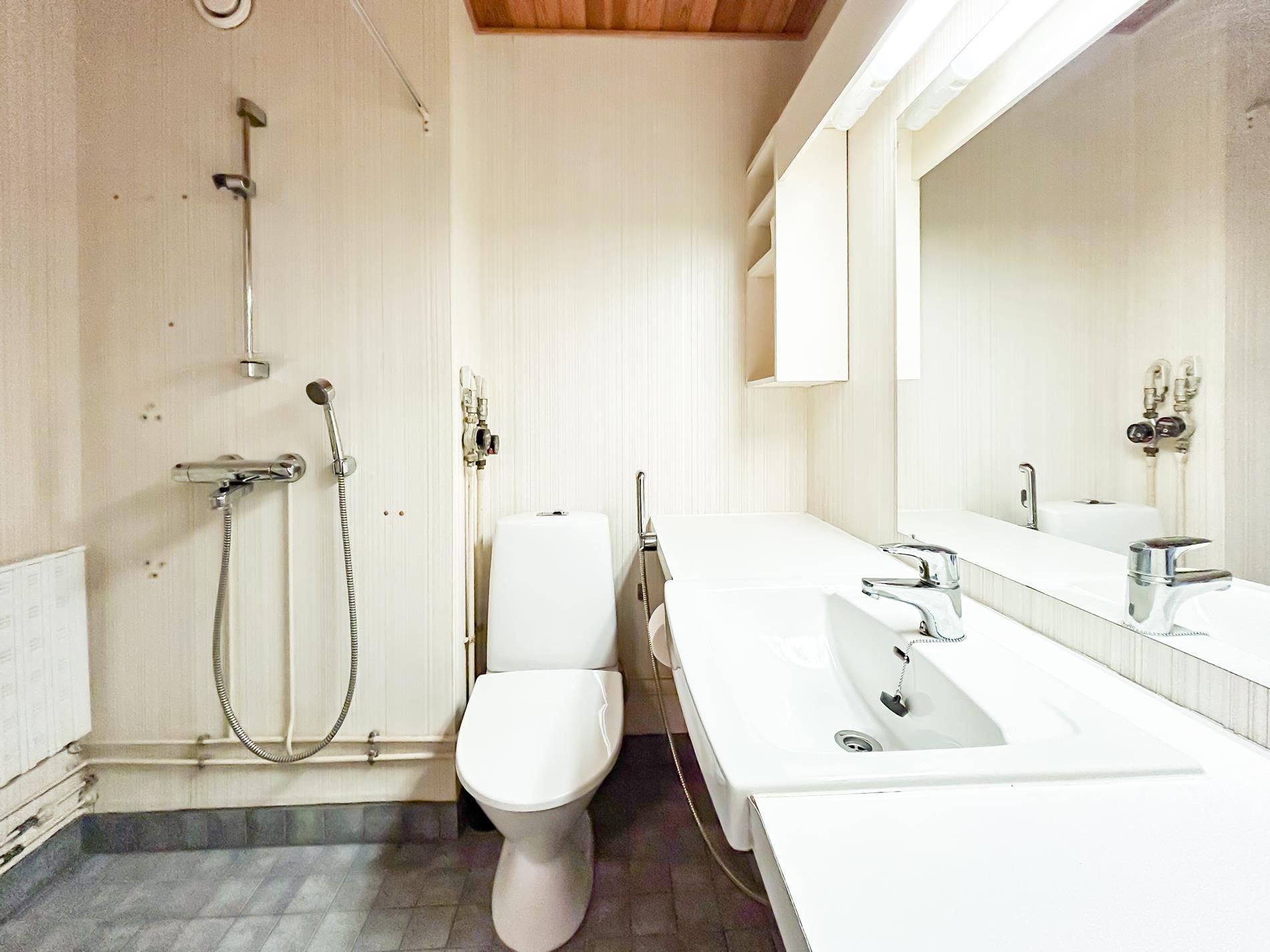 - Kylpyhuone, suihku, peilit, pesukoneliitäntä, kiinteät valaisimet.