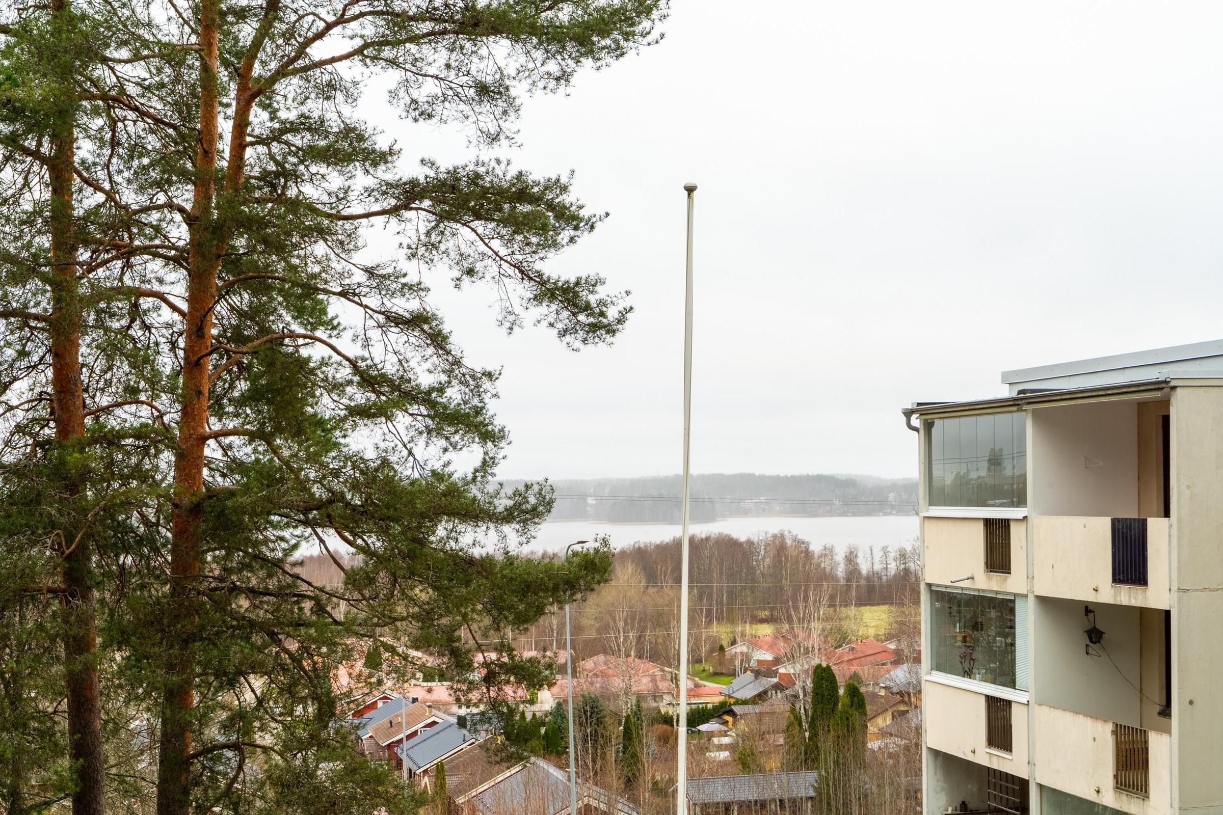 Parvekkeelta sekä asunnon ikkunoista avautuvat upeat, rauhoittavat näkymät järvelle. Täydellinen paikka nauttia kahvihetkistä ja vuodenajan vaihteluista.