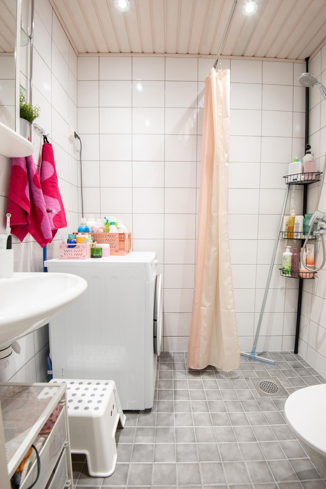 - Suihku, peilikaappi, pesukoneliitäntä.