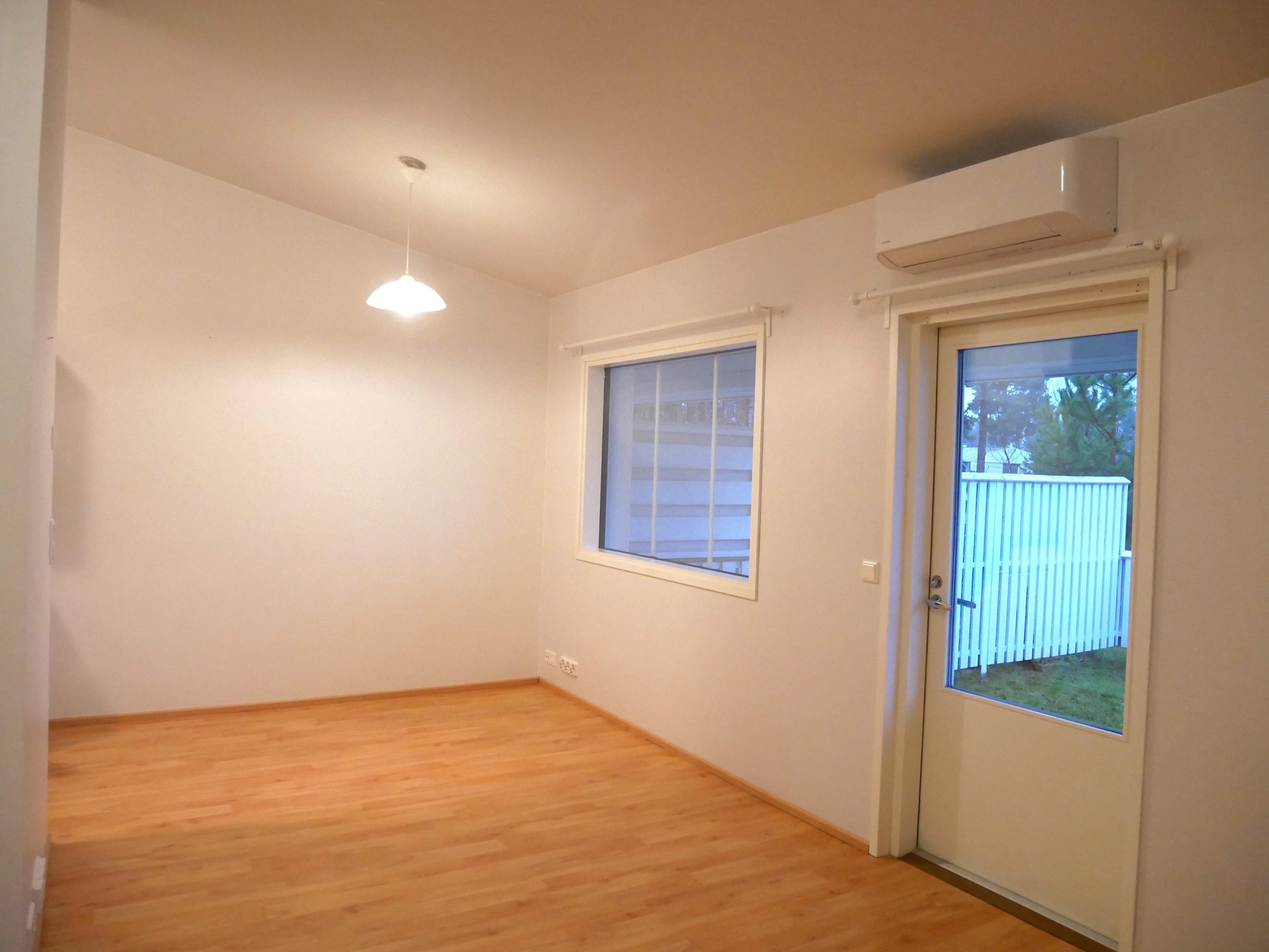 Keittiö: laminaatti, maali. Olohuone: laminaatti, maali. Makuuhuone 1: laminaatti, maali. Sauna: laatta, paneeli. Kylpyhuone: laatta, laatta.