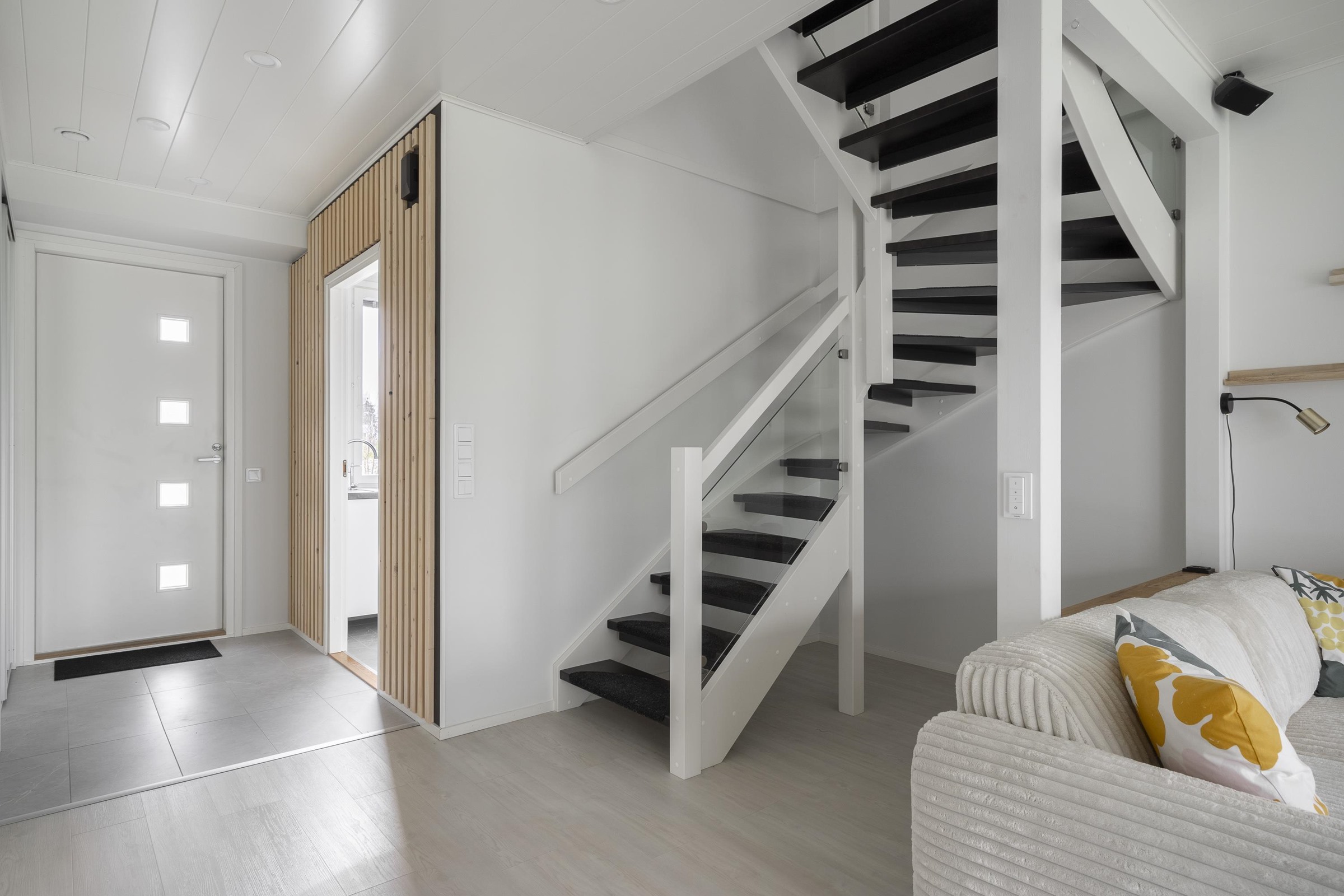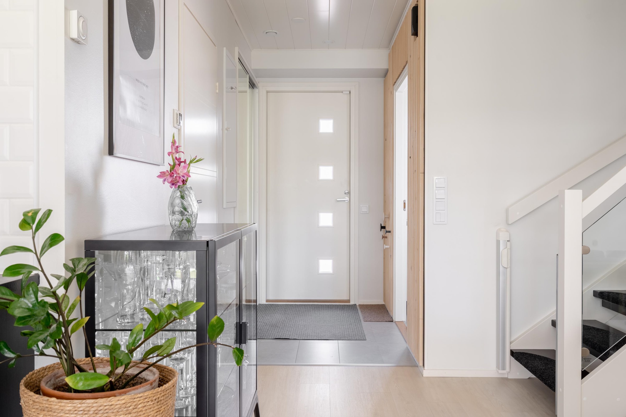 Tähän siistiin ja moderniin kotiin sisään astuessa huomaat kuinka sen yksityiskohtiin ja toimivuuteen on panostettu, tilat on laadukkaasti rakennettu, perheiden arkeen suunniteltu ja mahtavasti varusteltu.