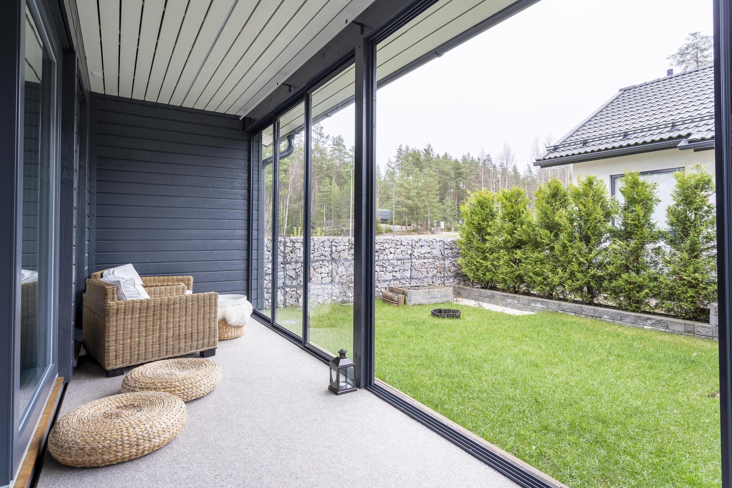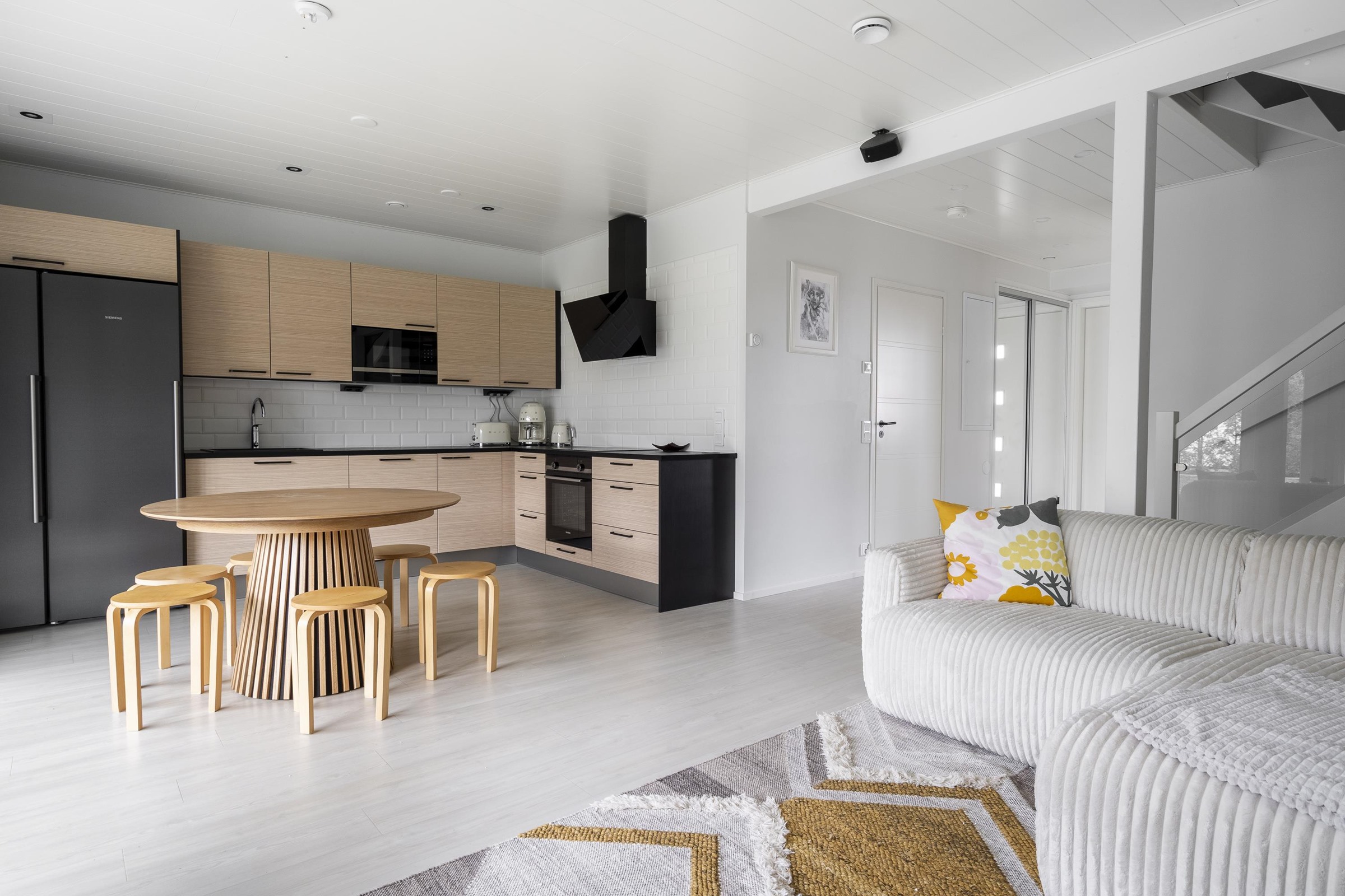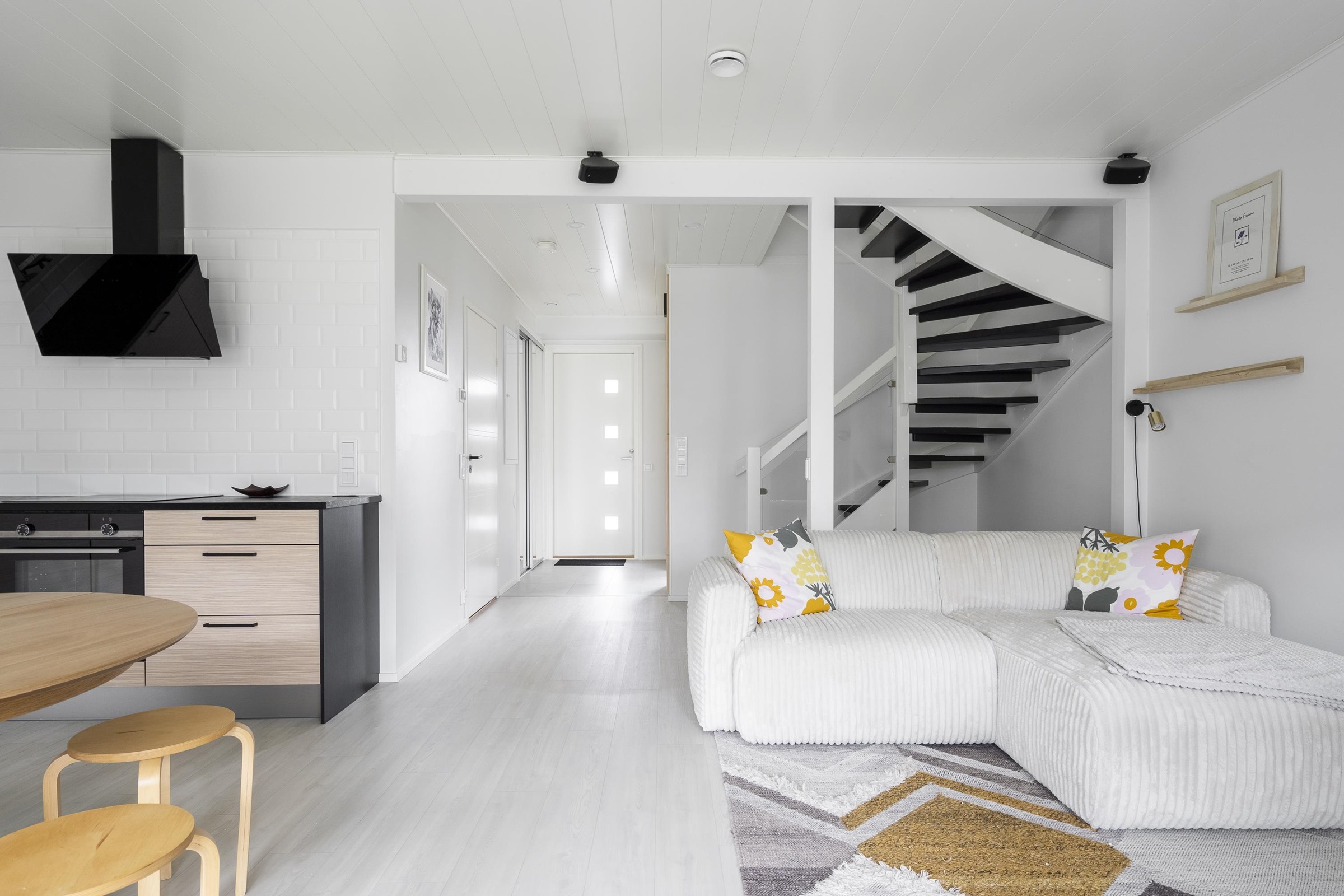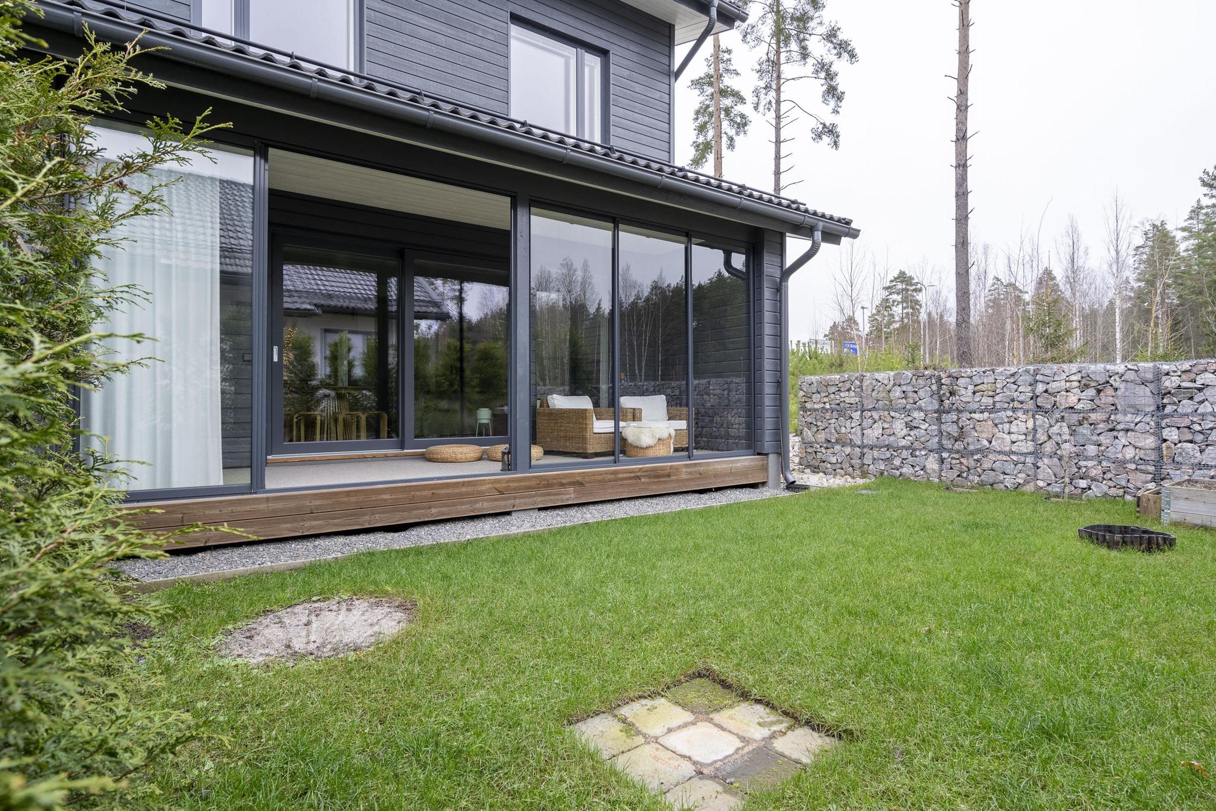 Näyttävä ja laadukkain materiaalein päivitetty 2020 valmistunut upea rivitalon päätyasunto rauhallisessa Puustellinmetsässä, Tuusulan Rykmentinpuiston asuntomessualueen kupeessa.
