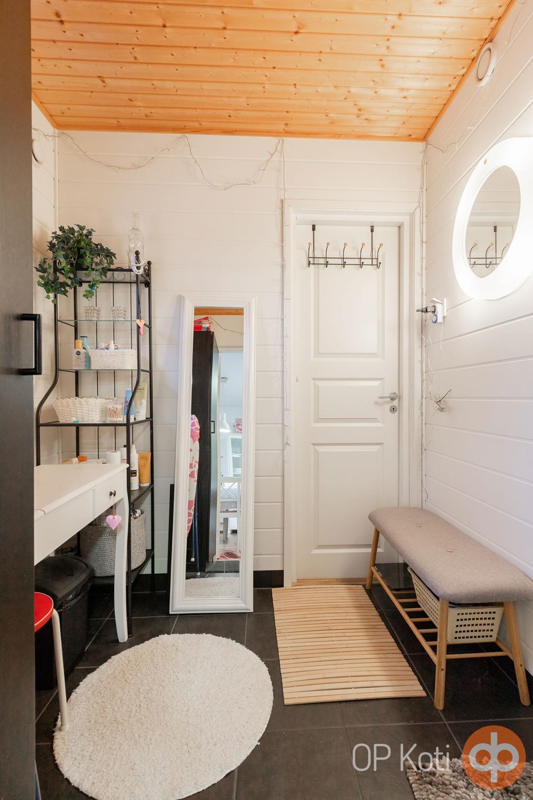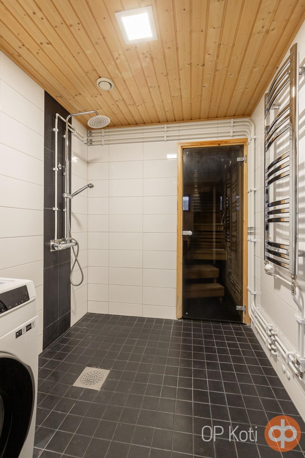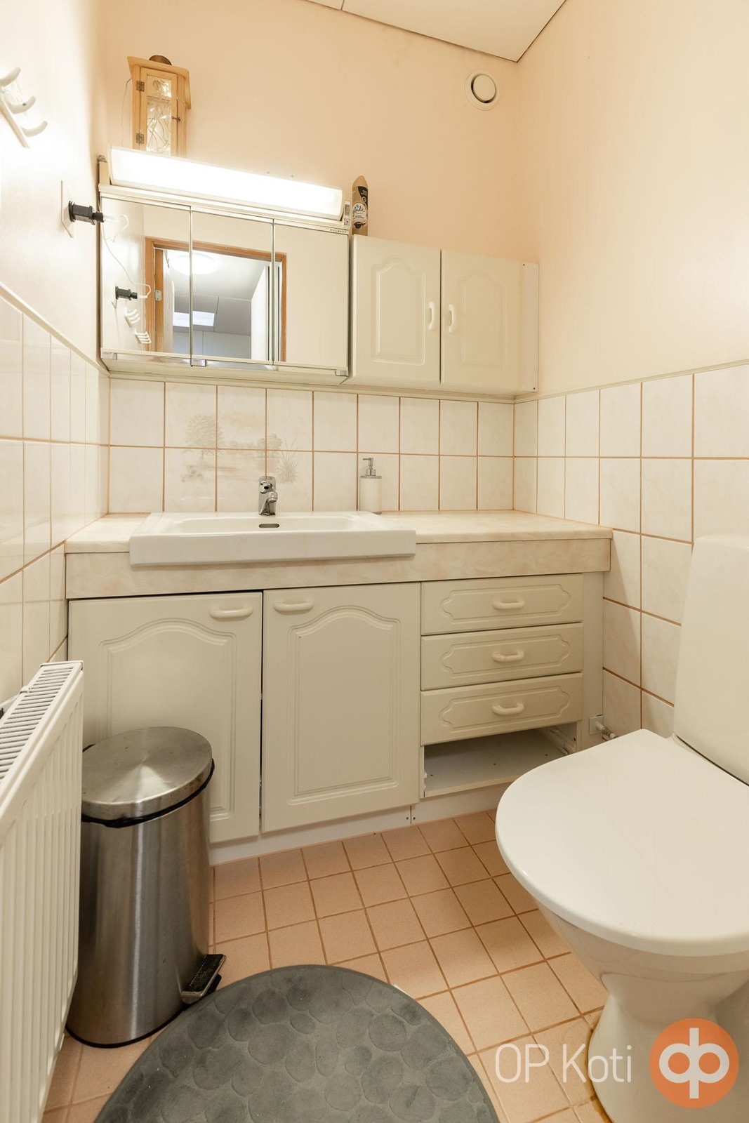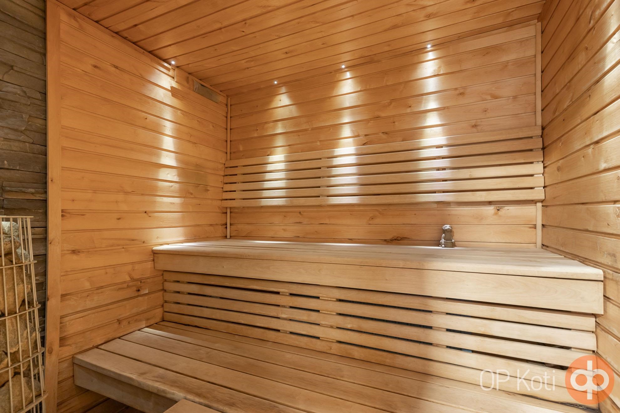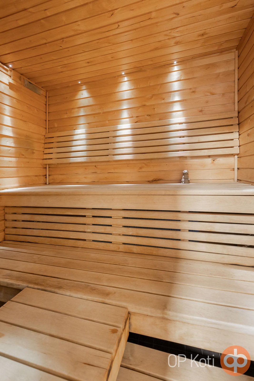 - Sauna, sähkökiuas, kylpyhuone, erillinen wc, peilit Valopeili pukuhuoneessa, peilikaappi Erillisessä vessassa, allaskaappi Erillisessä vessassa, pesukoneliitäntä Kylpyhuoneessa, lattialämmitys Kylpyhuone ja pukuhuone, kiinteät valaisimet. kylpyhuone, sauna ja pukuhuone remontoitu 2015.