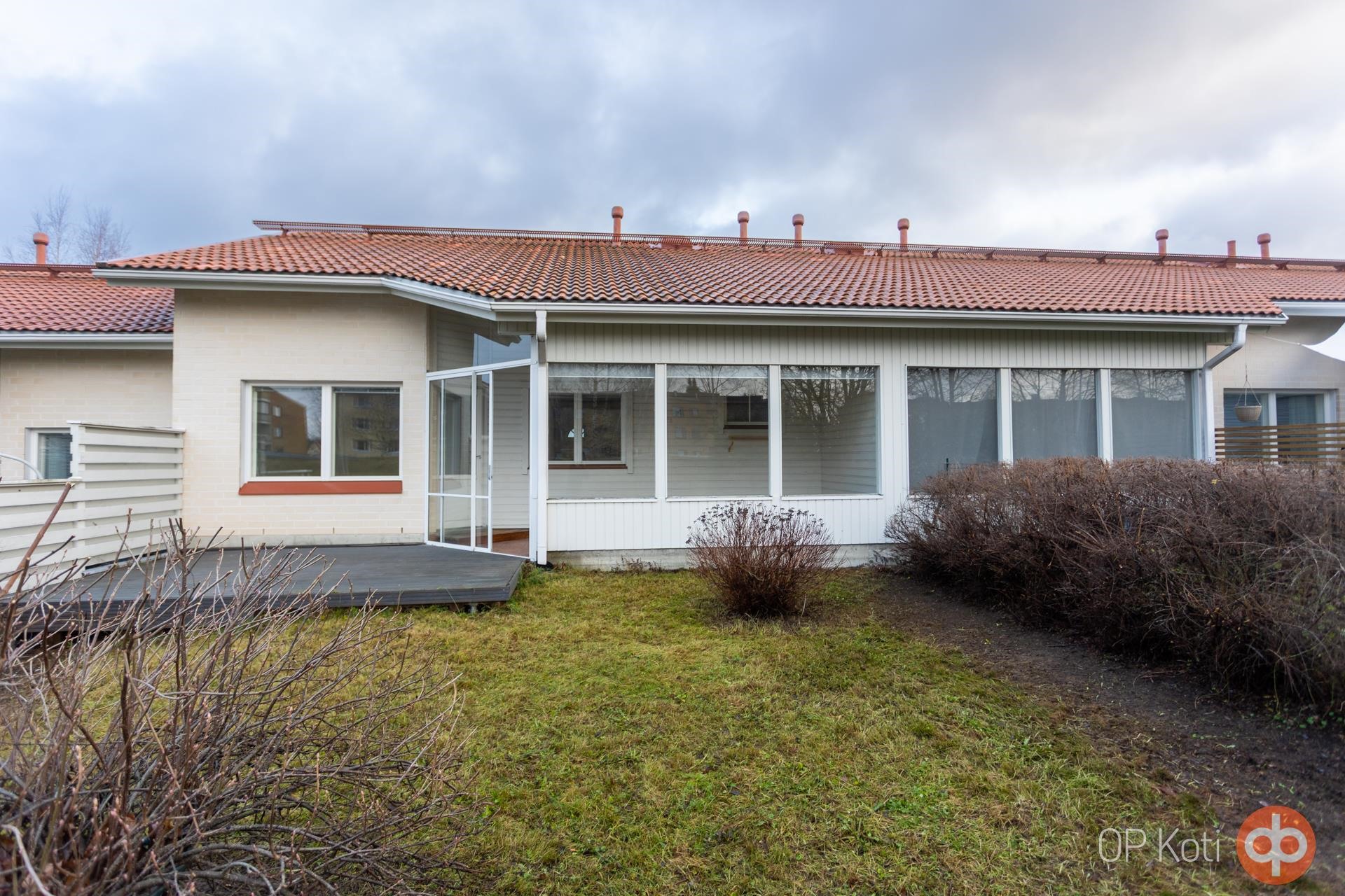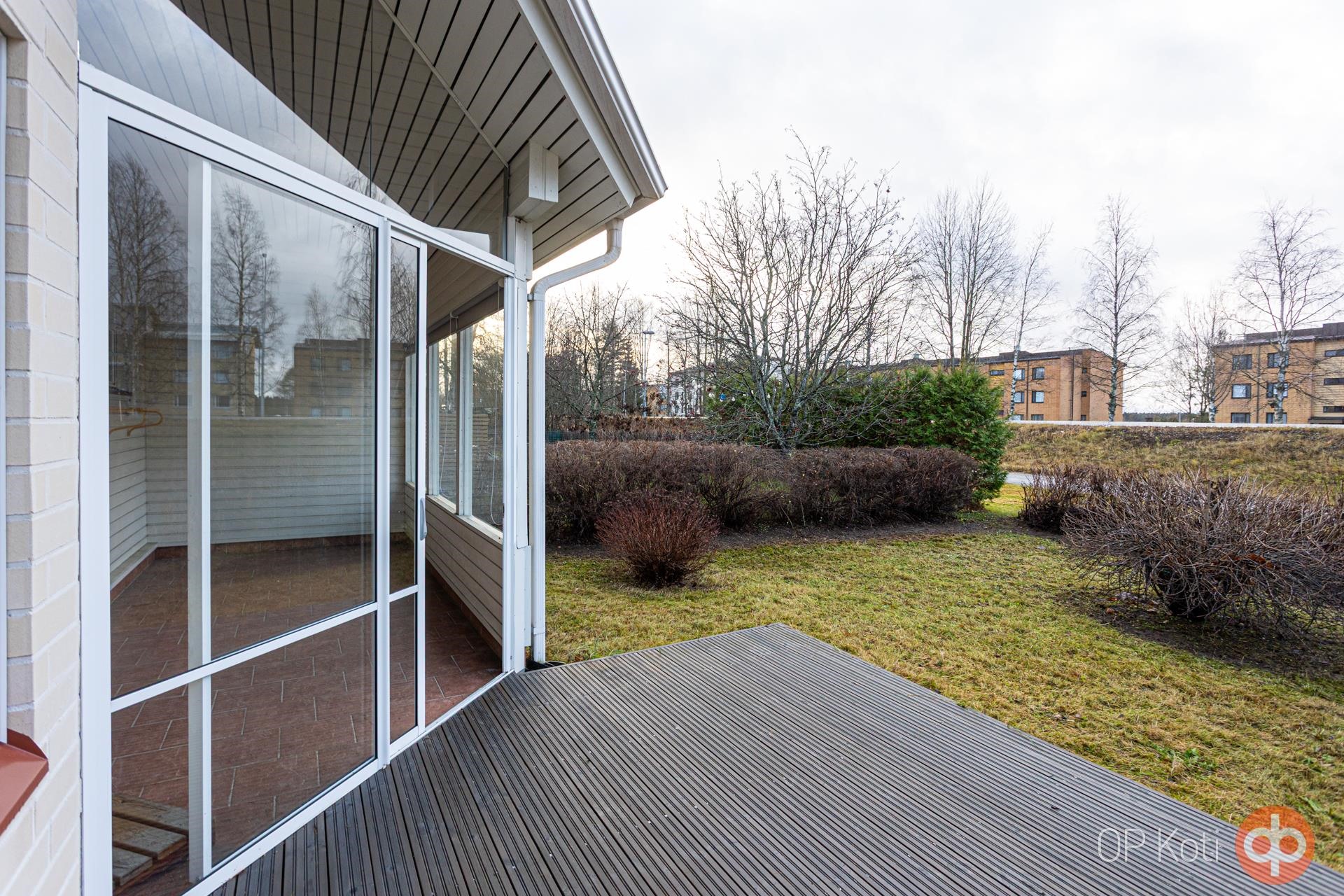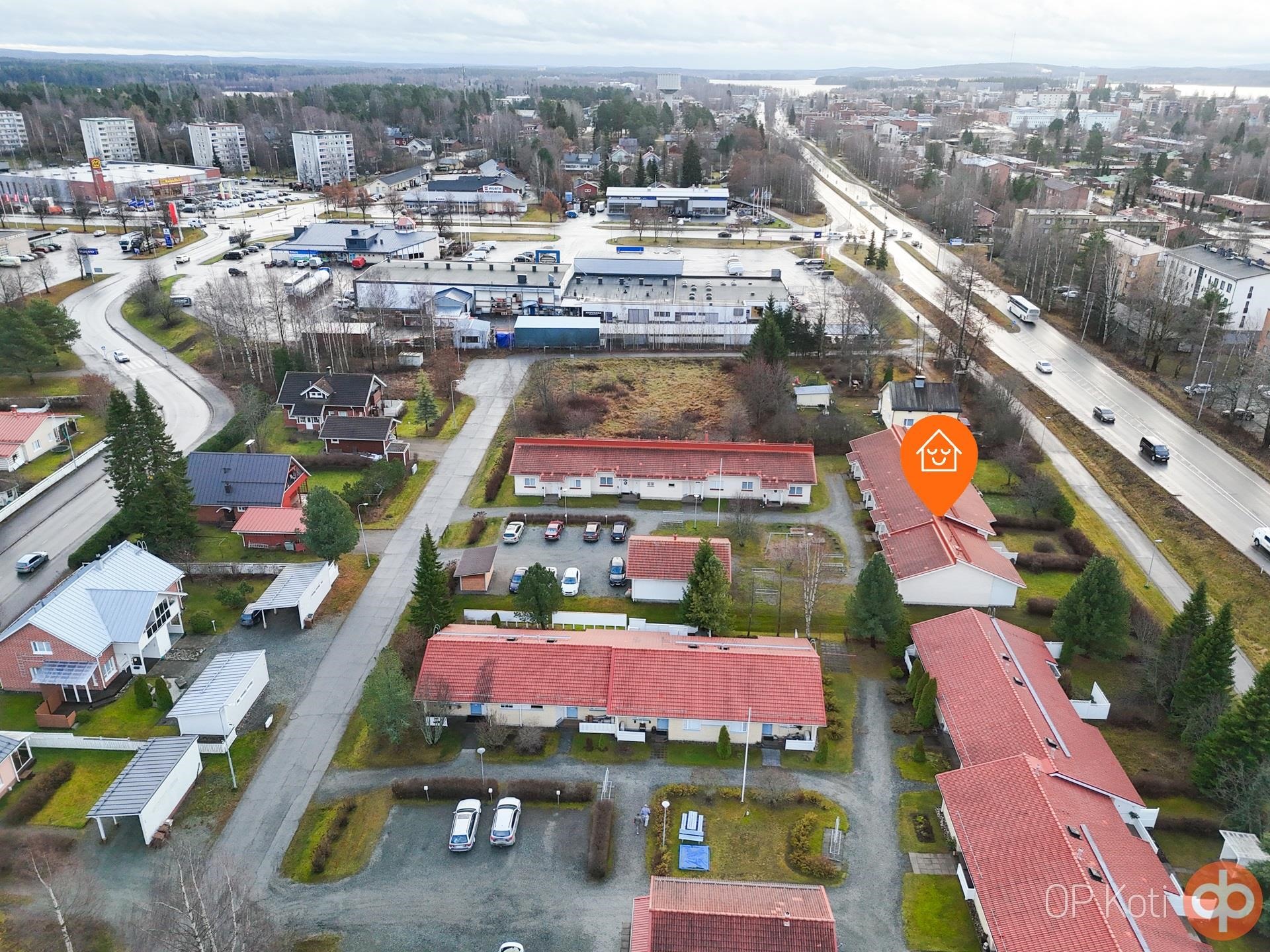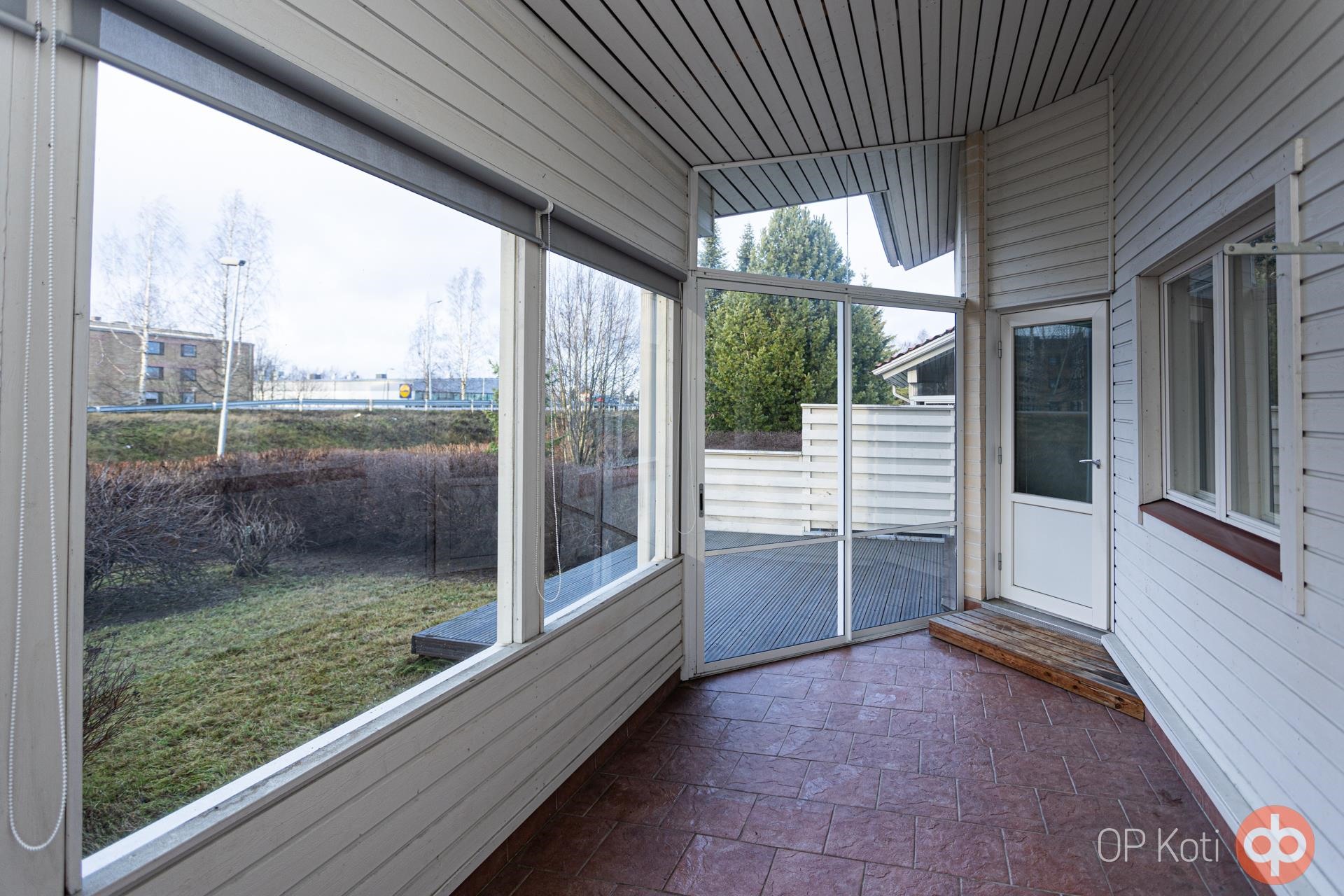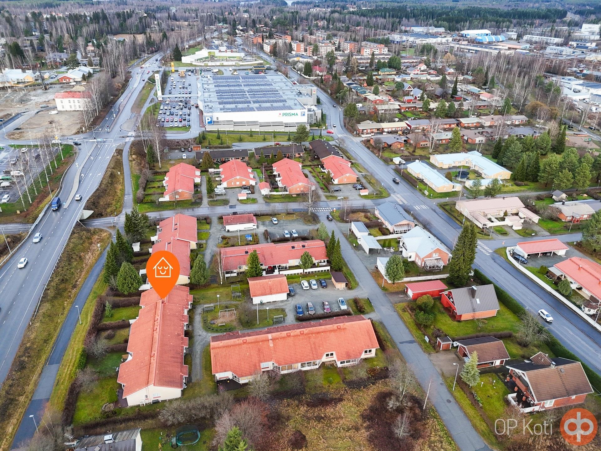 Ulkona lämpimän ulkovaraston ja kauniisti hoidettujen nurmikkoalueiden sekä pensasaidan ansiosta koti tarjoaa sekä yksityisyyttä että tilaa nauttia ulkoilmasta. Prisma, Lidl ja pian avautuva Rusta-kauppakeskus ovat alle kilometrin päässä, mikä tekee arjen asioinnista helppoa.