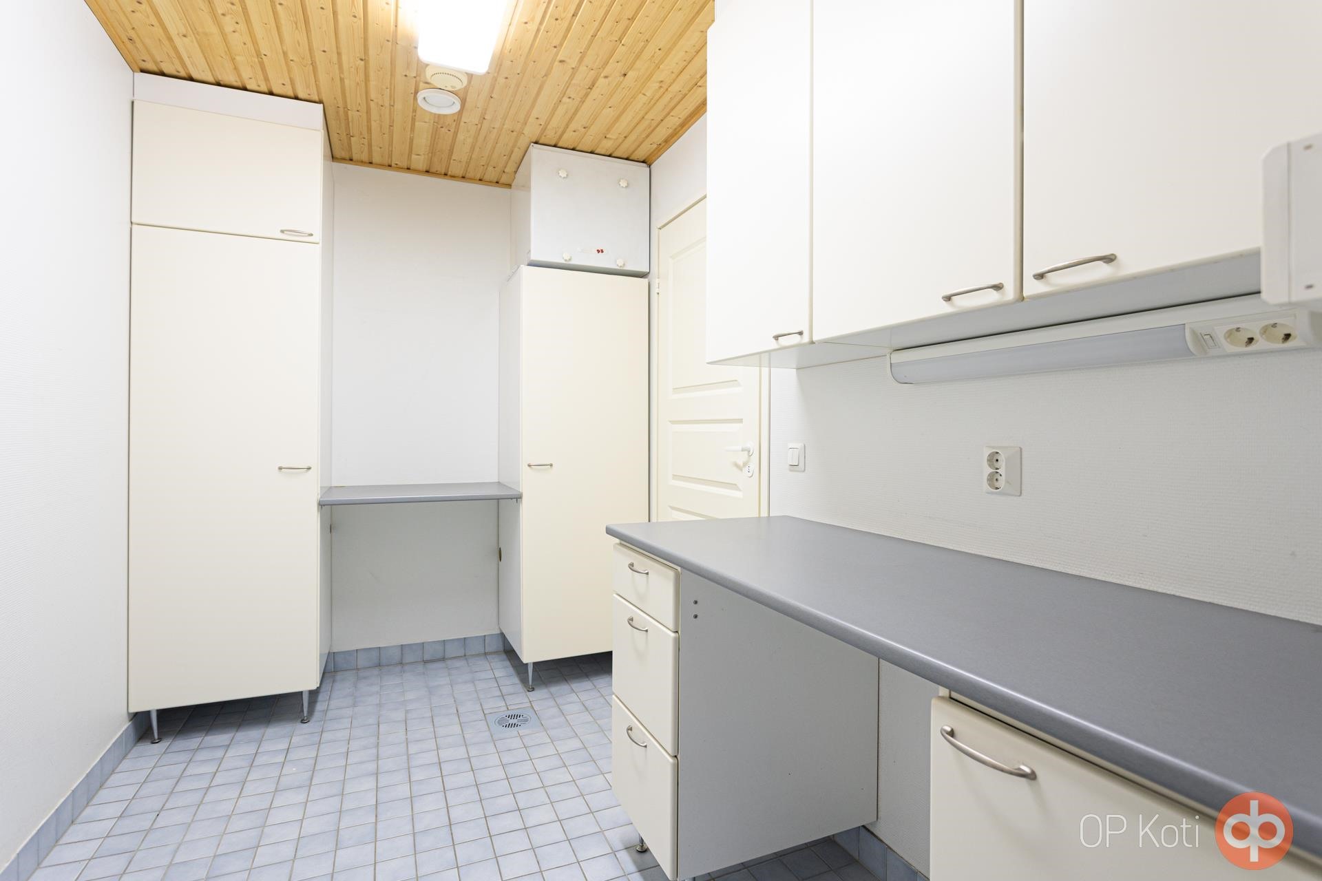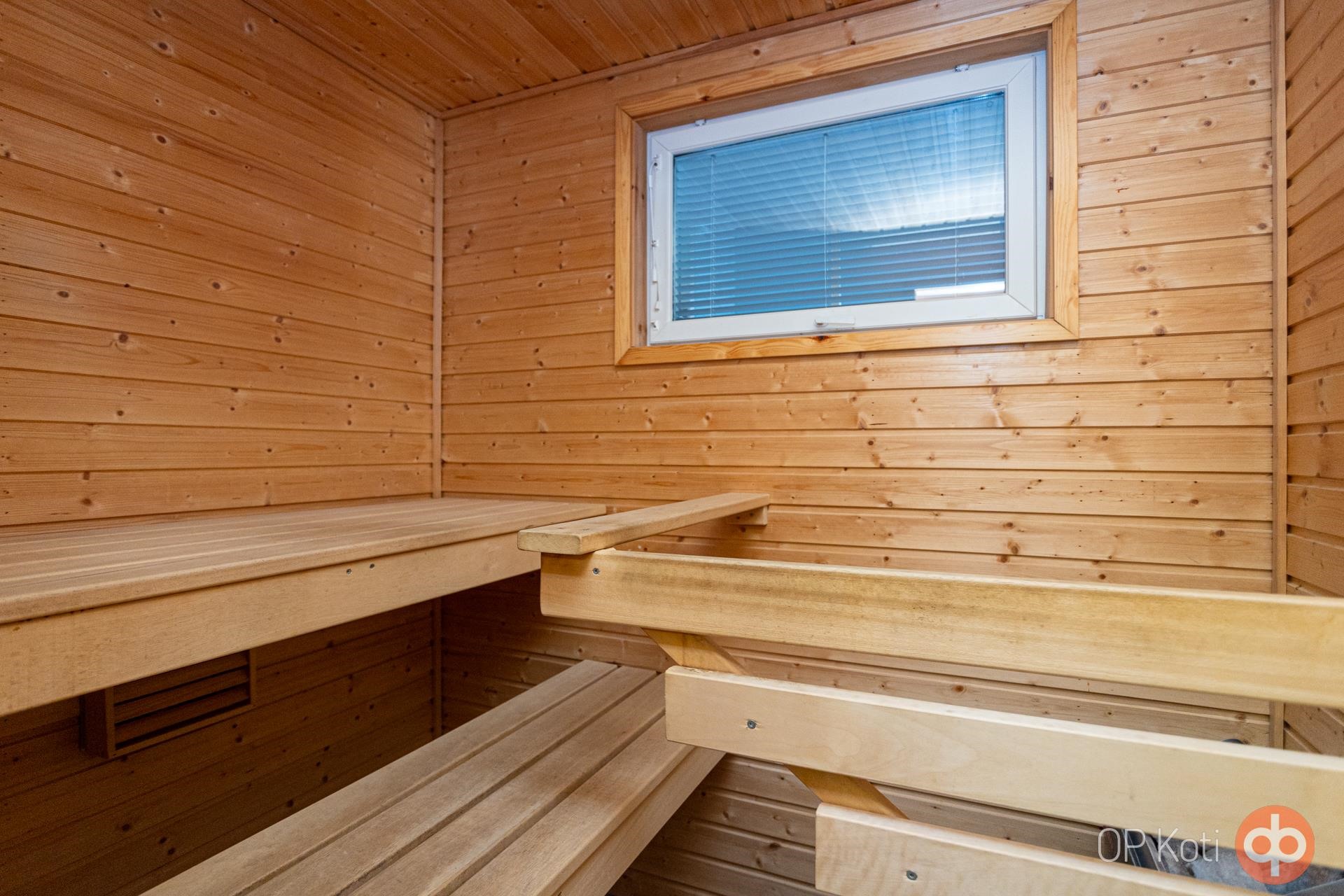 - Sauna, sähkökiuas, kylpyhuone, erillinen wc, suihku, suihkuseinä, peilit, peilikaappi, allaskaappi, pesukoneliitäntä, lattialämmitys, kiinteät valaisimet.