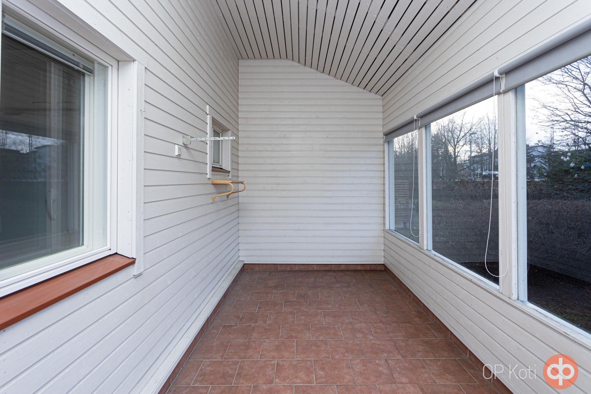 Kodin keittiö ja olohuone muodostavat yhtenäisen tilan, joka kutsuu viihtymään ja viettämään aikaa läheisten kanssa. Kylpyhuoneen sauna ja tilava kodinhoitohuone tekevät arjen hoidosta sujuvaa. Lännen suuntaan avautuva iso lasitettu terassi toimii täydellisenä paikkana rentoutua ja nauttia ilta-auringosta.
