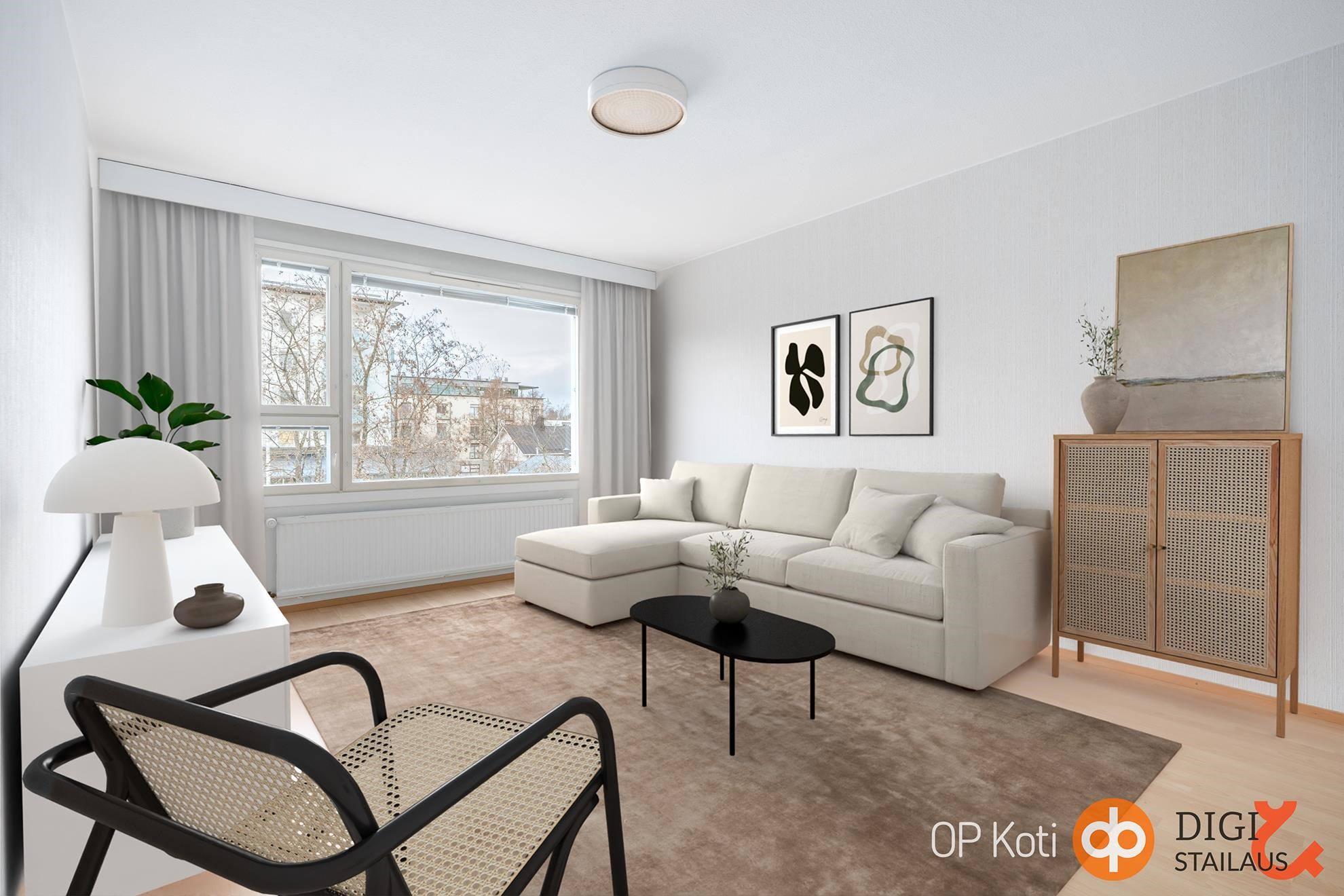 Tule tutustumaan tähän hyvällä sijainnilla olevaan, valoisaan kerrostaloasuntoon Joensuun keskustan ruutukaavalla. Kaikki palvelut, koulut, kahvilat, kulttuurikohteet sekä erinomaiset ulkoilu- ja liikuntamahdollisuudet löytyvät muutaman askeleen päästä. Arki sujuu täällä kuin itsestään, asuminen on vaivatonta ja sujuvaa ilman omaa autoakin. Asunnon sydän on tunnelmallinen olohuone, jossa varaava takka luo lämpöä ja kodikkuutta vuoden ympäri. Tilava makuuhuone tarjoaa rauhallisen paikan, josta avautuu käynti suojaisalle, lasitetulle parvekkeelle. Parveke on sisäpihan puolella ja toimii viihtyisänä jatkeena oleskelutiloille pitkälle syksyyn ja tarjoaa yksityistä ulkotilaa, josta voi nauttia säällä kuin säällä. Asunnon keittiö kutsuu kokkailemaan ja kokoamaan ystävät pöydän ääreen. Oman saunan tuoma arjen luksus tekee kokonaisuudesta täydellisen, ja kaksi wc:tä lisäävät huomattavasti asumismukavuutta ja käytännöllisyyttä. Tämä koti tarjoaa yhdistelmän keskeistä sijaintia, rauhallista asumista ja käytännöllisiä ratkaisuja. Tervetuloa tutustumaan tähän asuntoon.