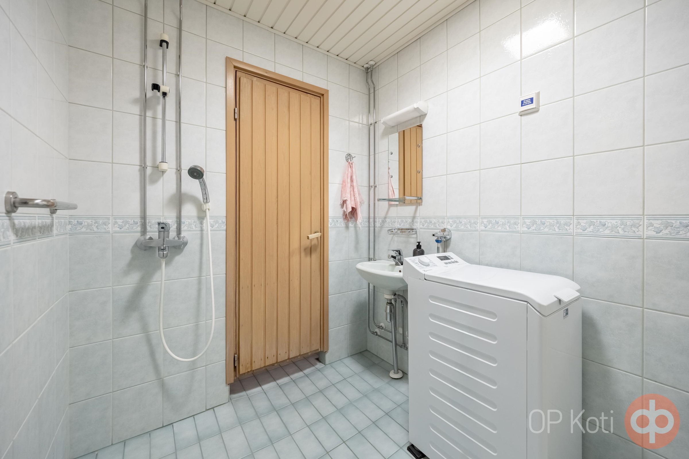 - Sauna, sähkökiuas, kylpyhuone, erillinen wc, suihku, peilit, peilikaappi erillisessä wc.ssä, pesukoneliitäntä, kiinteät valaisimet. pieni kaappi erillisessä wc:ssä
