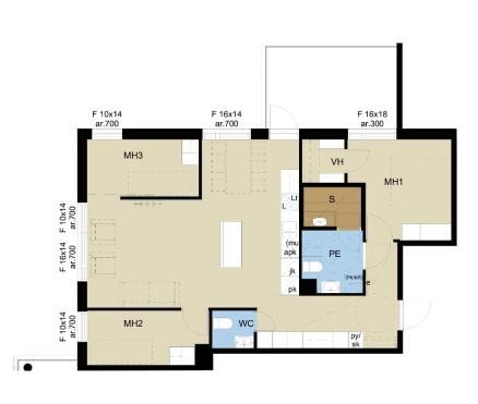 - Urheiluvälinevarasto, lastenvaunuvarasto, väestösuoja, huoneistokohtaiset varastot