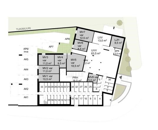 - Urheiluvälinevarasto, lastenvaunuvarasto, väestösuoja, huoneistokohtaiset varastot