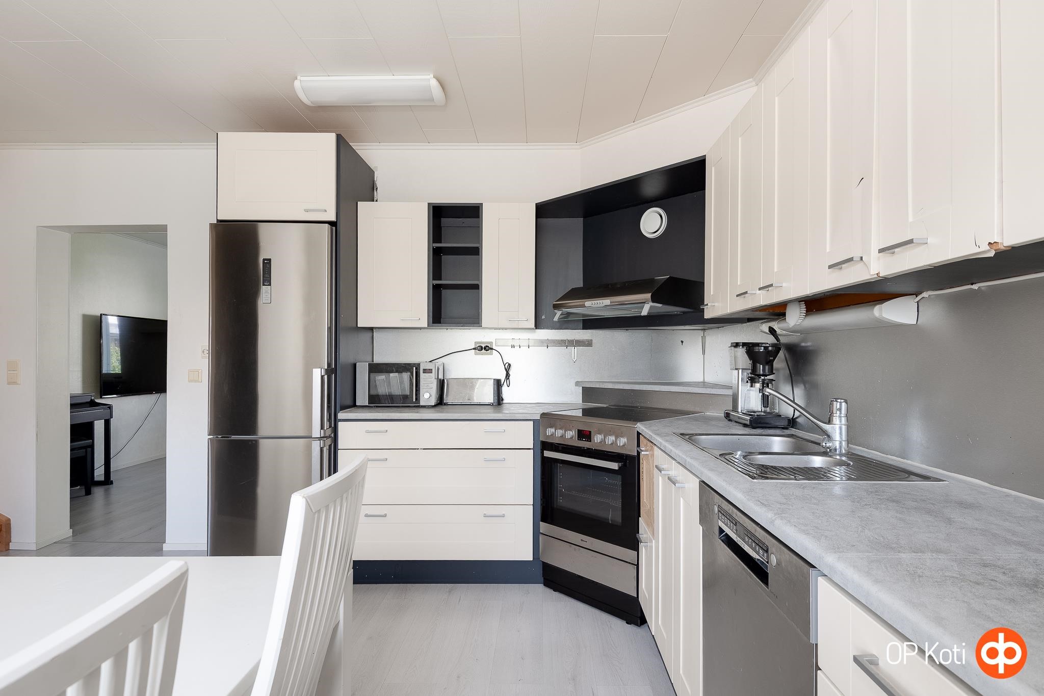 - Jääkaappipakastin, keraaminen liesi uusittu 7/2025, liesituuletin uusittu 7/2025, astianpesukone, kaapistot, kiinteät valaisimet.