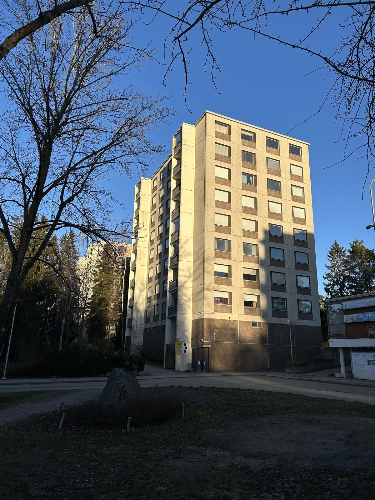 Siistikuntoinen, muuttovalmis, heti vapaa kolmannen kerroksen valoisa kolmio. Lasitettu parveke. Tilavat huoneet, vaatehuone, paljon kaappitilaa. Hissitalo.