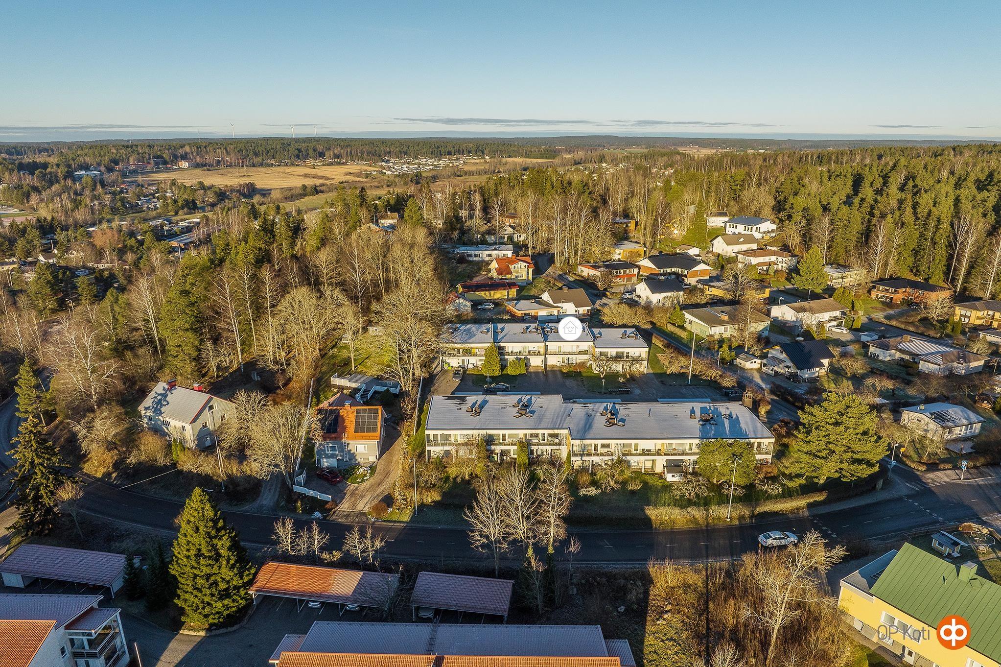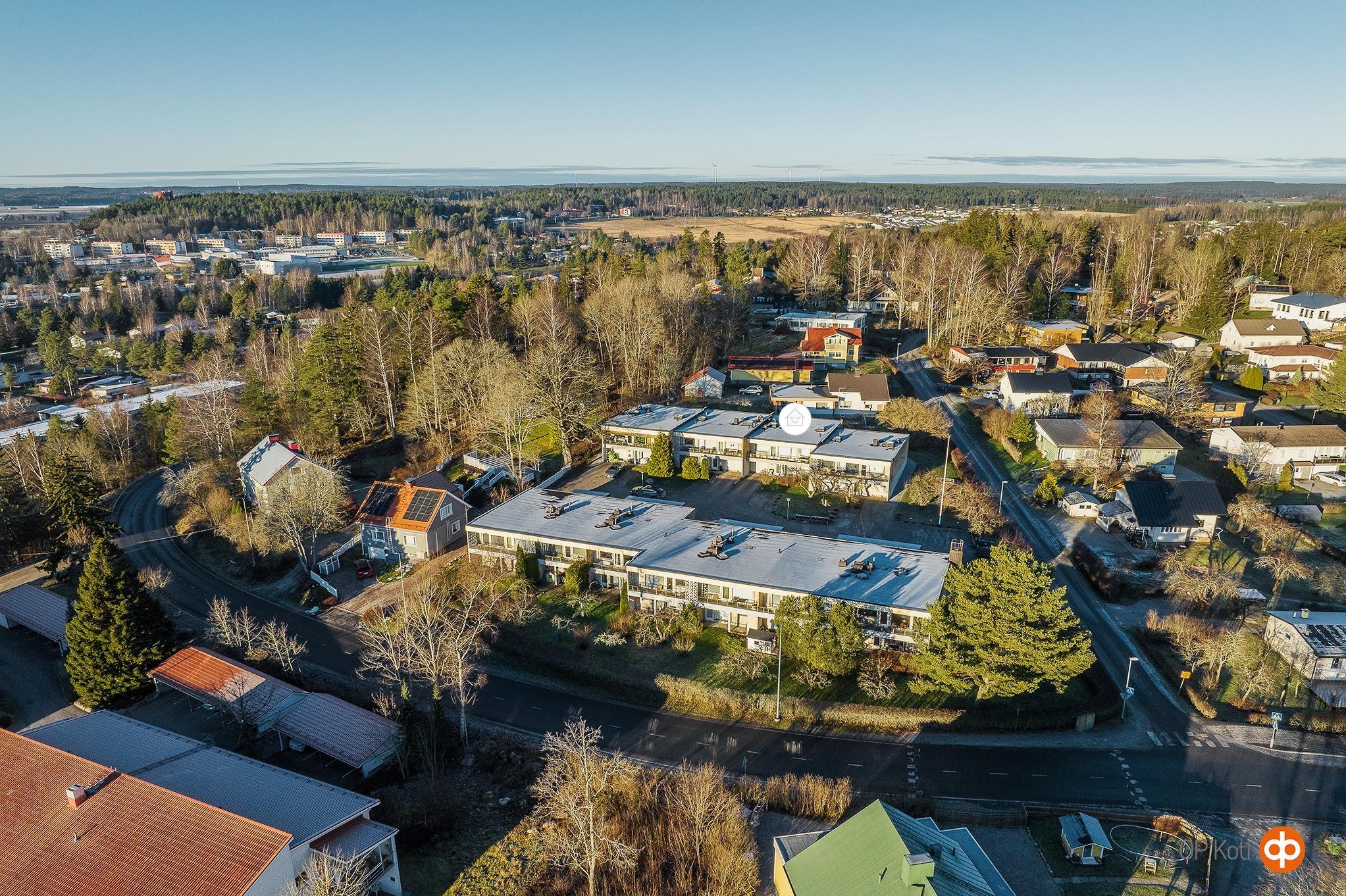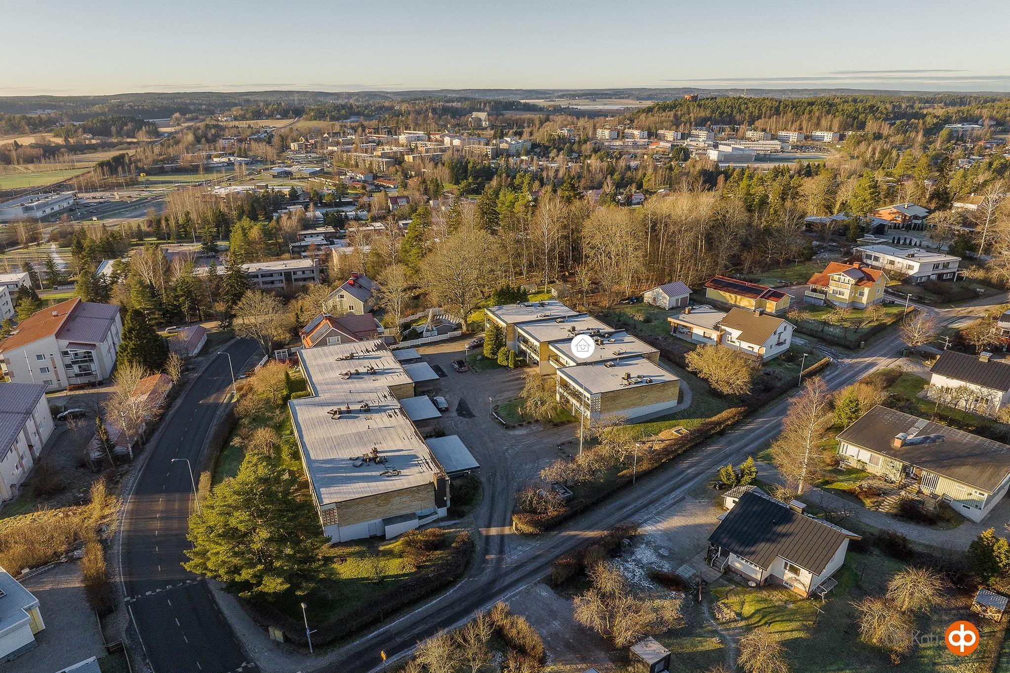 Rakennus sijaitsee keskeisellä paikalla Salon ja Halikon välimaastossa noin 2,5 km päässä Salon keskustan palveluista. Lähin päivittäistavarakauppa on noin 800 m etäisyydellä. Kaikki Halikon palvelut, kuten Pirkkatori, Lidl, Prismakeskus ja Retailpark ovat alle 1,5 km säteellä. Paikallisliikenne kulkee läheltä. Paukkulan urheilupuisto liikunta mahdollisuuksineen n. 1 km