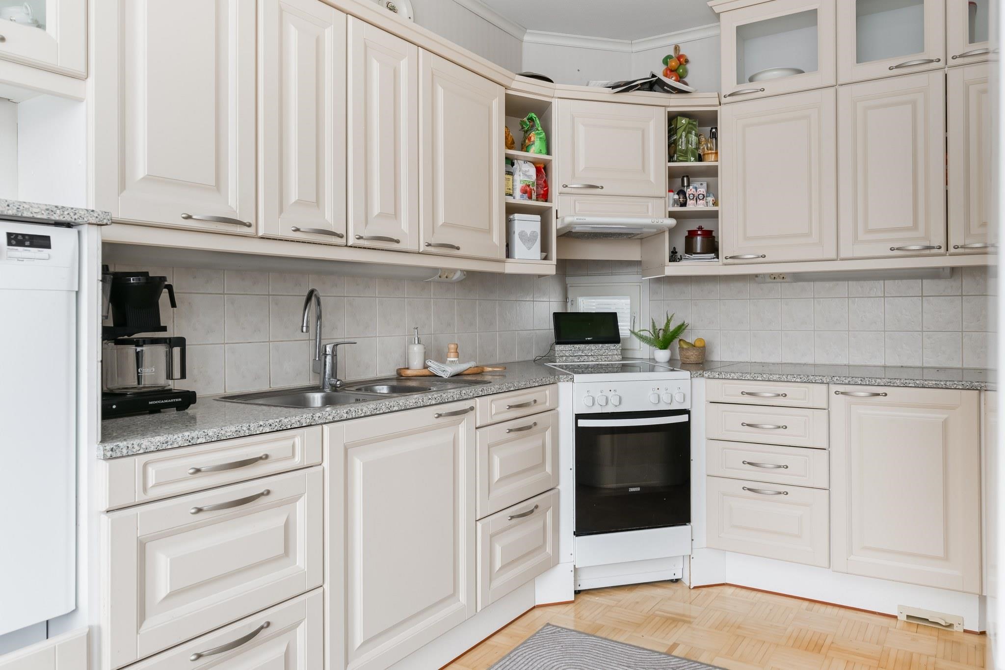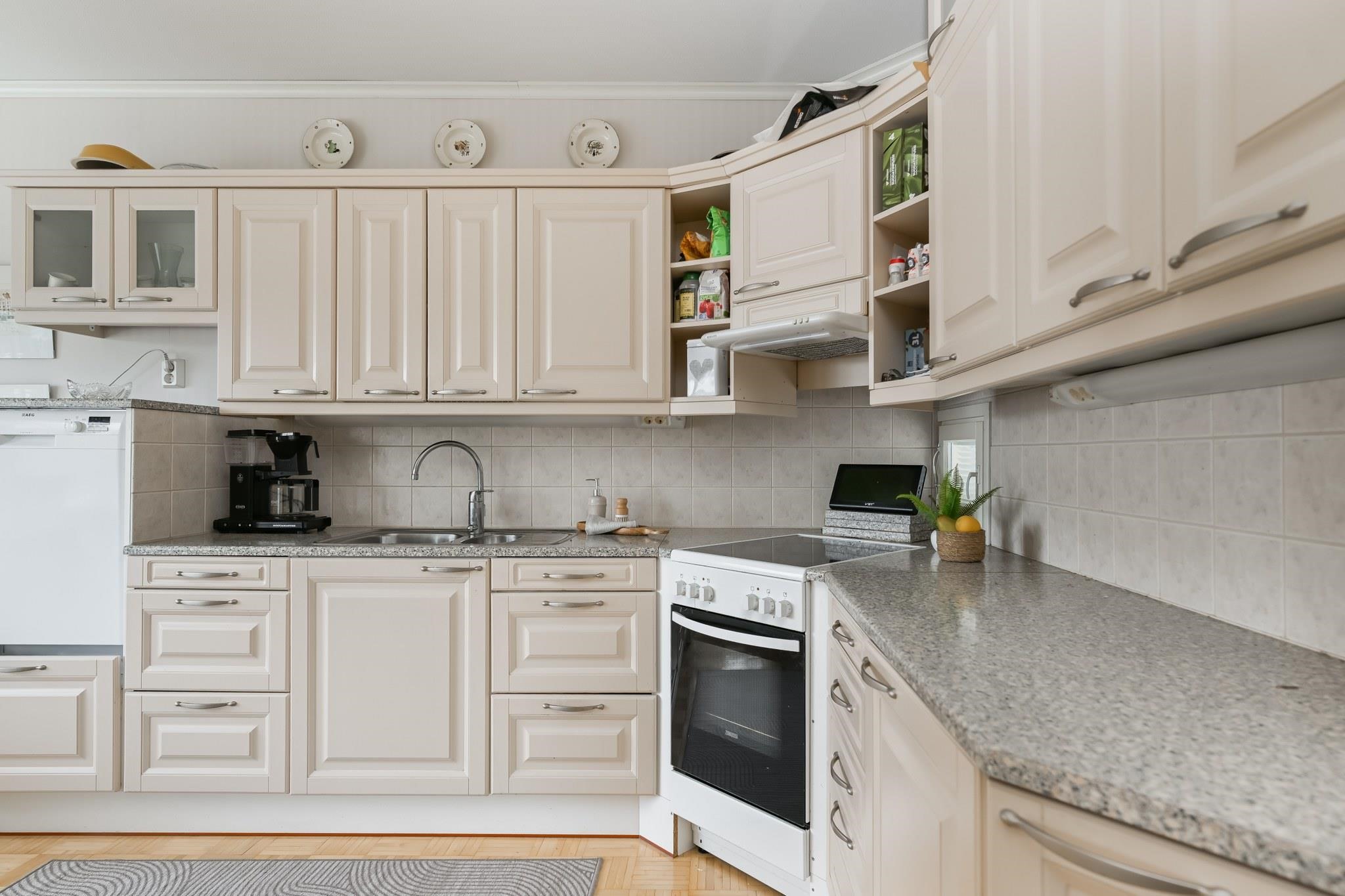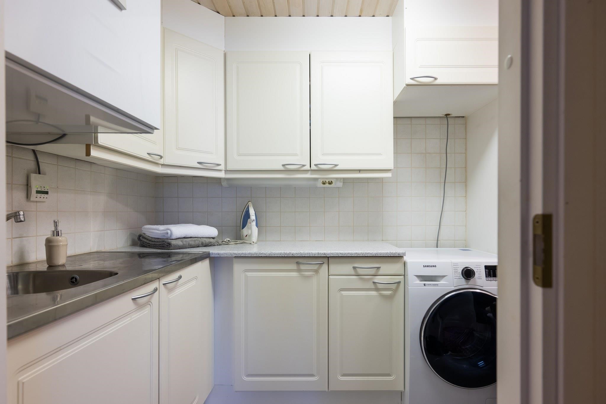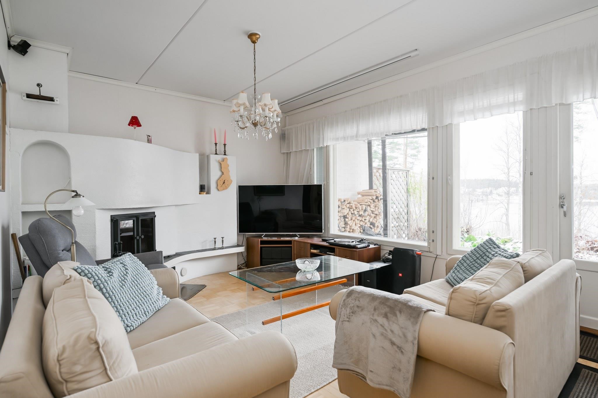 - Jääkaappi (alakerrassa), jääkaappipakastin (keittiössä), erillisuuni, keraaminen liesi, liesituuletin, astianpesukone (keittiössä ja alakerran apukeittiössä), kaapistot. Keittiön jääkaappipakastin uusittu keväällä 2025