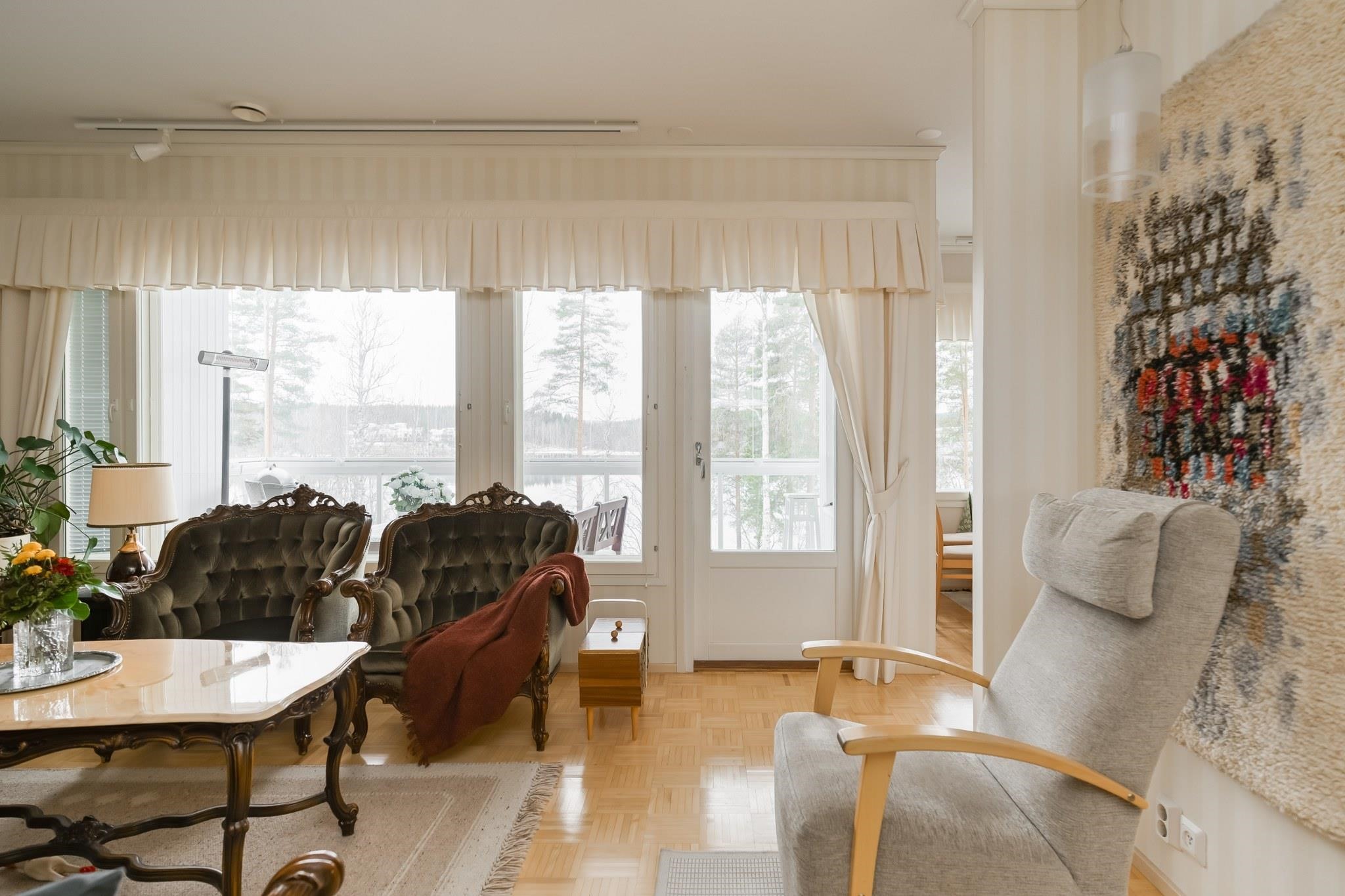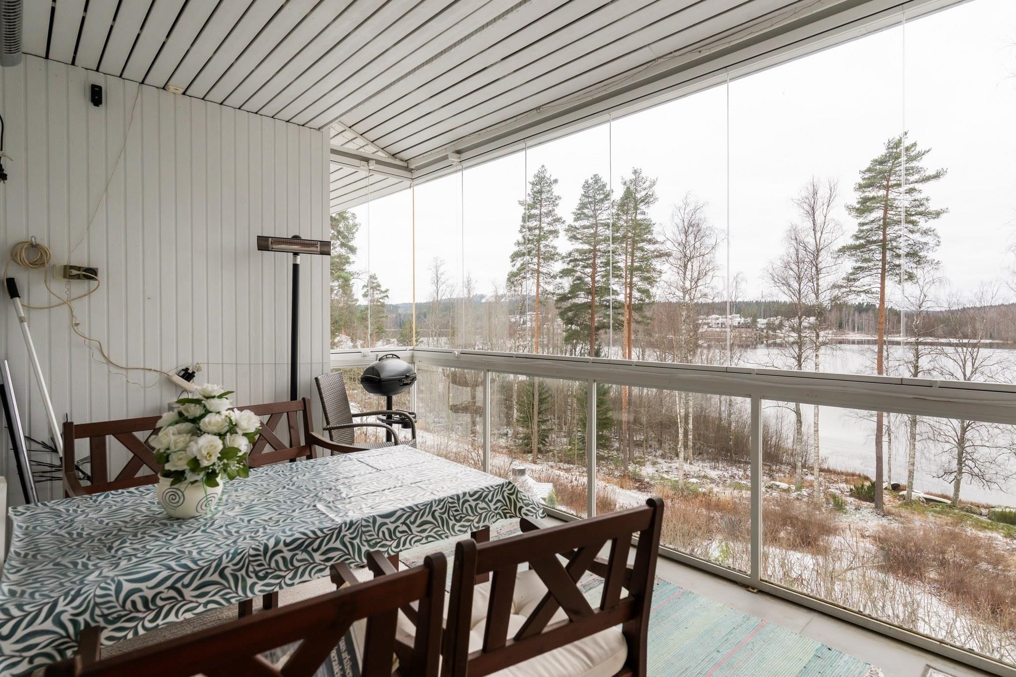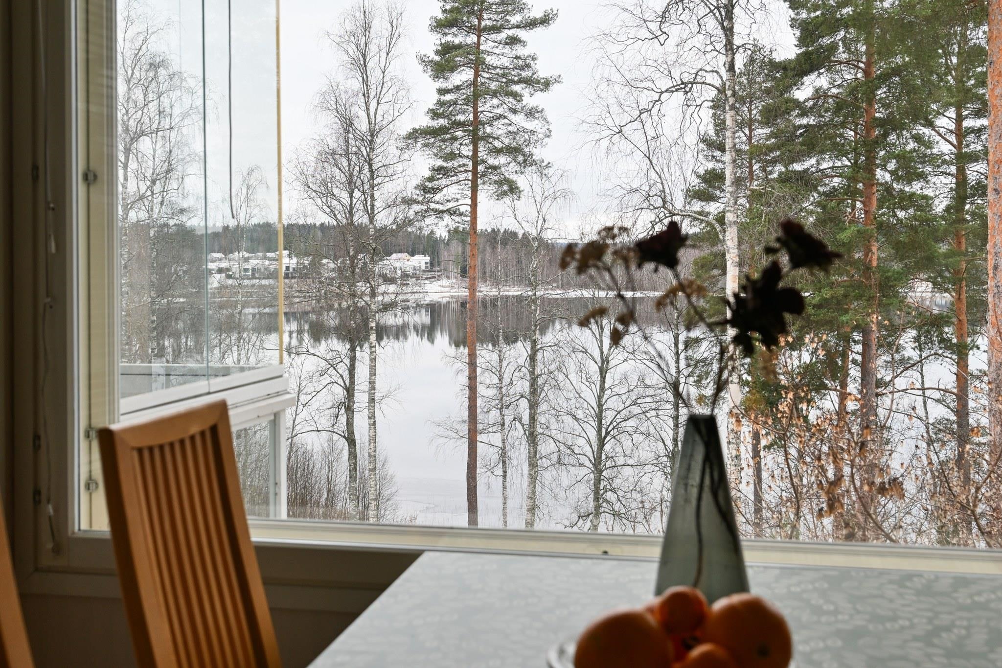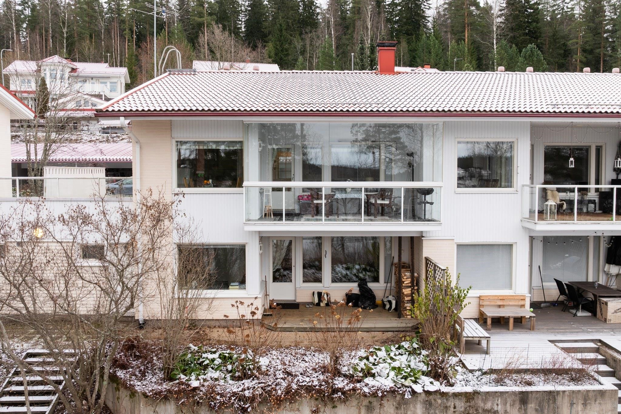 Tervetuloa tutustumaan tähän valoisaan ja tilavaan rivitaloasuntoon, joka tarjoaa upean järvinäkymän Tuomiojärvelle. Tämä kaksikerroksinen koti on ihanteellinen valinta perheelle tai pariskunnalle, joka arvostaa rauhallista asuin ympäristöä ja järven läheisyyttä. Tässä 102 neliön kodissa on avarat ja valoisat tilat. Yläkerrassa on tilava olohuone, keittiö, makuuhuone sekä kylpyhuone. Keittiön ja makuuhuoneen ikkunoista avatuu upeat maisemat Tuomionjärvelle. Lasitetulla parvekkeella on ihanaa nauttia aamukahvit aikaisin keväästä myöhään syksyyn.