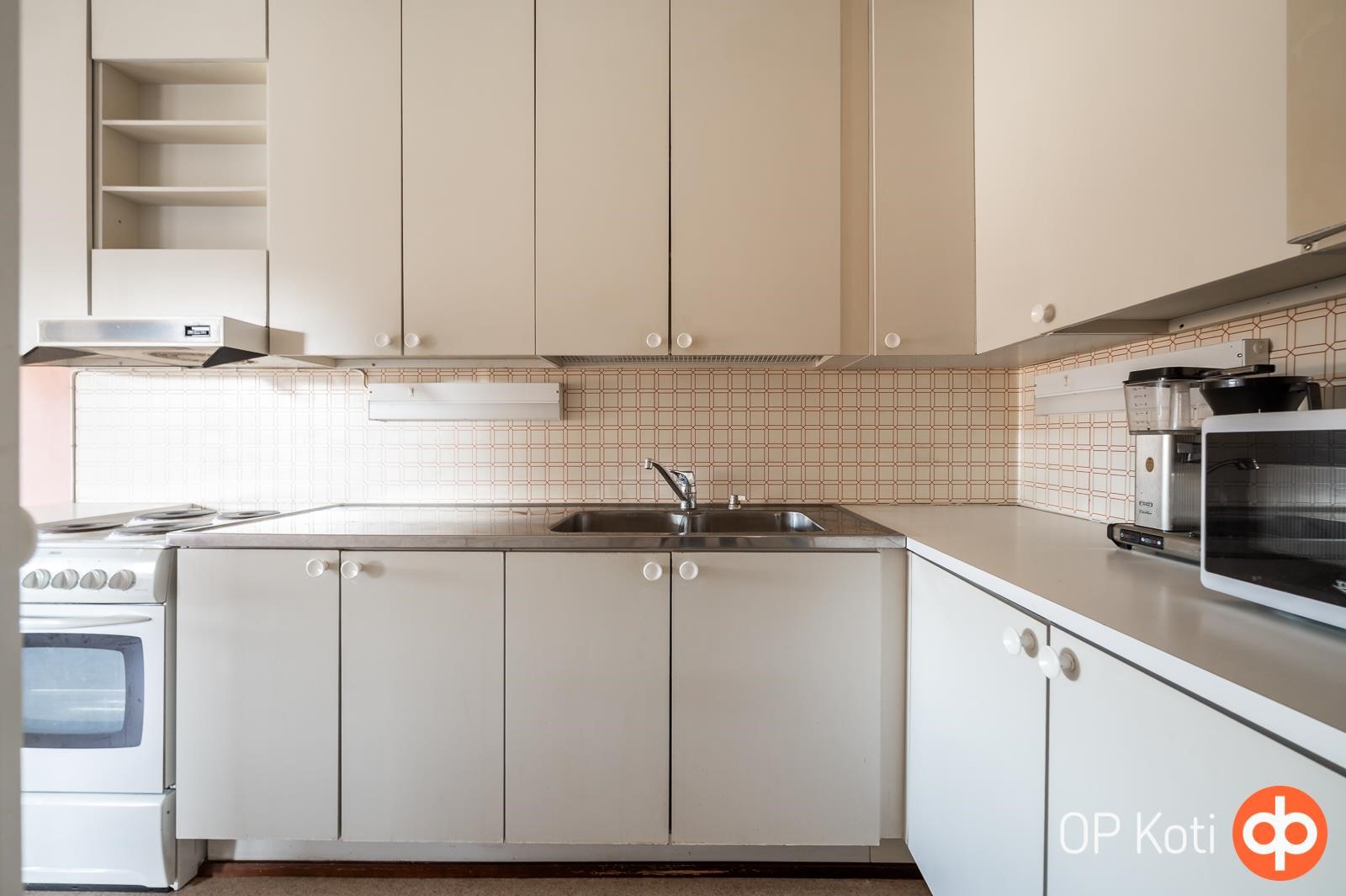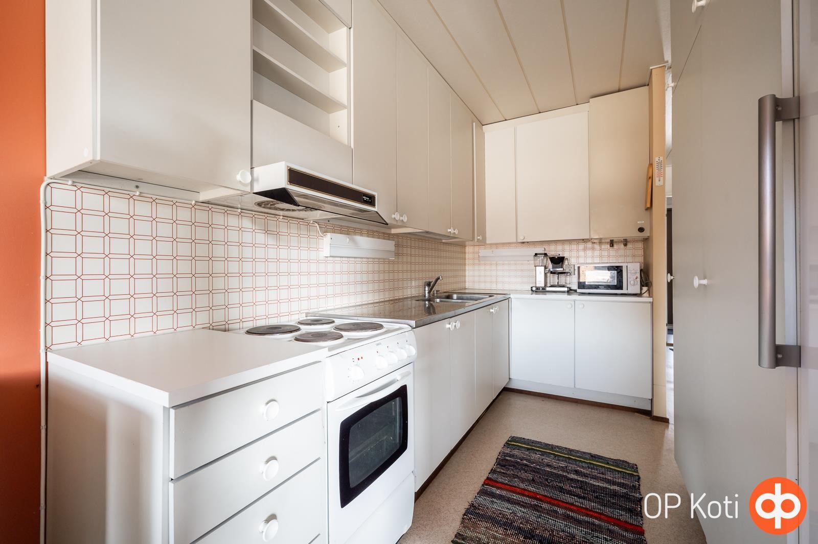 - Jääkaappi, sähköliesi, liesituuletin, kaapistot, kiinteät valaisimet.