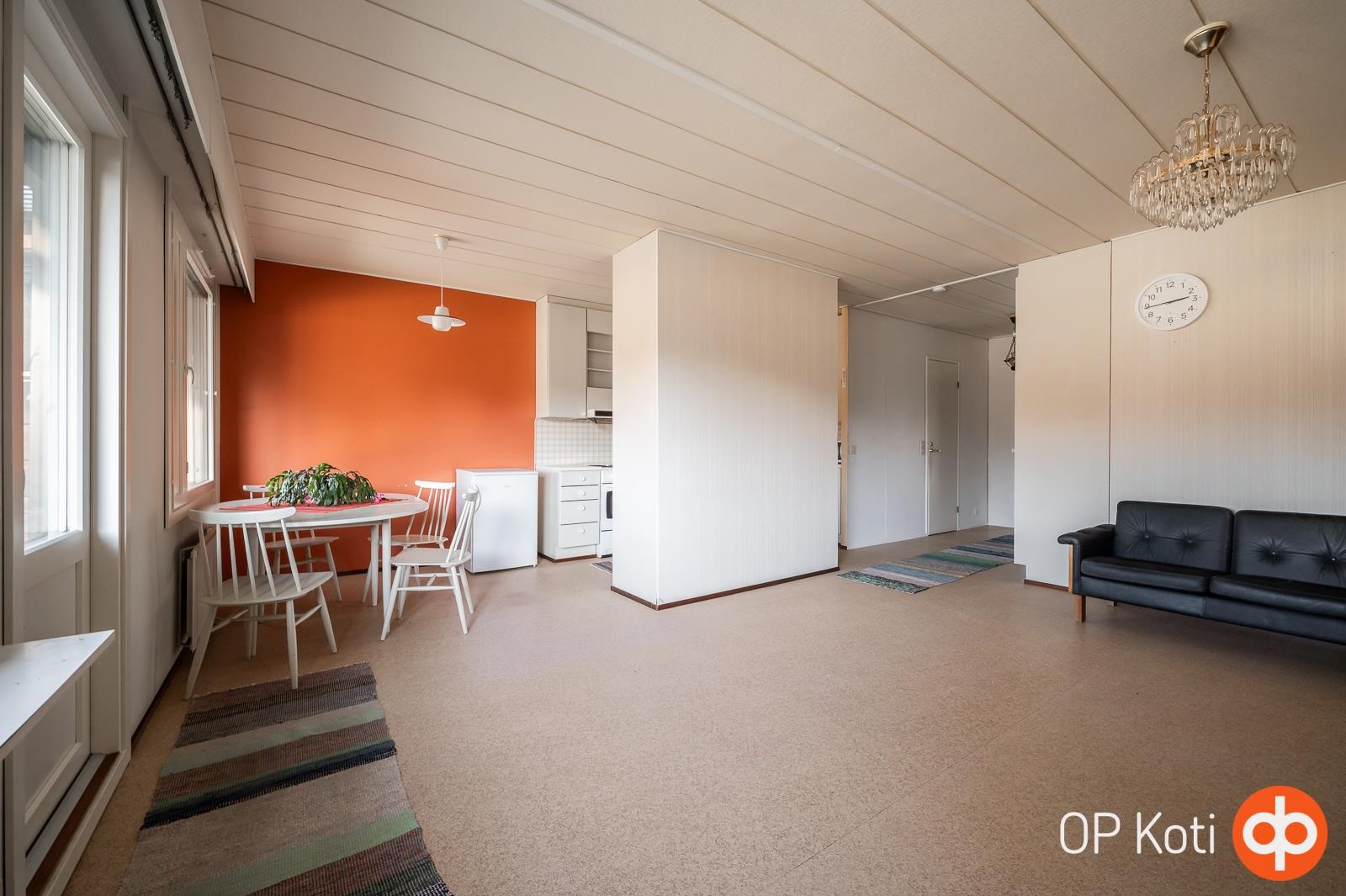 Myynnissä toimivapohjainen ja viihtyisä saunallinen kaksio rauhallisella asuinalueella Hämeenkoskella. Asunnossa on makuuhuone, kylpyhuone ja oma sauna sekä keittiö, ruokatila ja valoisa olohuone, josta on käynti takapihalle. Pohjaratkaisu on käytännöllinen ja tilat on helppo sisustaa omien tarpeiden mukaan.