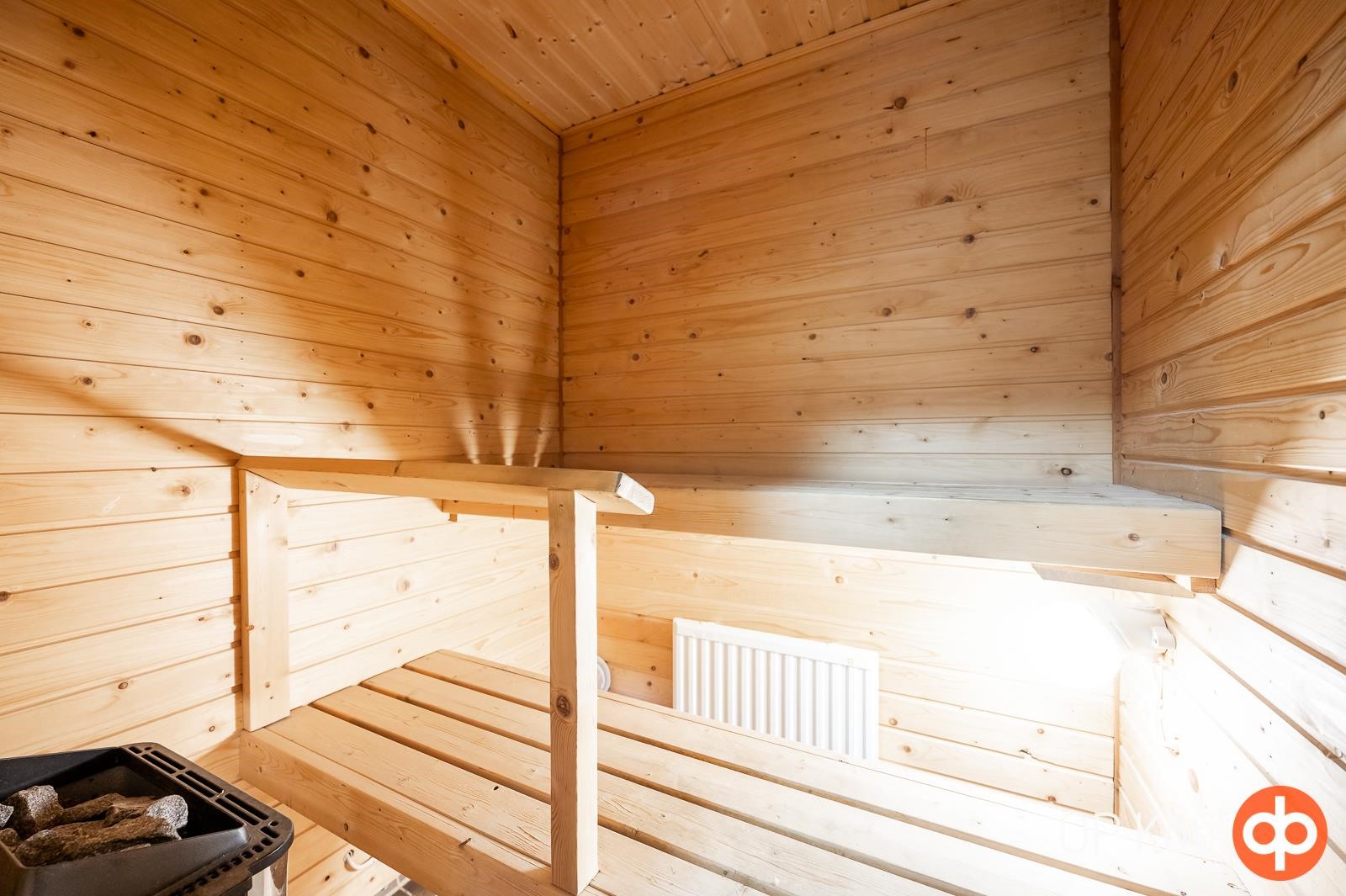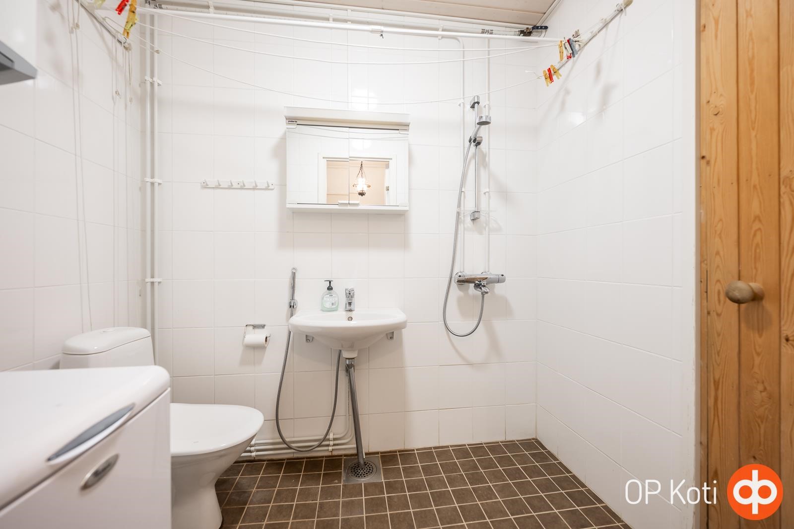 - Sauna, sähkökiuas, kylpyhuone, suihku, peilikaappi, pesukoneliitäntä, lattialämmitys, kiinteät valaisimet. Kylpyhuone remontoitu 2013