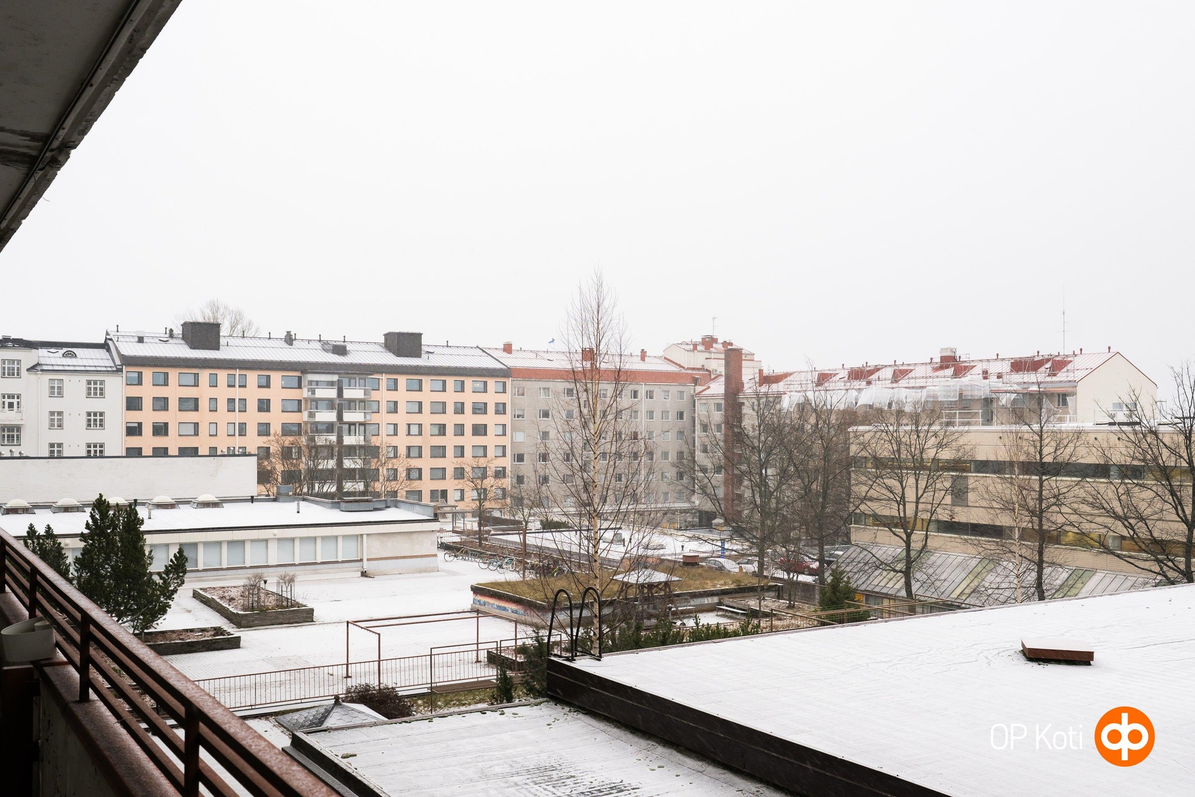 - Olohuoneesta, molemmista makuuhuoneista ja parvekkeelta näkymät kaakon suuntaan sisäpihalle päin. Keittiöstä näkymät lounaan suuntaan Cygnaeuksenkadulle päin.