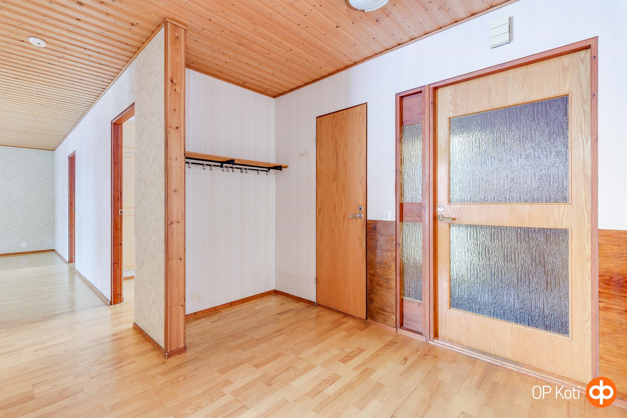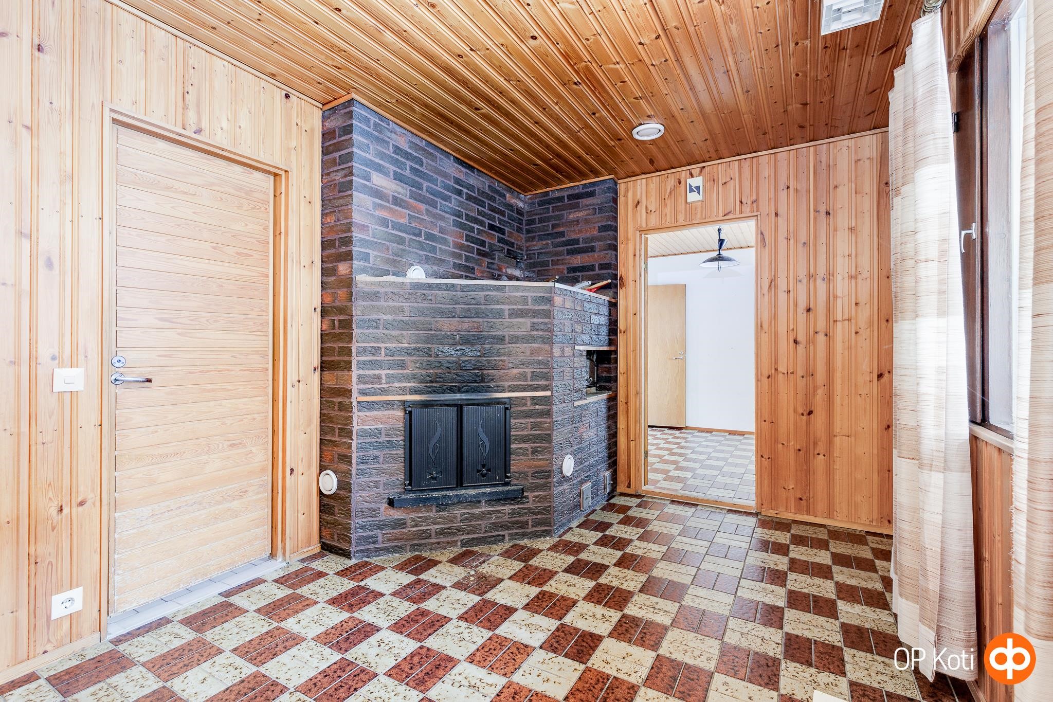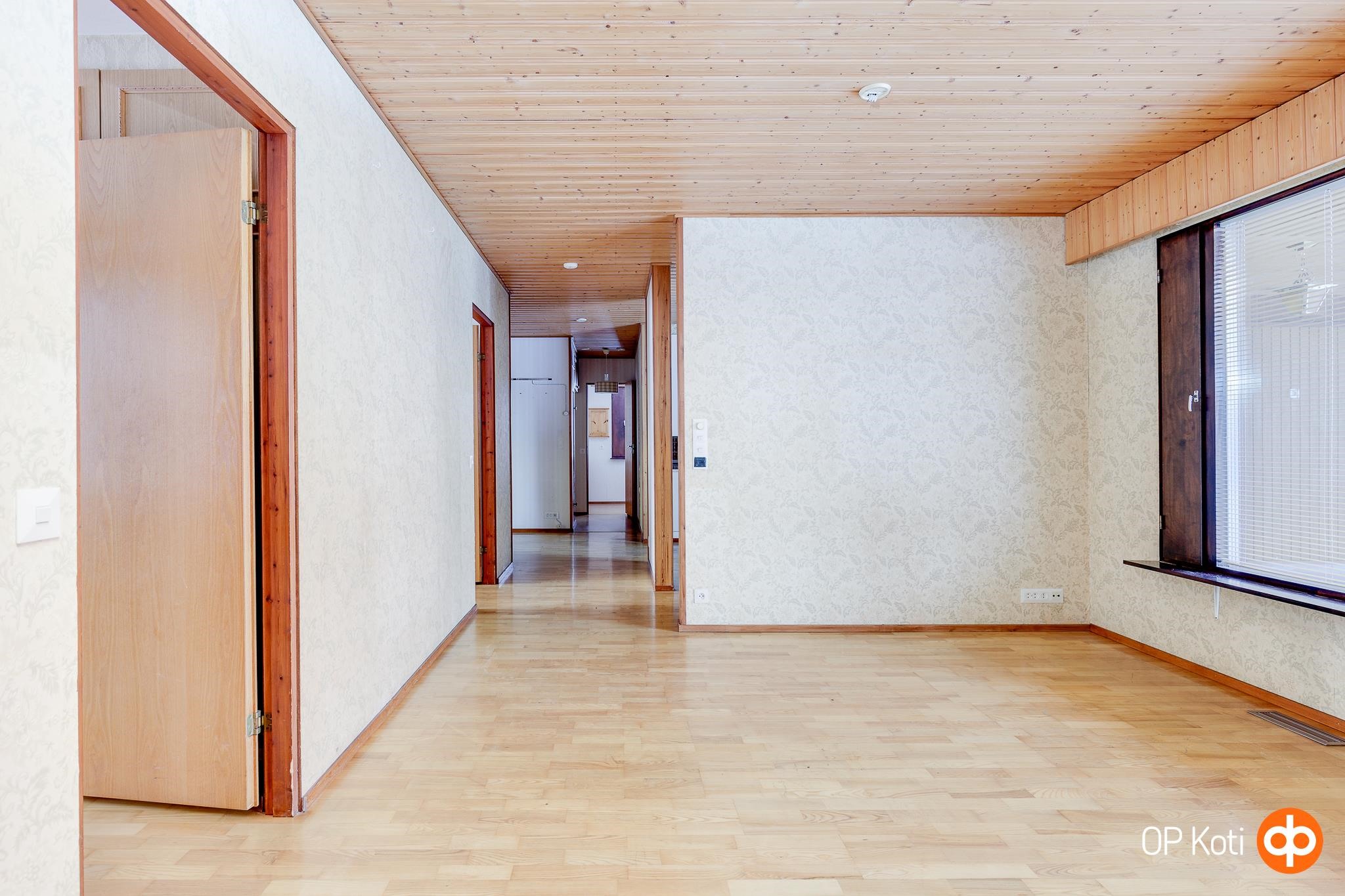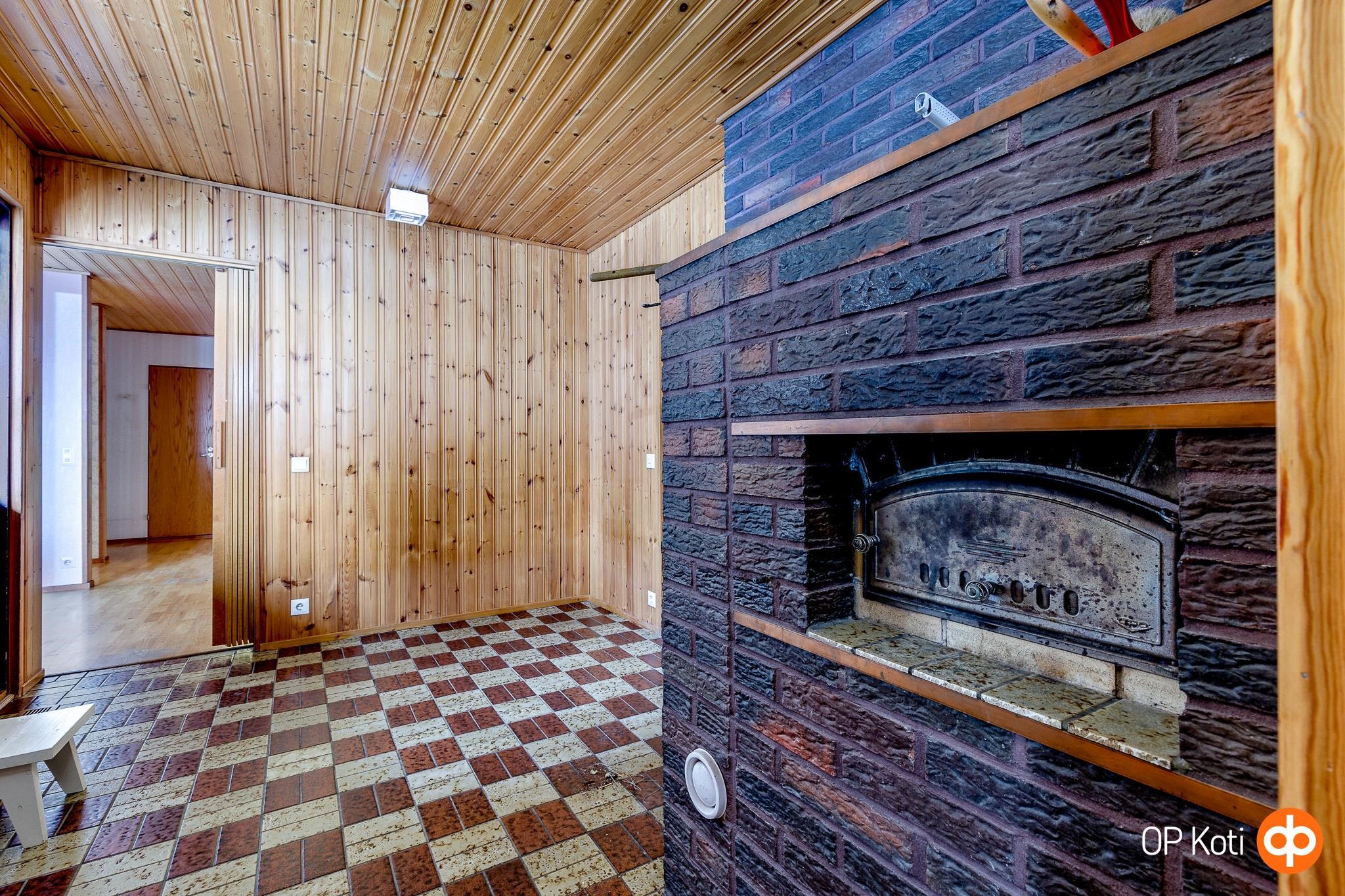 Keittiö: parketti, maali / tapetti. Olohuone: parketti, tapetti. Makuuhuone 1: parketti, tapetti. Makuuhuone 2: parketti, tapetti. Makuuhuone 3: parketti, tapetti. Kodinhoitohuone: muovimatto, maali. Sauna: laatta, paneeli / betoni. Kylpyhuone: laatta, laatta. Eteinen: parketti, tapetti. Wc: laatta, laatta. Takkahuone: laatta, paneeli.