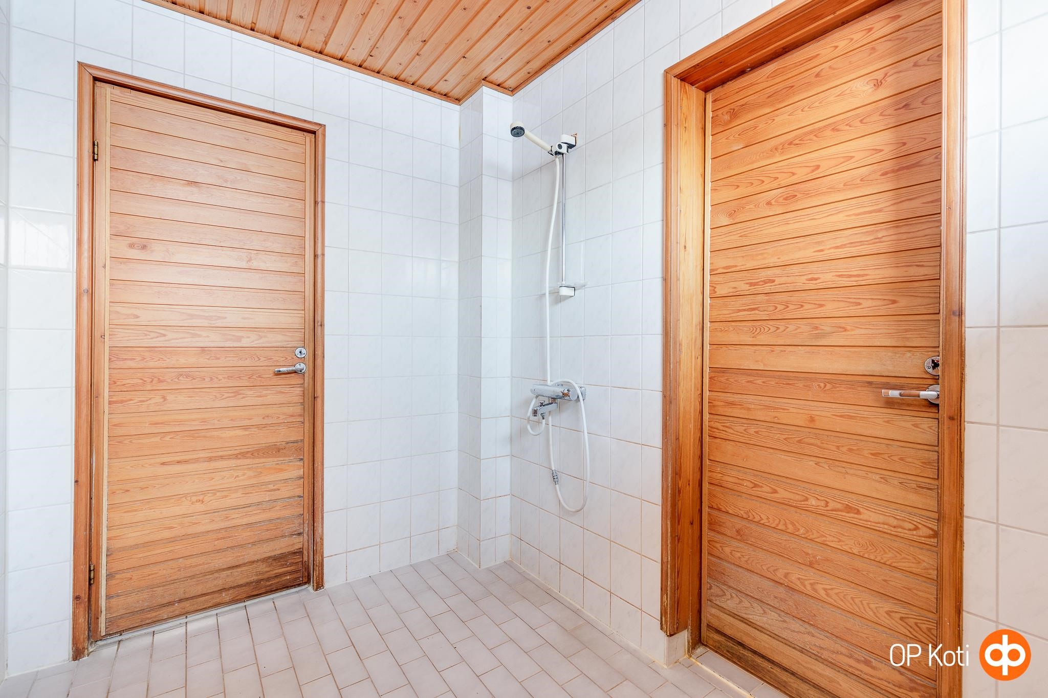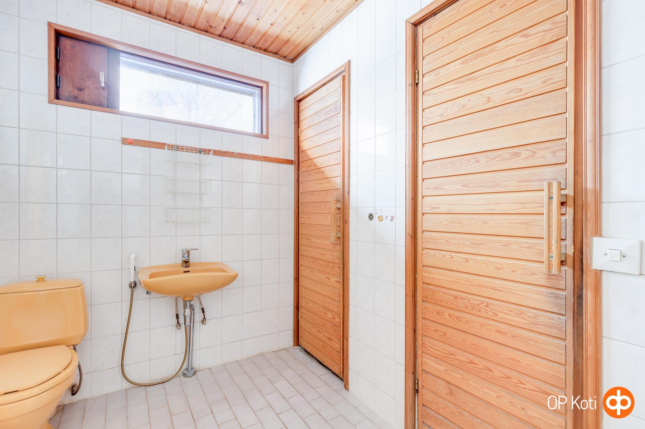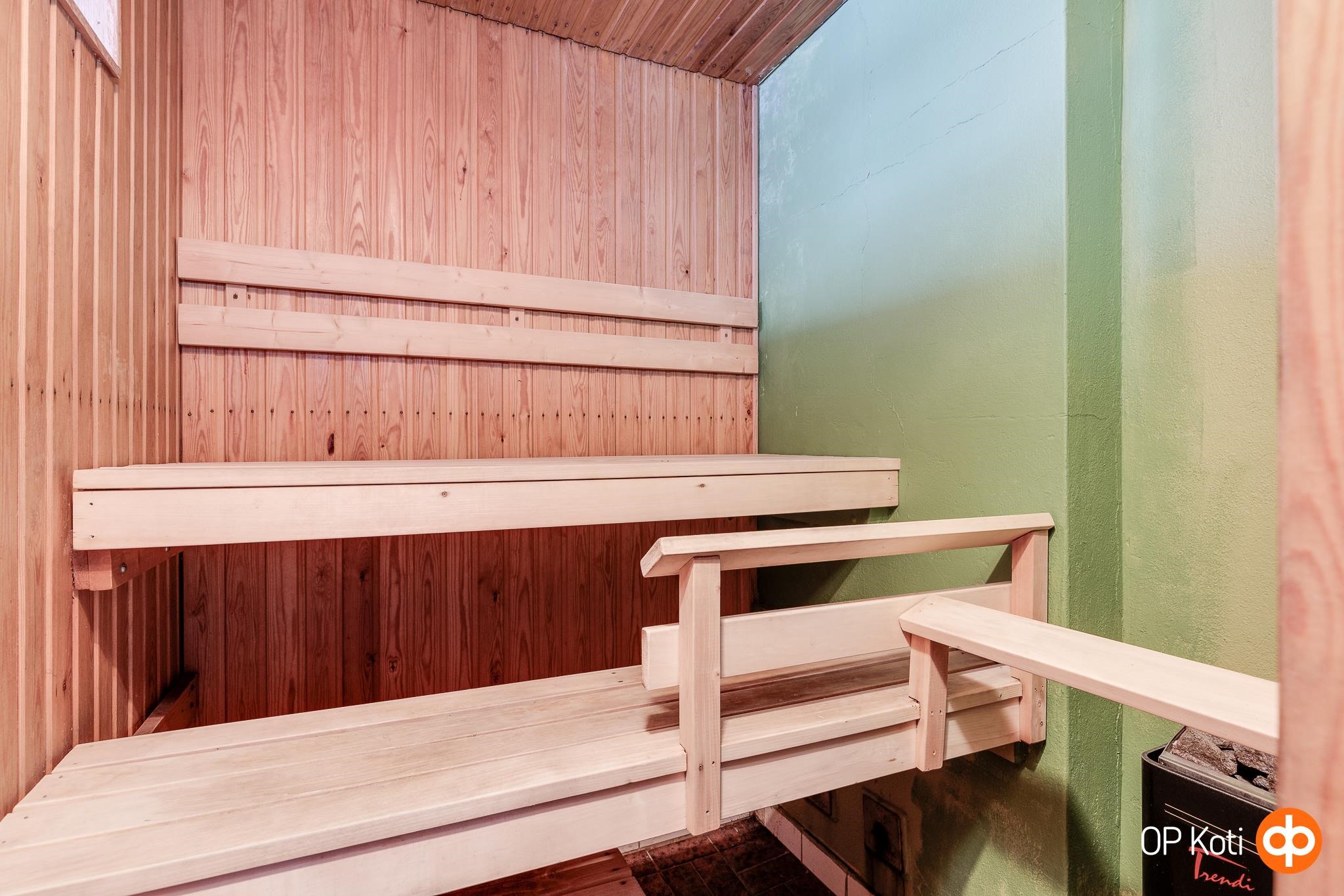 - Sauna, kylpyhuone, erillinen wc, suihku, peilikaappi, allaskaappi, kiinteät valaisimet.