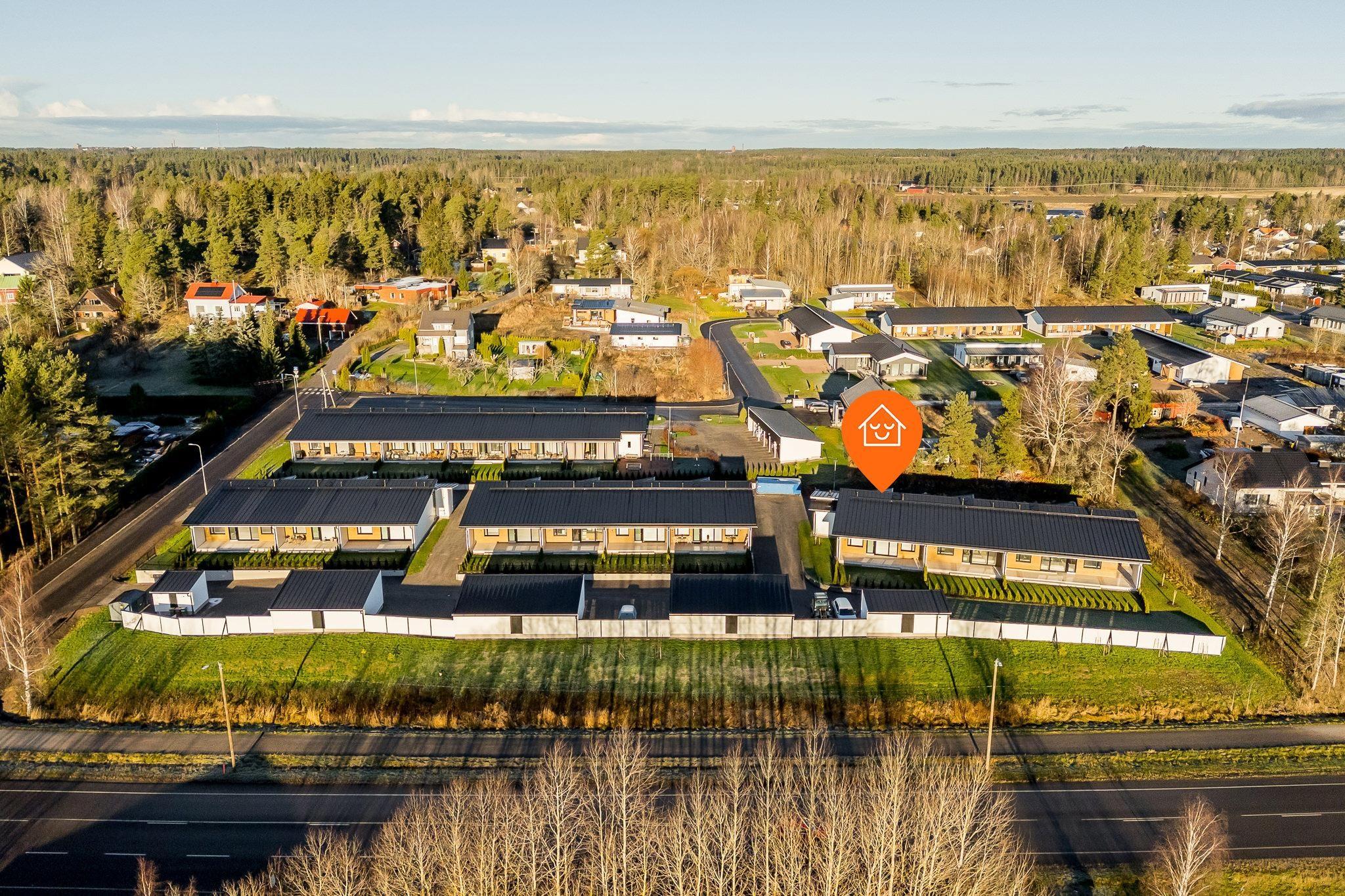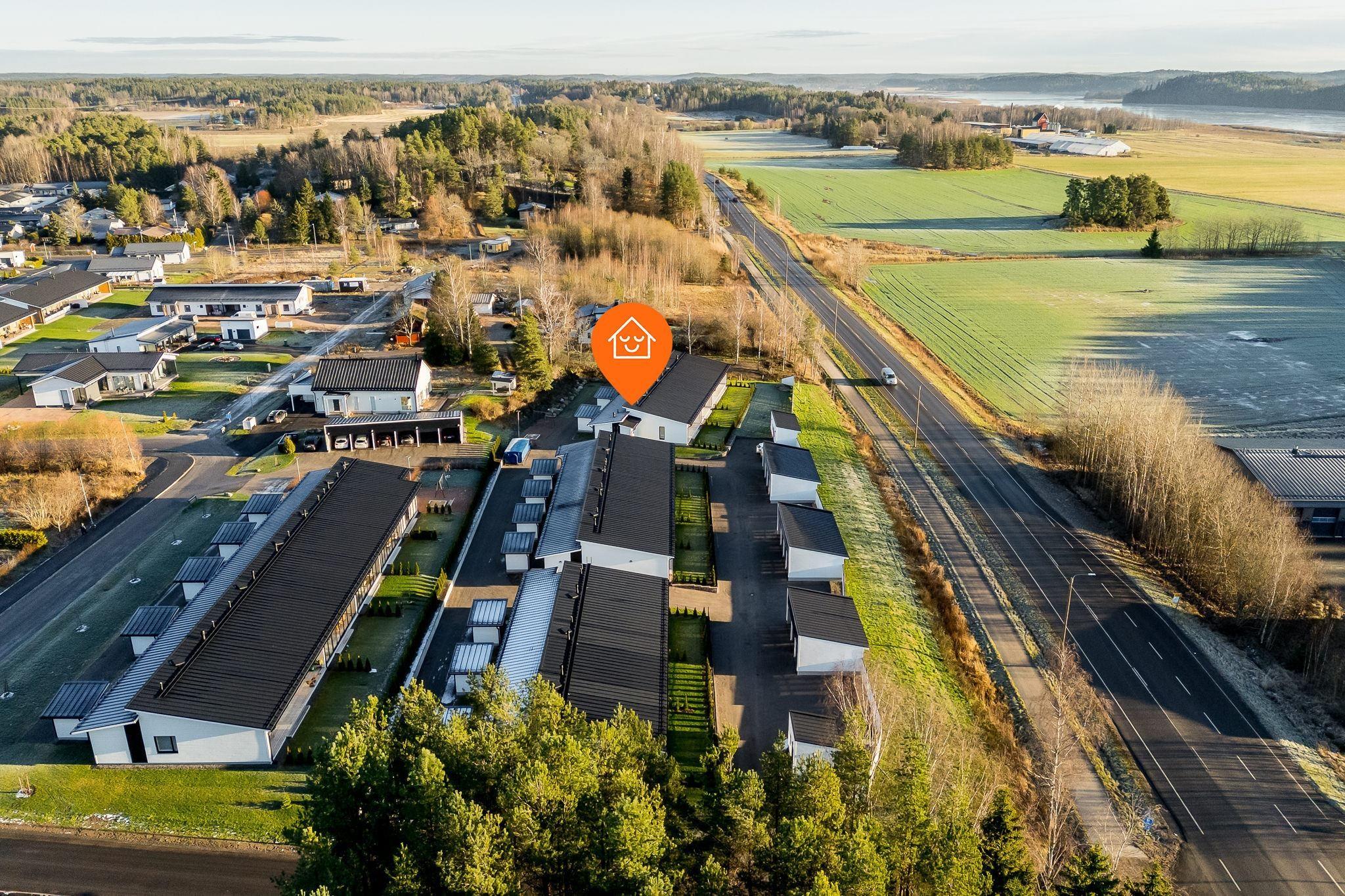 Asunto Oy Vairionkruunu on uusimpana valmistunut, oman alueensa valmiiksi saattanut taloyhtiö. Sijainti on liikenteellisesti vallan mainio: omalla autolla yhteydet ovat sujuvat liikuitpa sitten Kaarinan, Turun tai Salon/Helsingin suuntaan. Kaarinan keskustan palveluihin matkaa on kolmisen kilometriä, Turkuun reilut 10 kilometriä ja E18-moottoritien liittymään Kaarinan Krossiin ajaa alle viidessä minuutissa. Toisaalta asuinalue tarjoaa miellyttävän ulkoiluympäristön pientaloalueena ja Tuorlan maalaismaiseman naapurissa. Voivalan uimarannalle on vain reilu kilometri. Tämän kodin omalta pihalta on näkymä aina Kuusiston salmelle ja Piikkiön lahdelle saakka.
