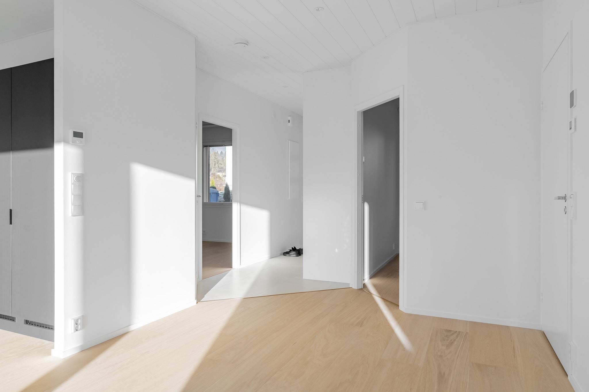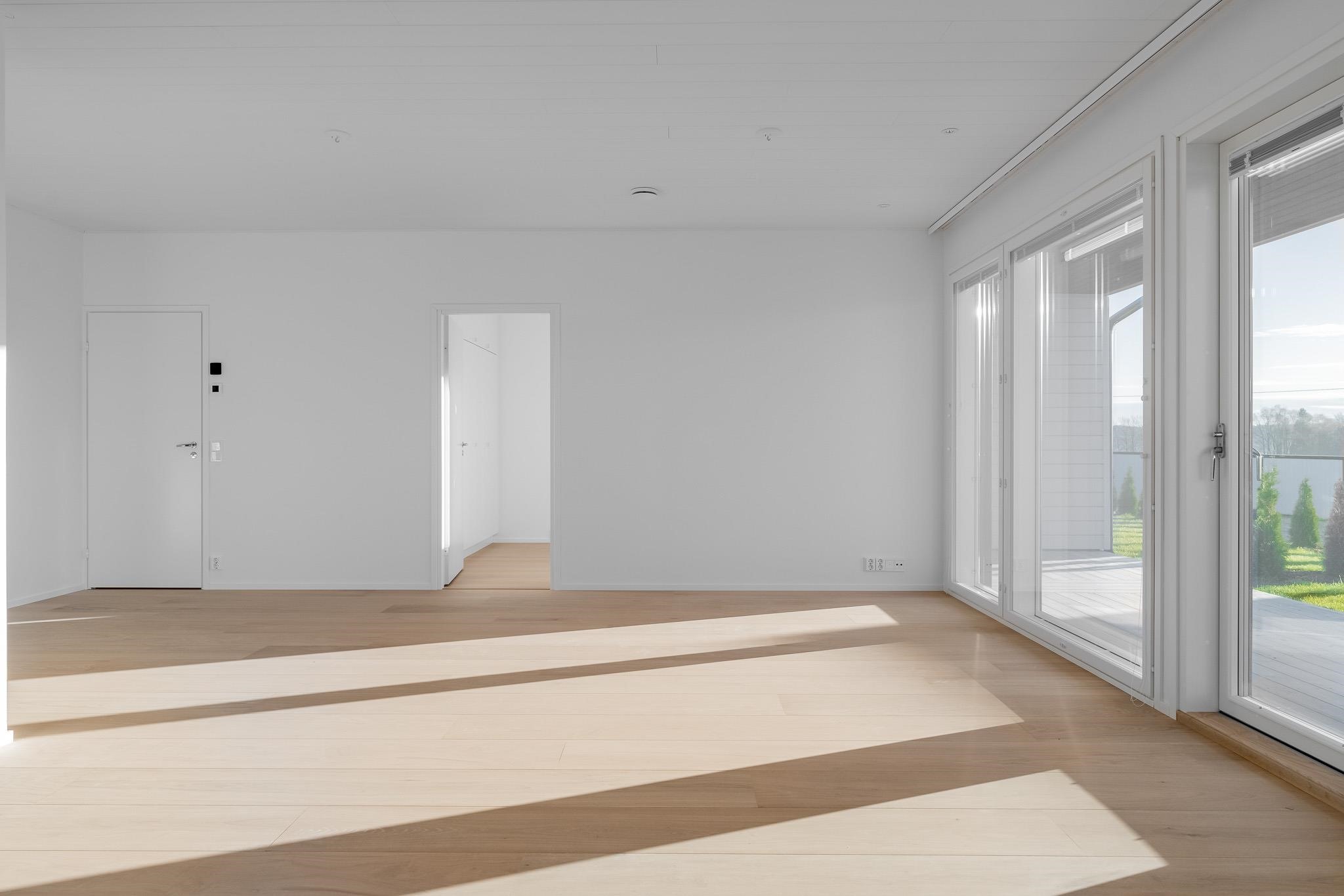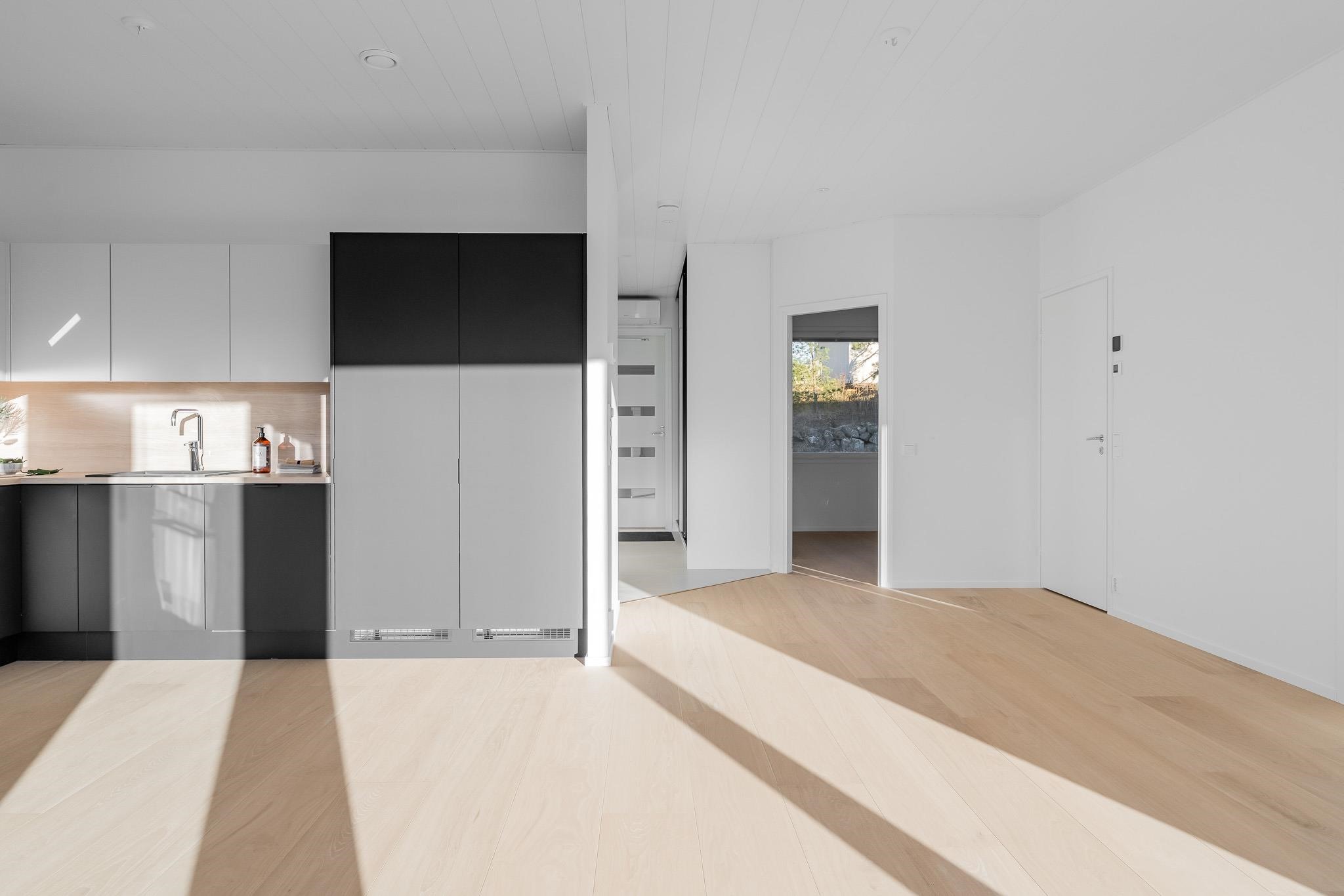 Kodista löydät valoisan ja avaran olohuoneen, joka yhdistyy tyylikkääseen avokeittiöön. Luonnonvalo on erityisen kauniisti läsnä, koska ikkunat avautuvat kahteen suuntaan. Makuuhuoneet sijoittuvat omaan rauhaansa, kukin omalle puolelleen asuntoa. Erillinen WC ja käytännölliset säilytysratkaisut auttavat arjen sujumisessa. Etelän puoleinen terassi on mahdollista lasittaa.