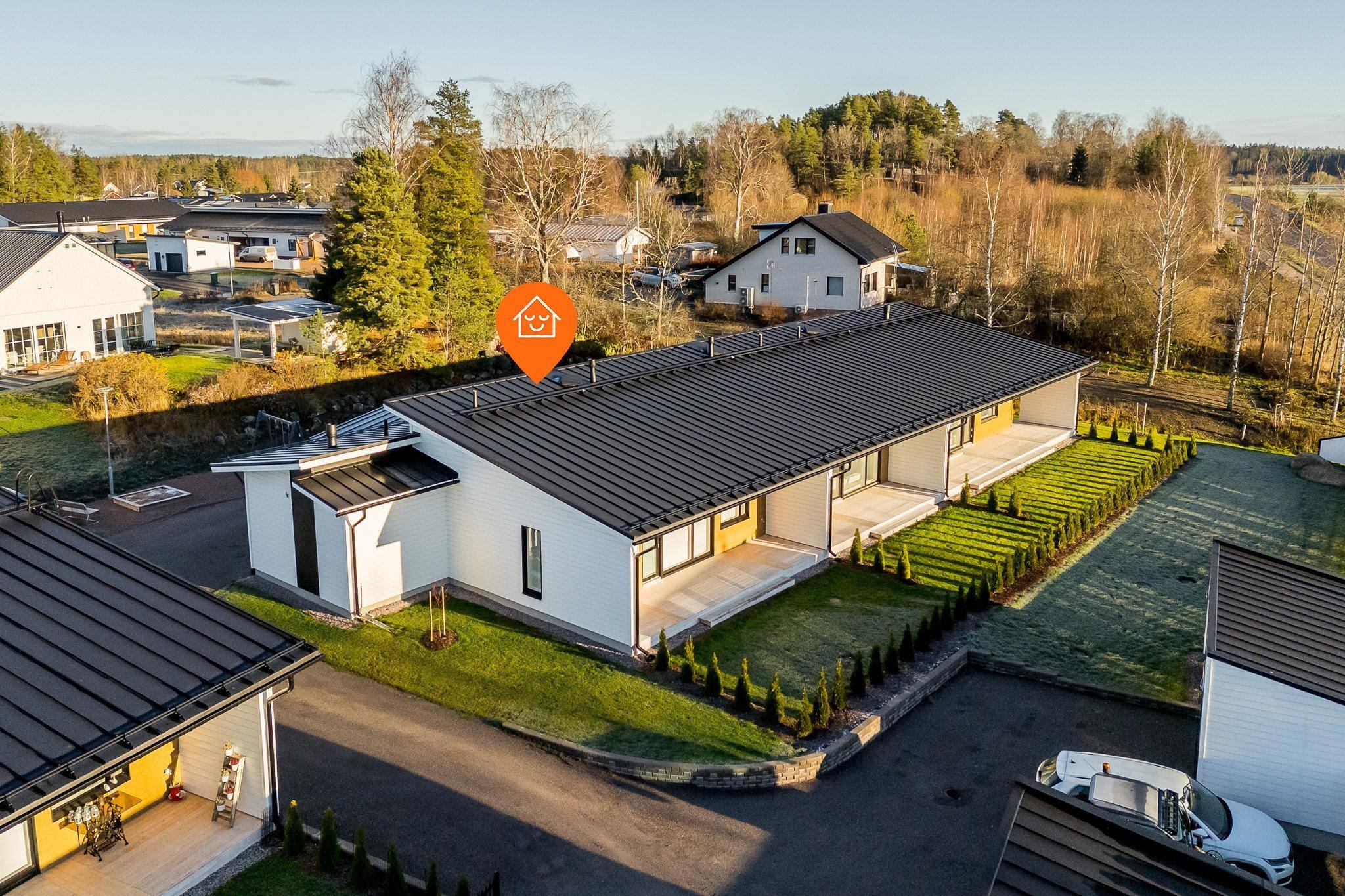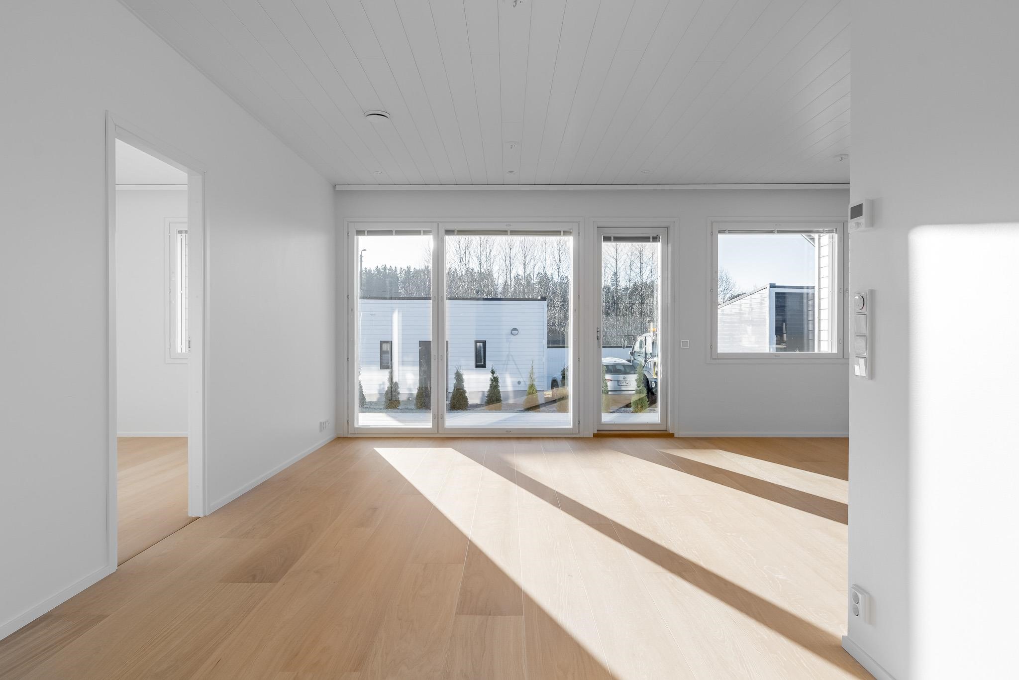 Uusi yksitasoinen perhekoon päätyasunto maalämpöyhtiössä
