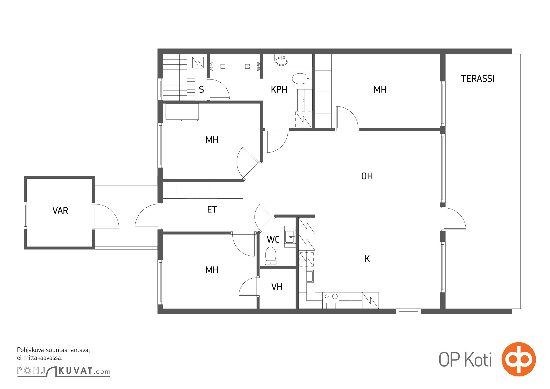 - 4h, avok, kph, WC, s, vh, terassi ja varasto
